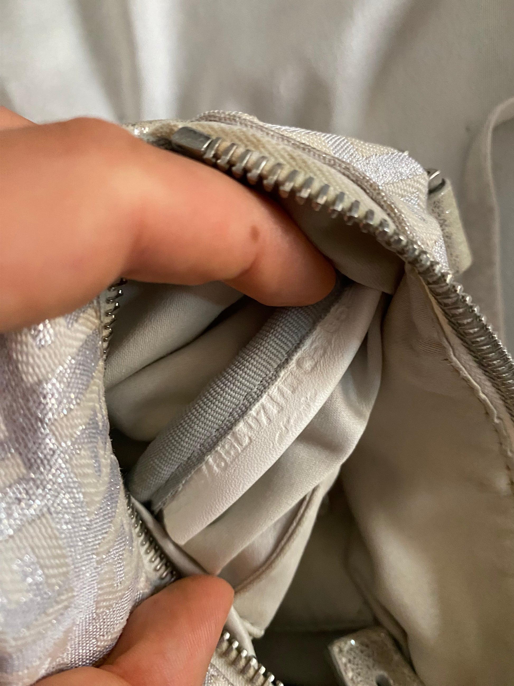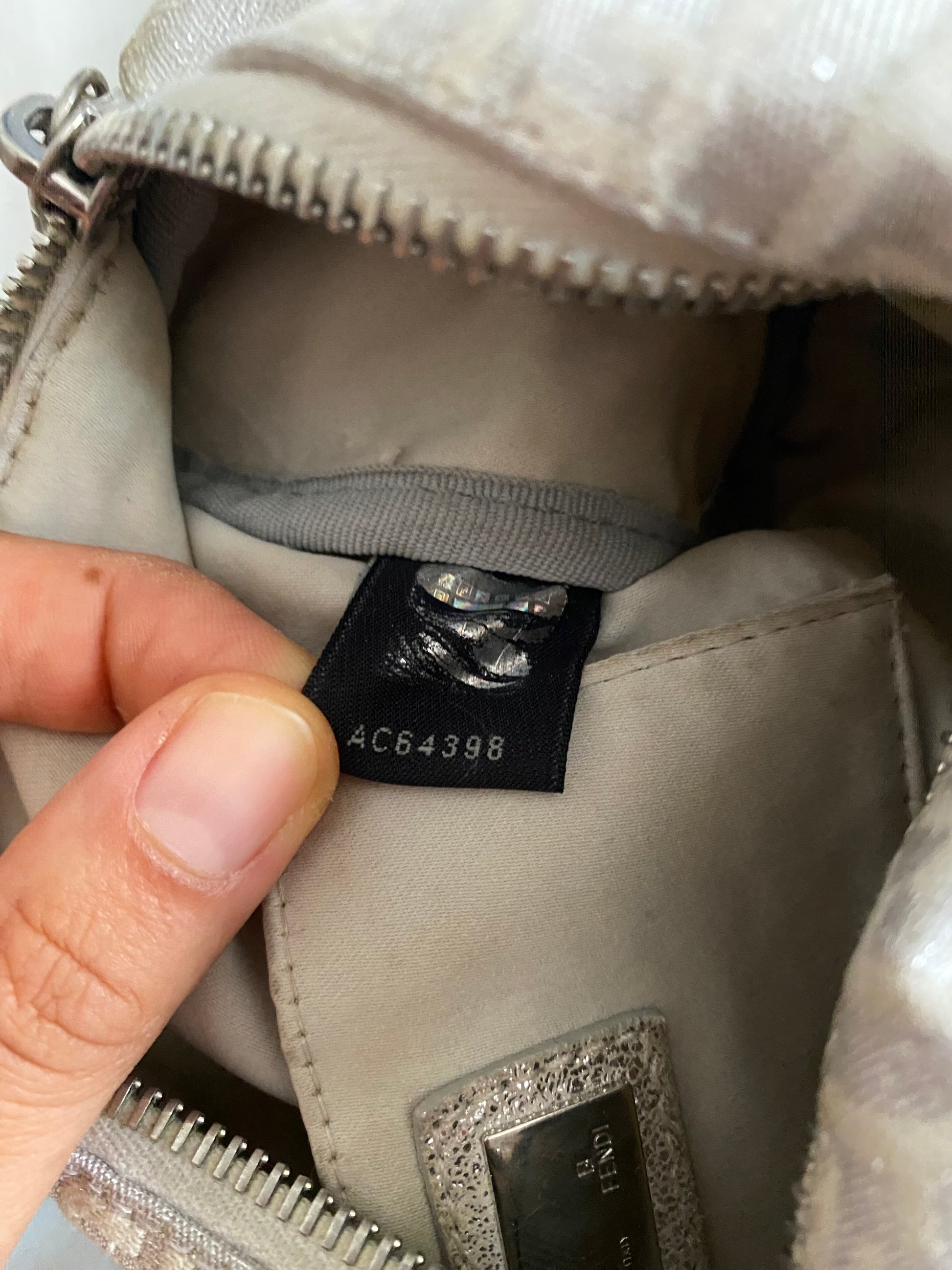 Mini bauletto Fendi monogram zucchino argento. Brilla di luce propria! Minimi segni sulle parti in pelle, in buonissime condizioni generali. Viene inviato con scatola fendi.