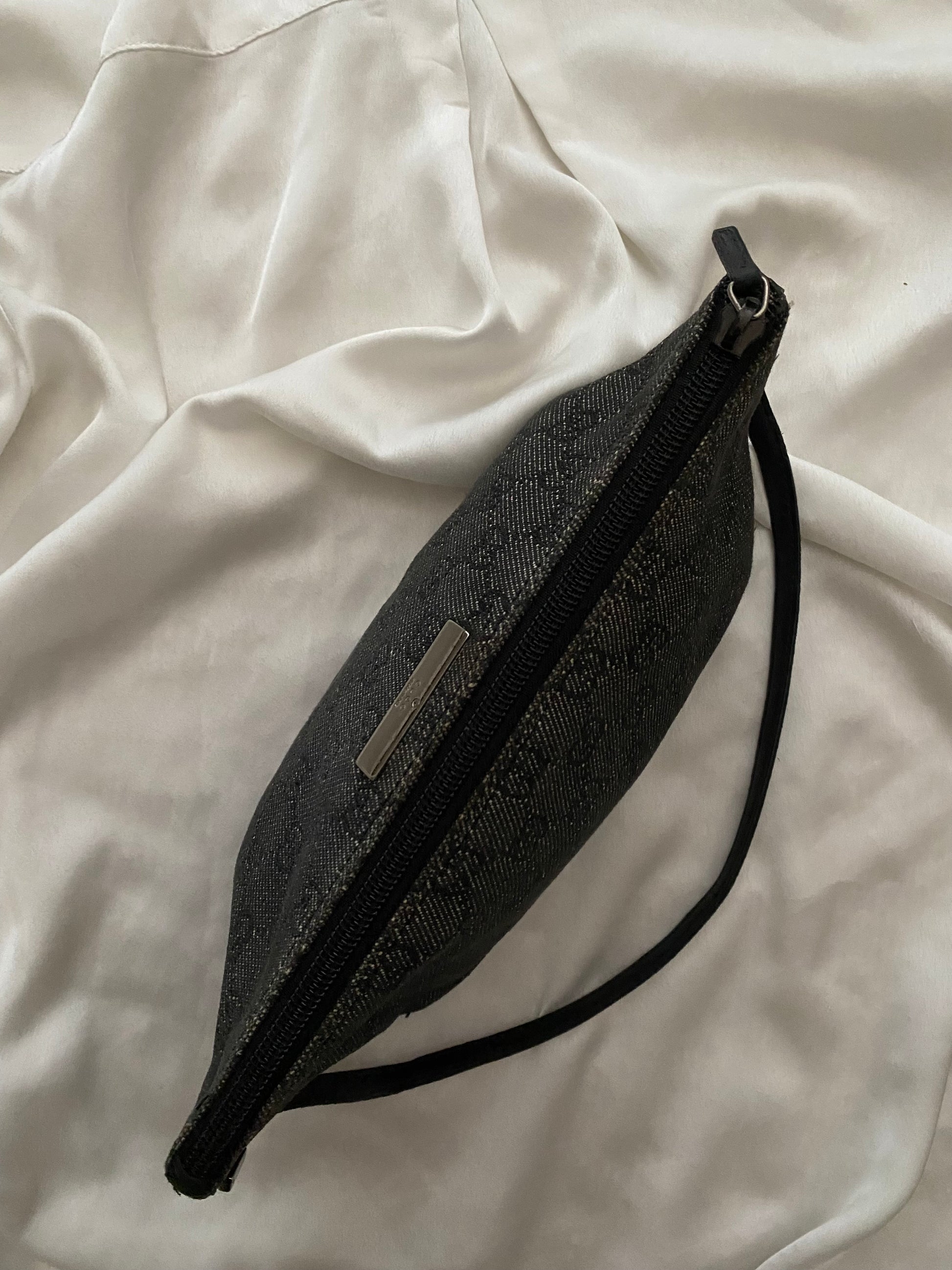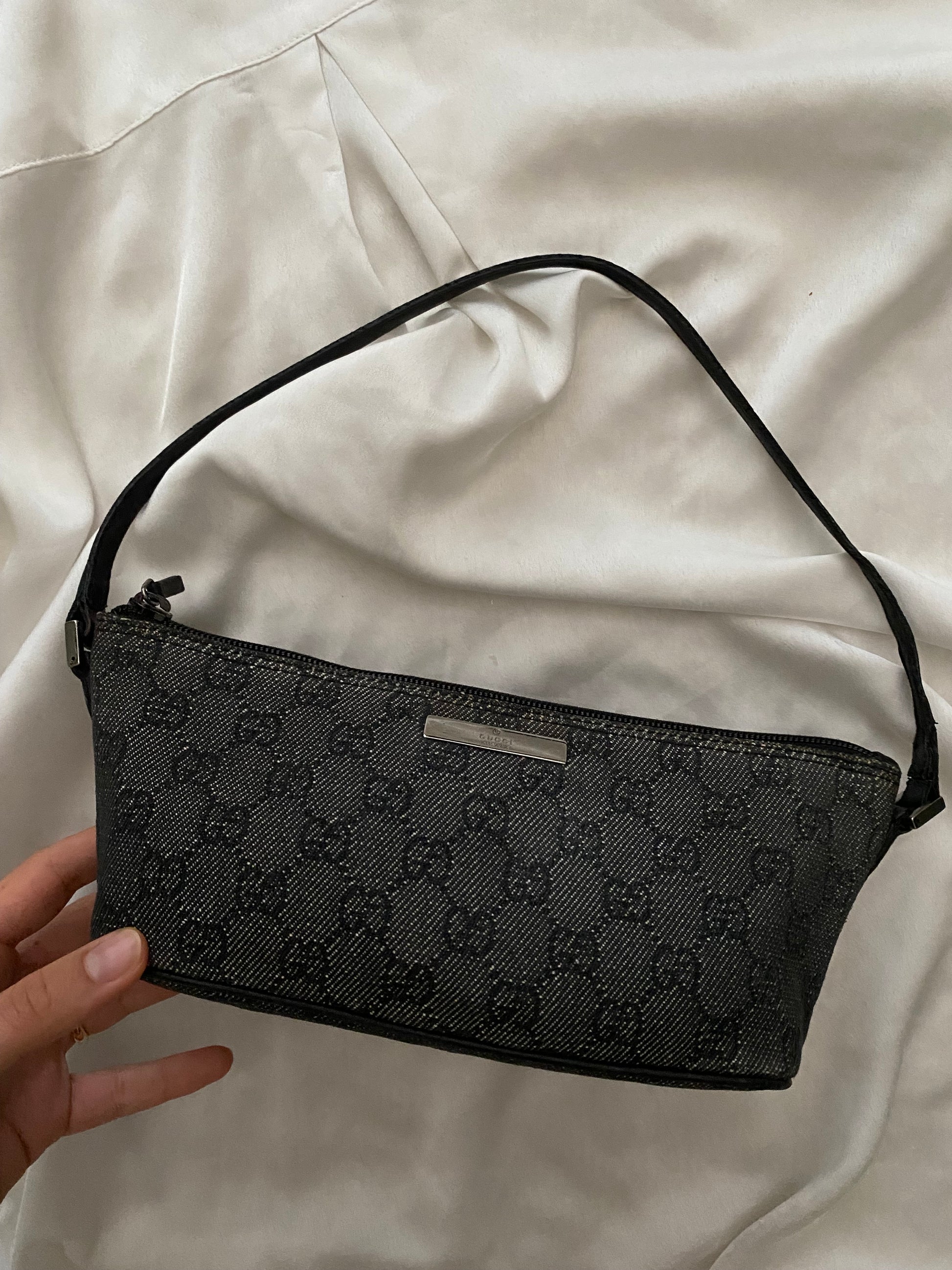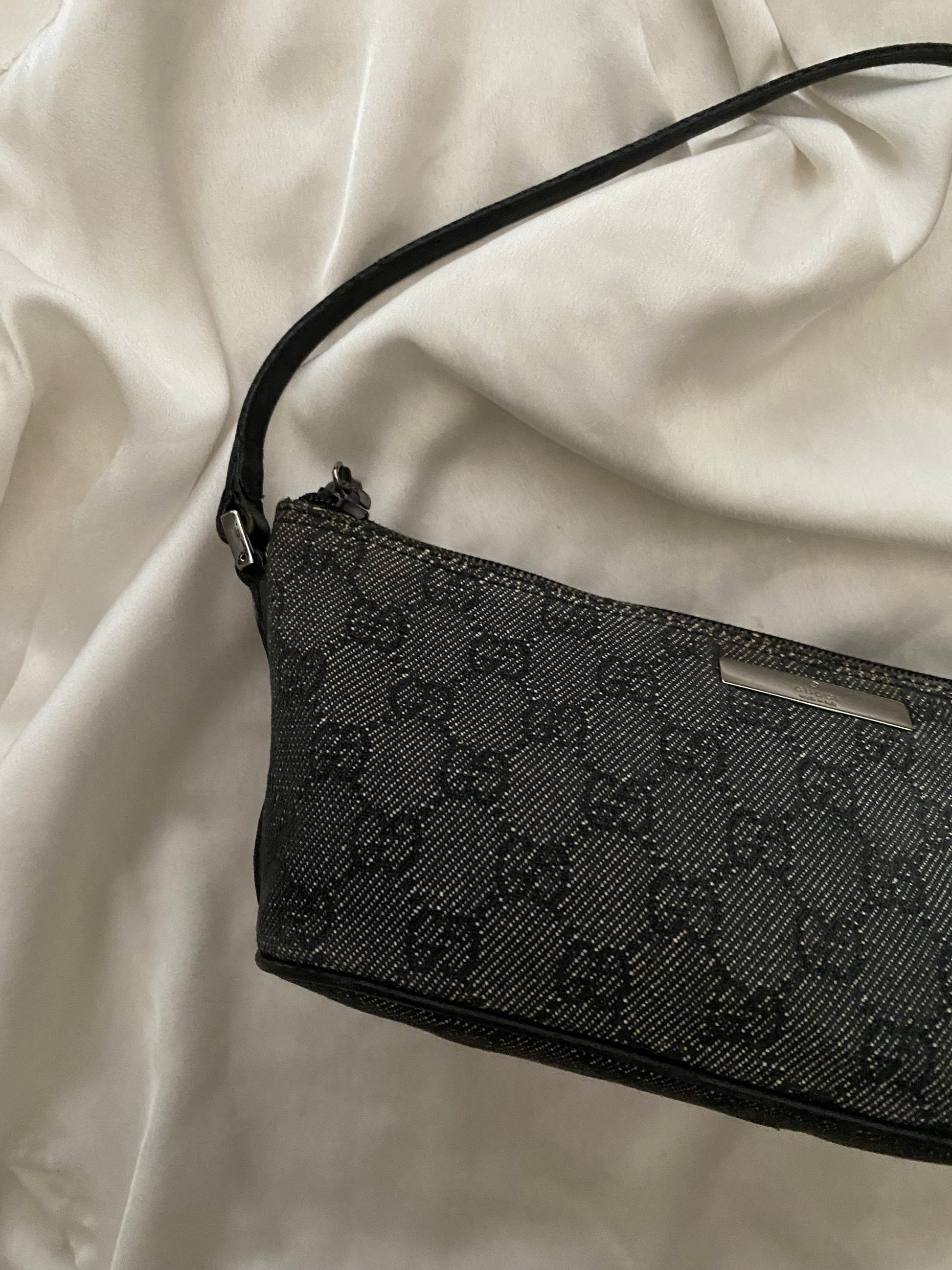 Gucci boat Black monogram clutch bag in denim. Some marks on the handle and on the logo: good general condition. Measurements: 26x10x7cm