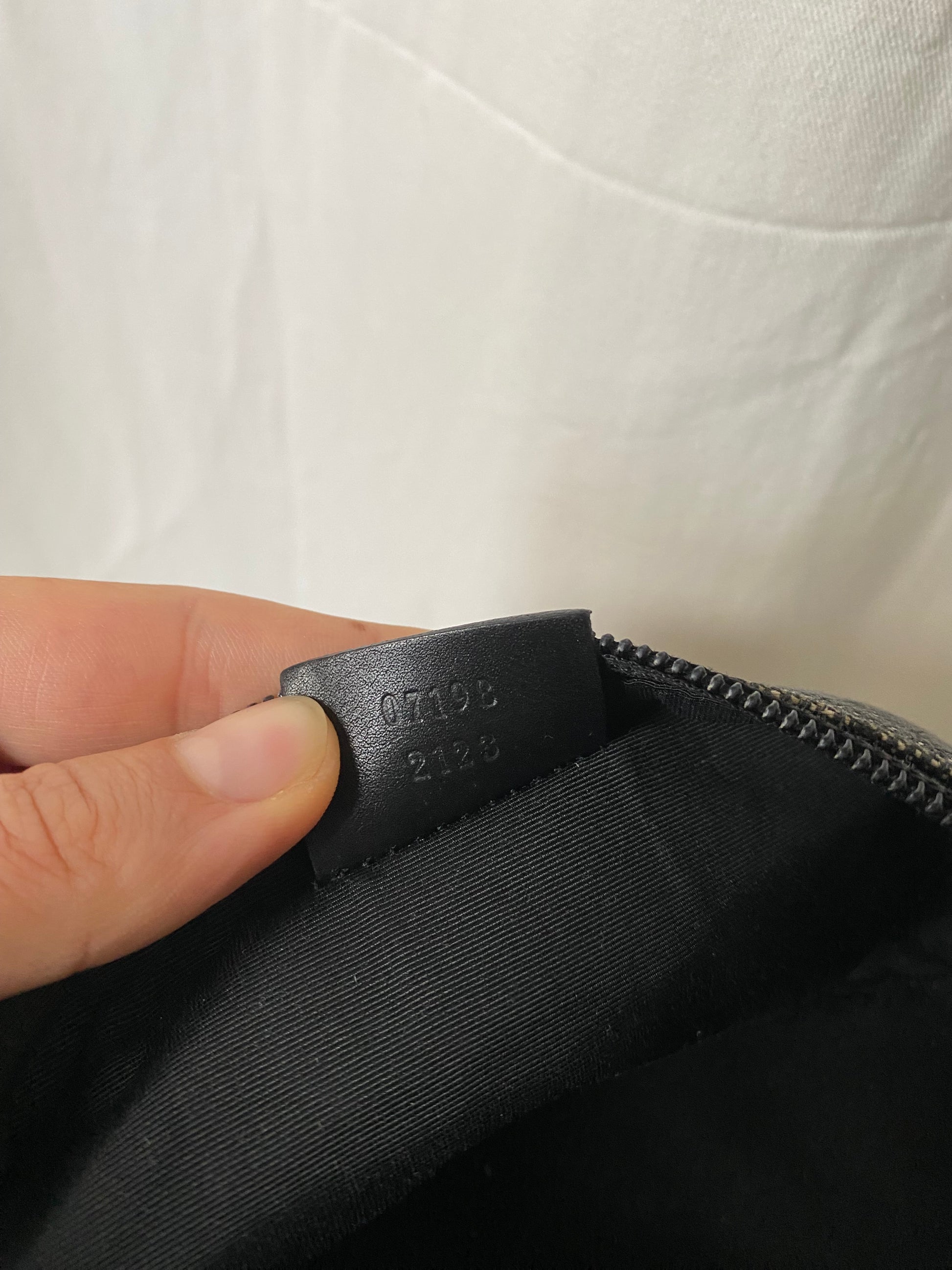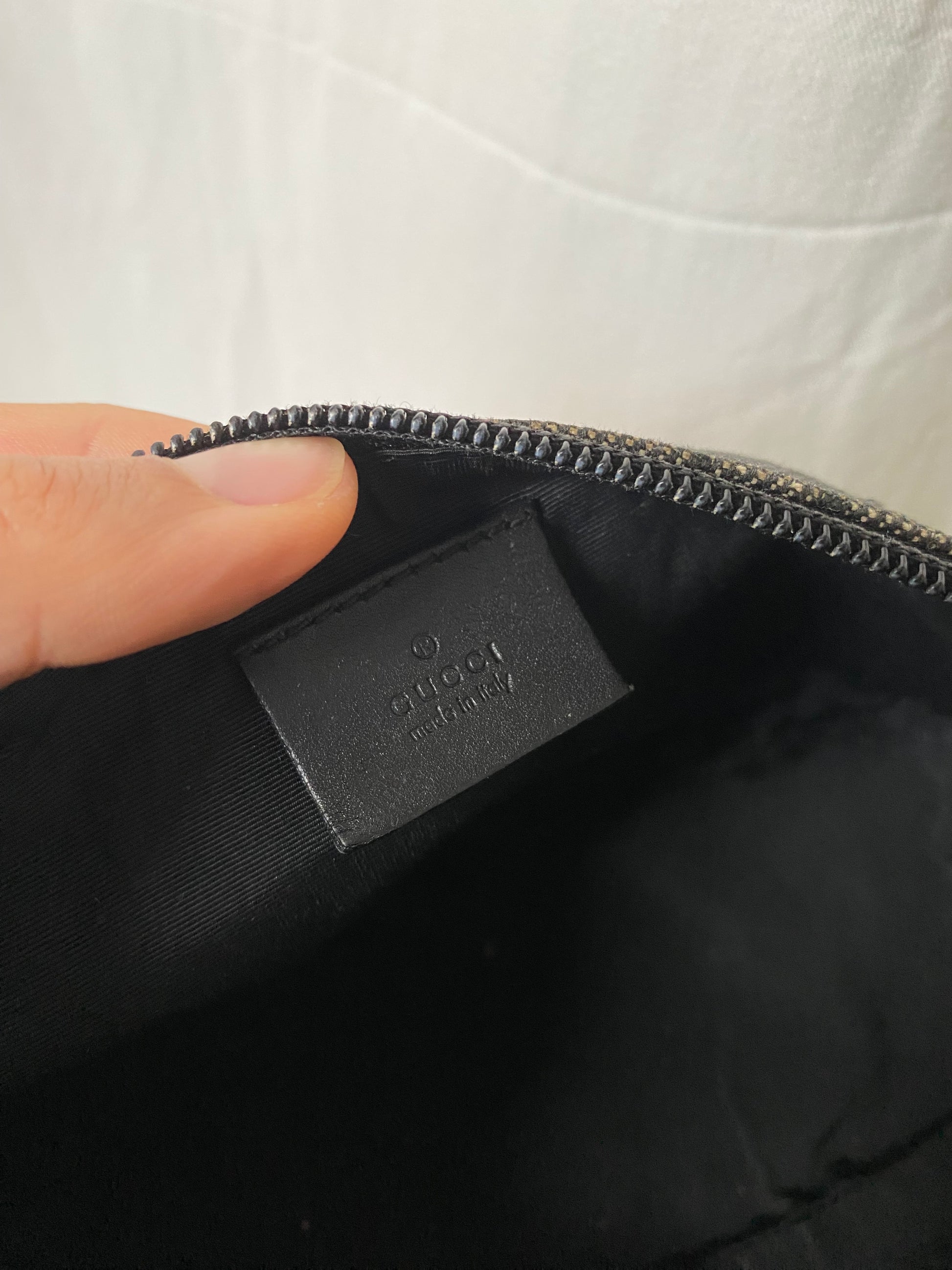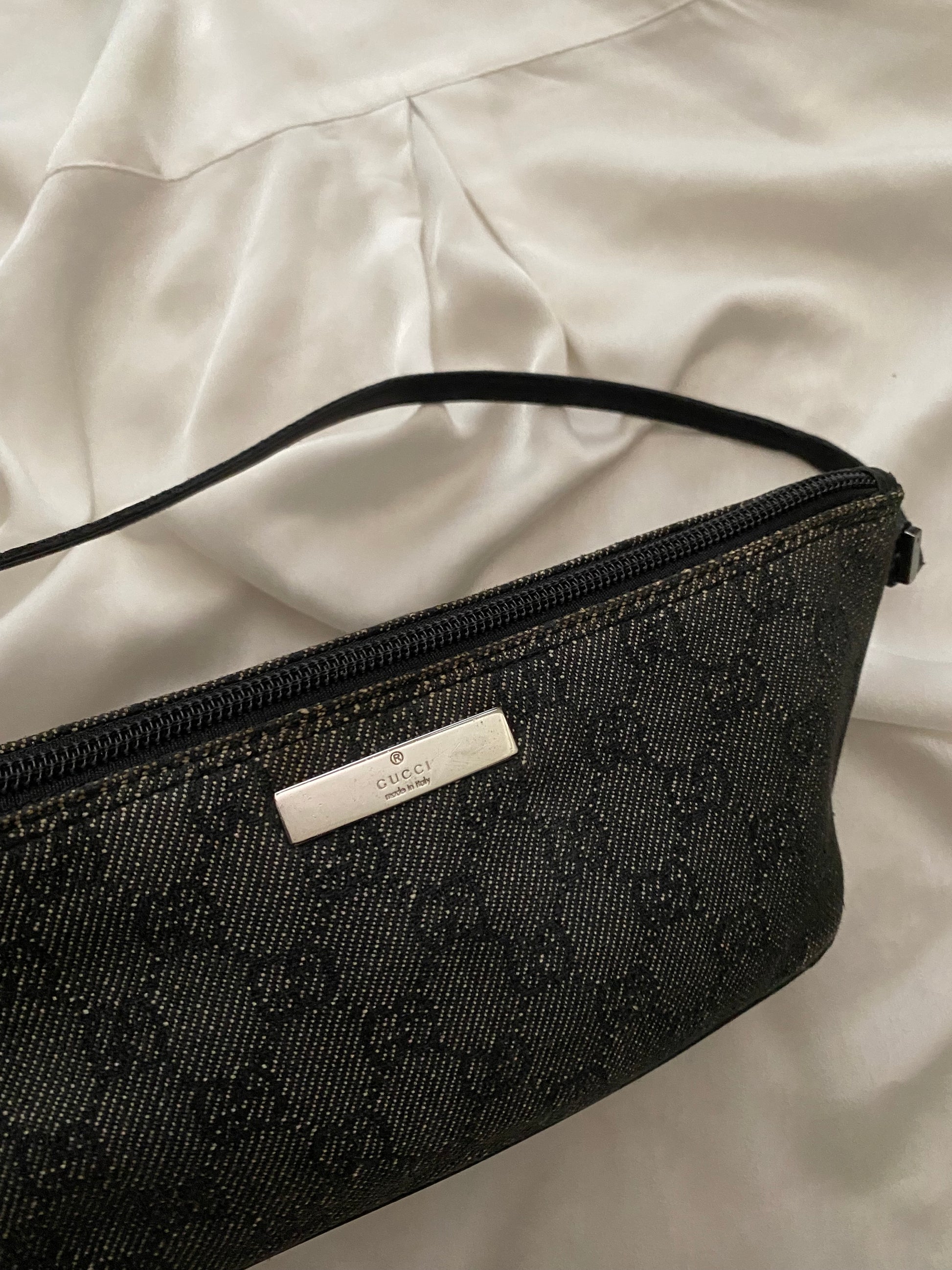 Gucci boat Black monogram clutch bag in denim. Some marks on the handle and on the logo: good general condition. Measurements: 26x10x7cm