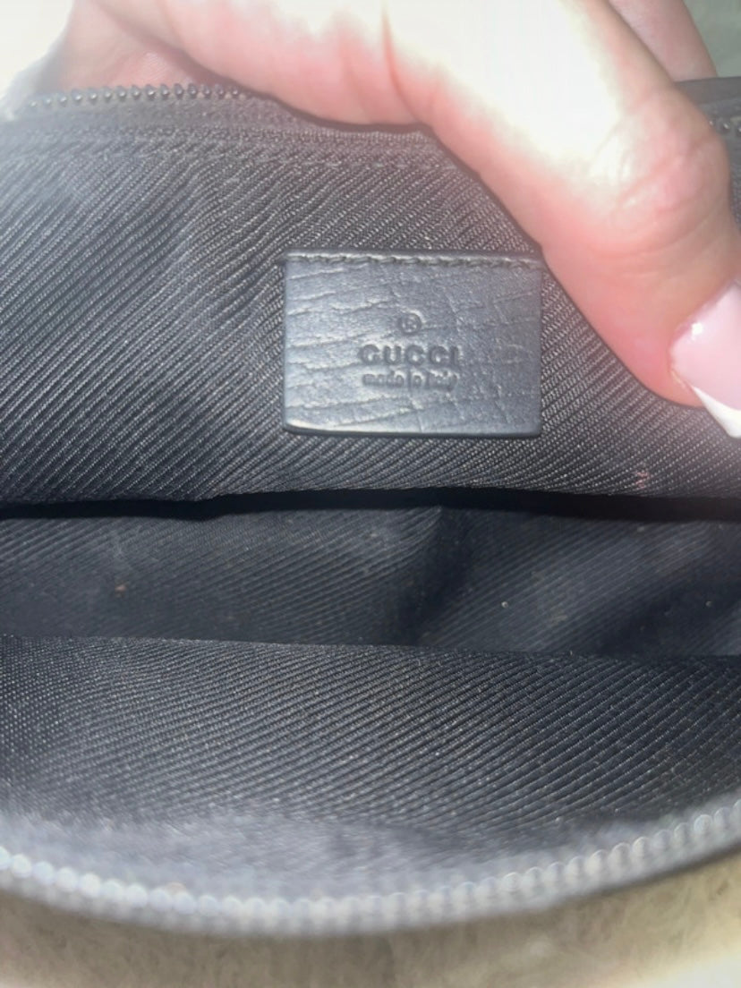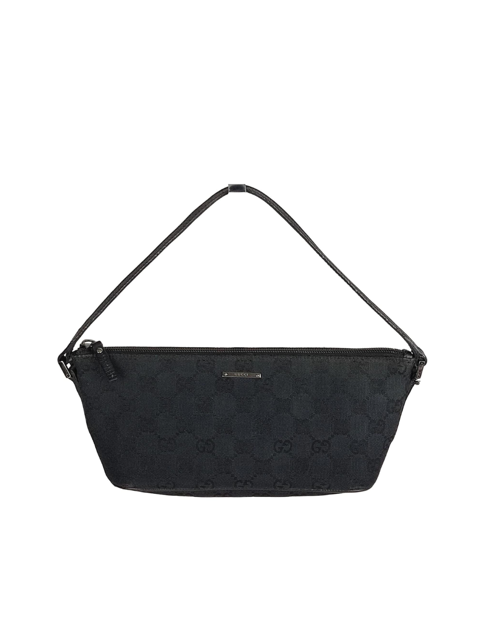 Iconica Gucci boat in monogram nero e hardware argento. micro filetti sul fondo vicino al bordo (foto) e qualche segno poco visibile, buone condizioni generali.