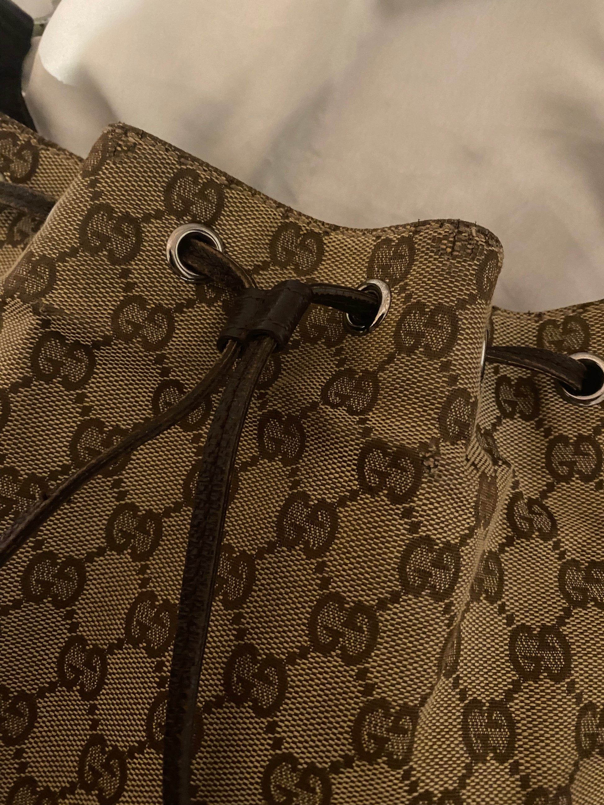 Some rubbing on the monogram (in the photo), not particularly visible once worn but present. I would like to point out a wrinkle due to the bellows closure.