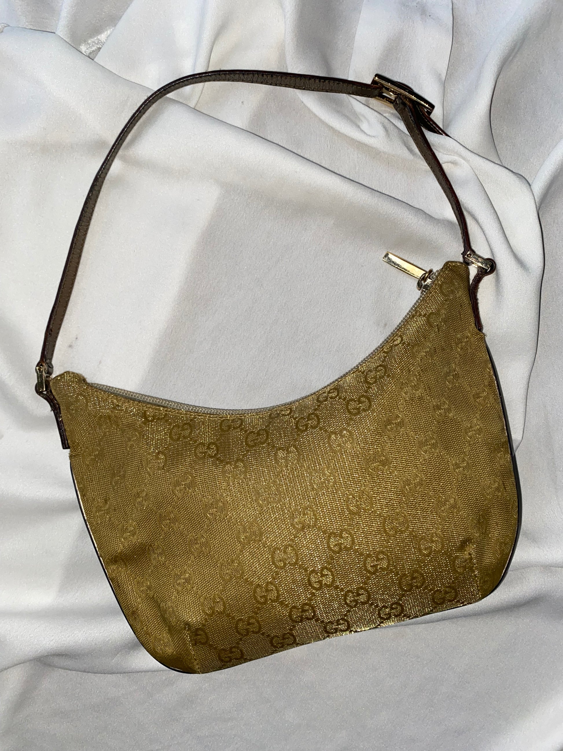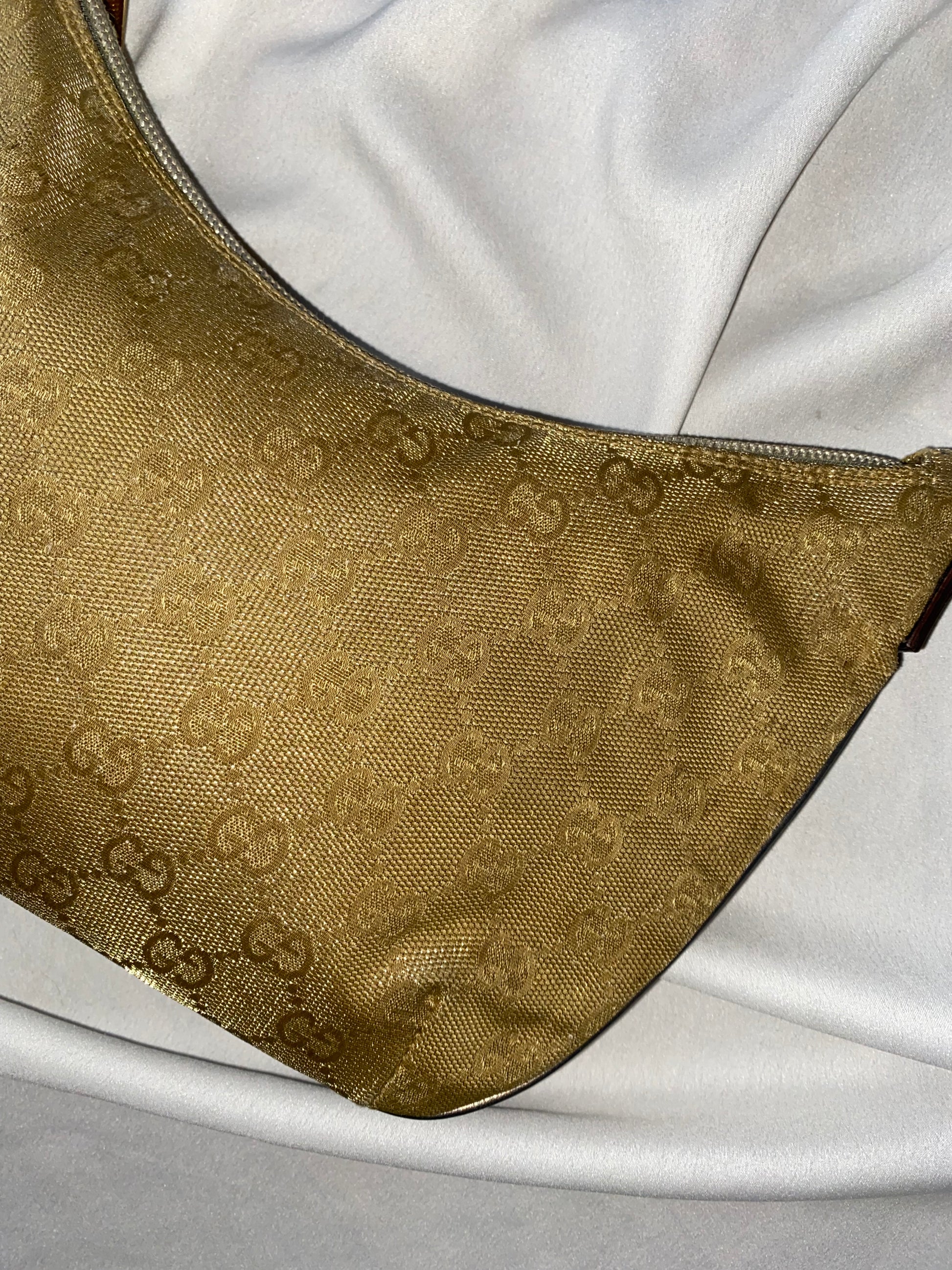 Rara Gucci Moon Hobo colore oro 🧜♀️✨ manico e profili in pelle, colore e forma a mezzaluna.