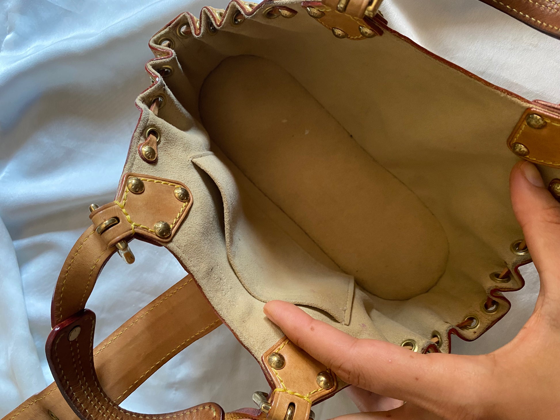 Meravigliosa borsetta Theda pm (misura piccola) di Louis Vuitton. Qualche lieve segno sull’hardware e piccolo segnetto in corrispondenza della parte in pelle della chiusura. Angoli perfetti e vacchetta color miele chiaro buonissime condizioni generali.