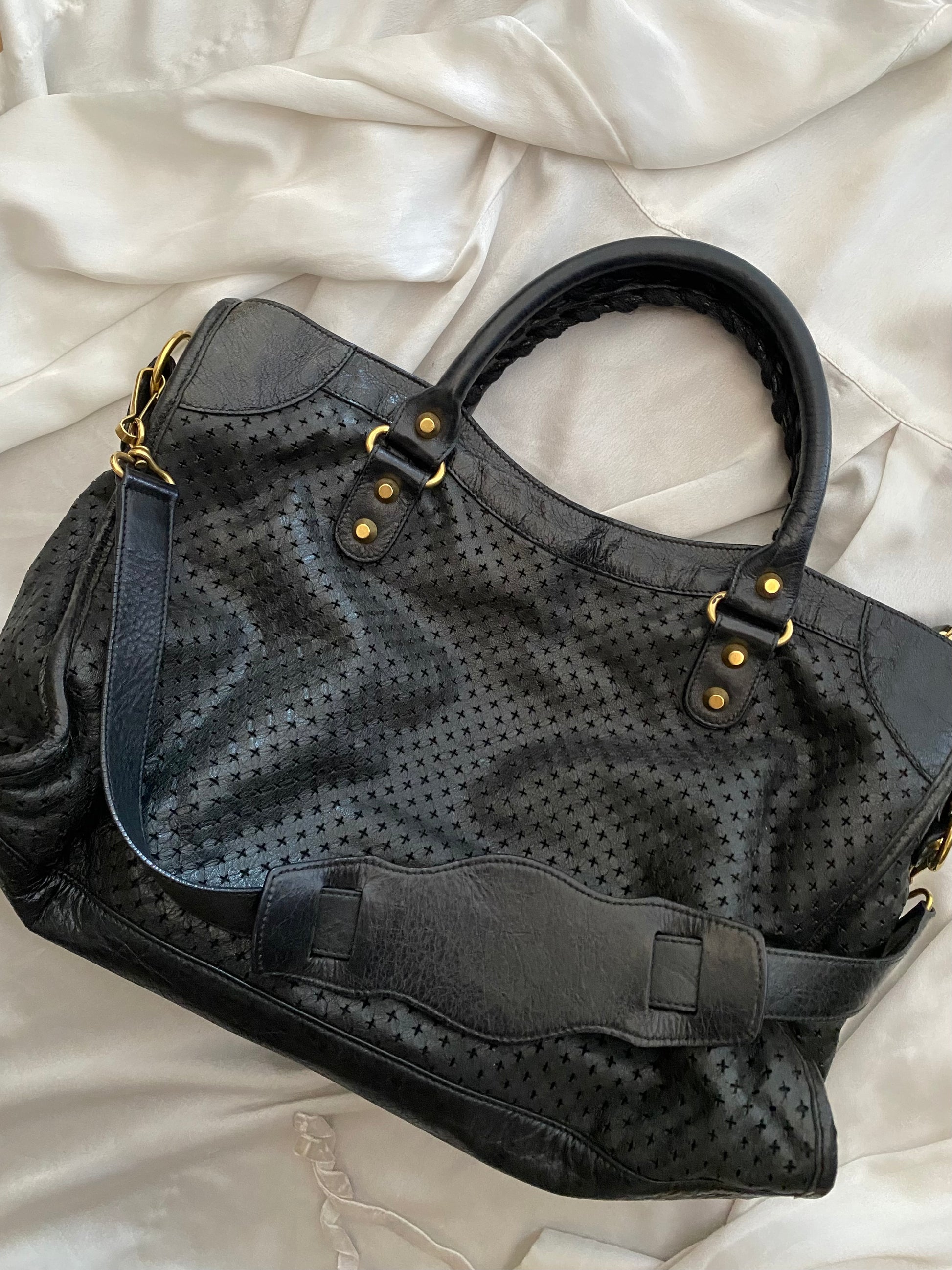 Iconica balenciaga city edizione limitata perforated del 2010. Qualche segno sugli angolini. Cordino e manici perfetti.. buonissime condizioni generali.