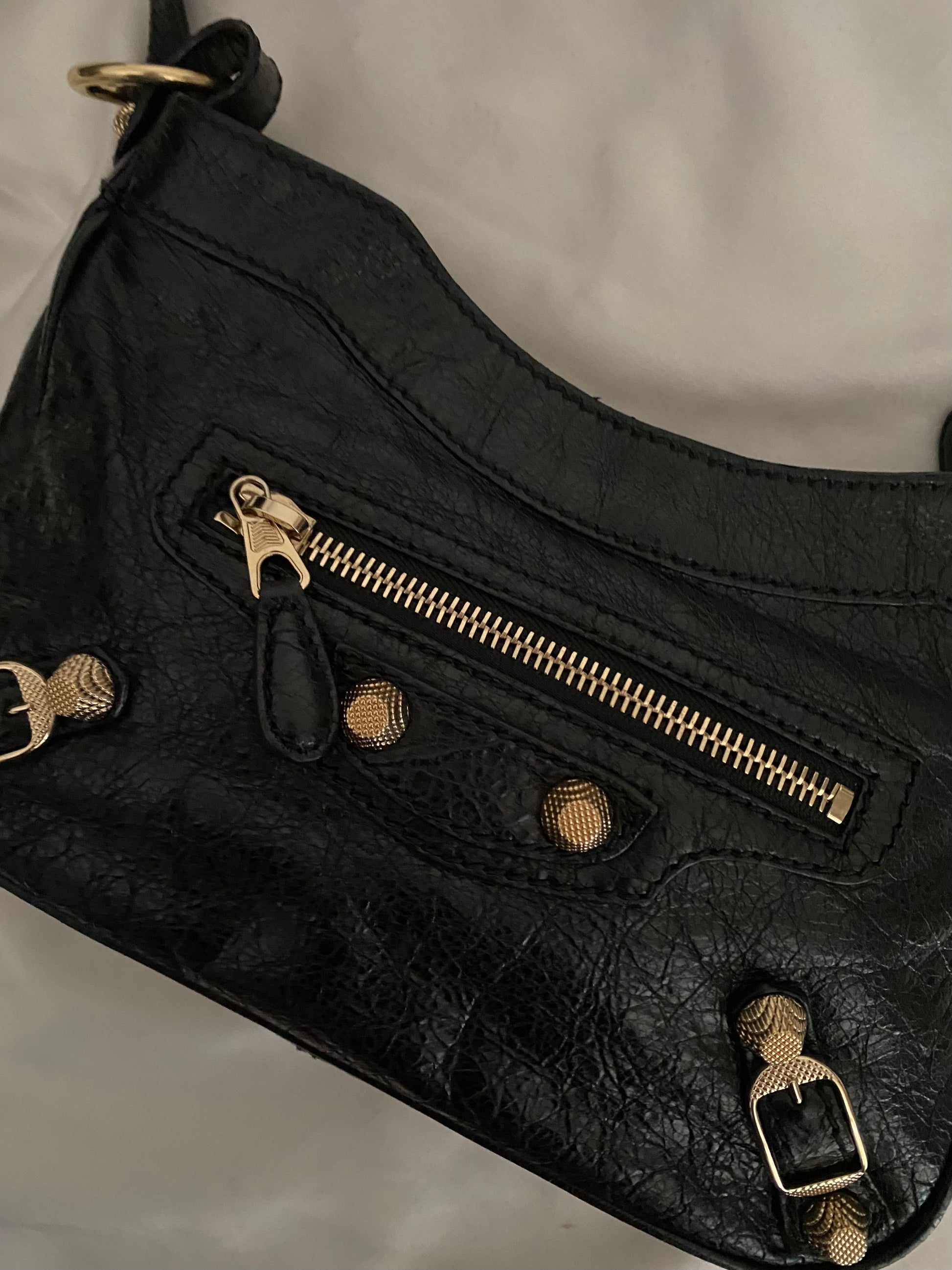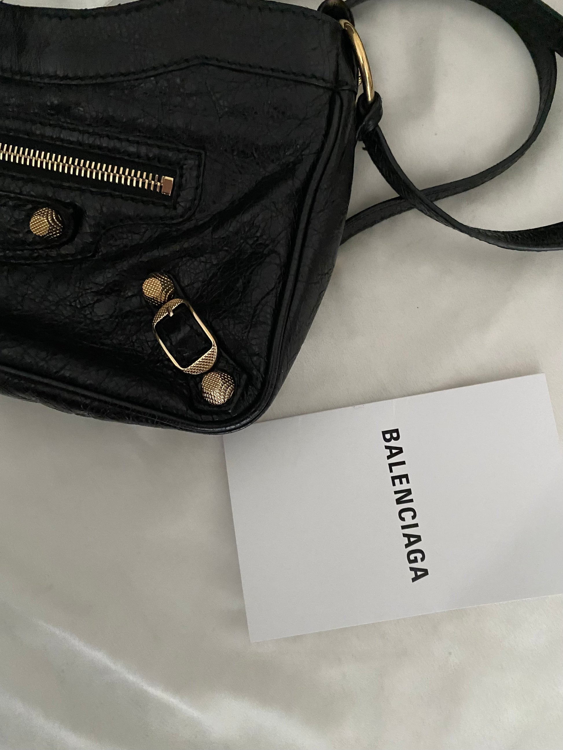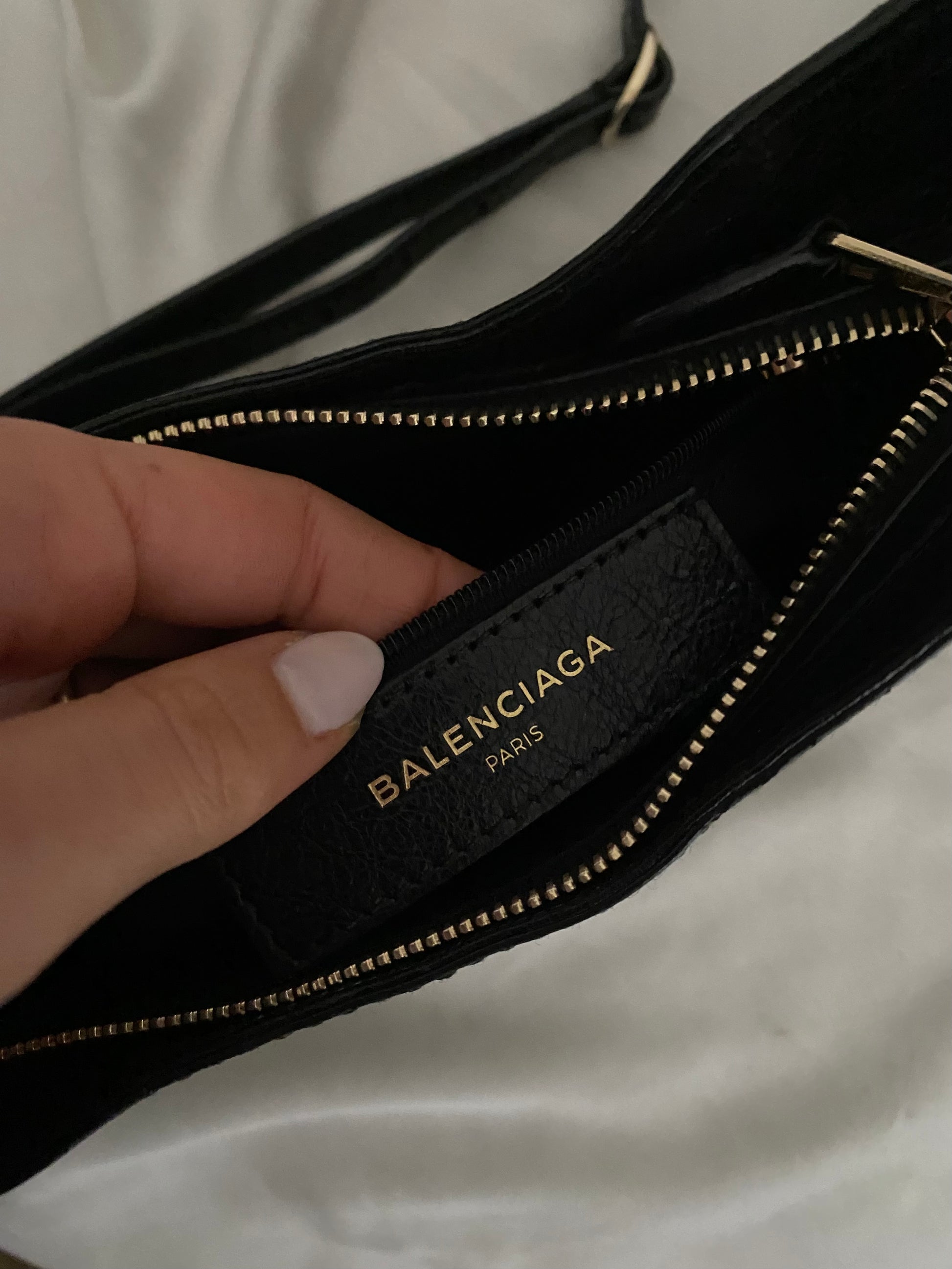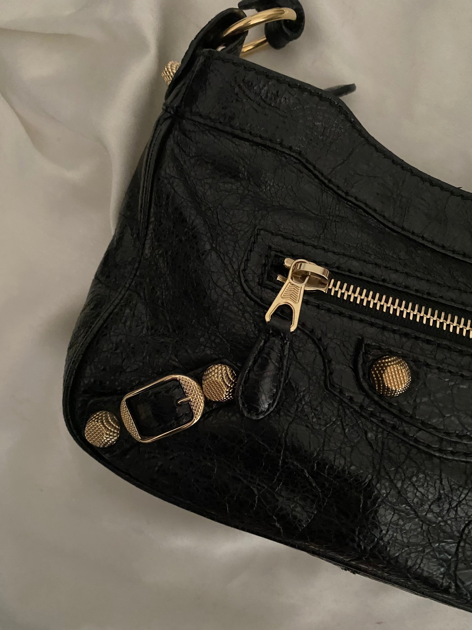Balenciaga hip bag nera in pelle d’agnello e hardware oro. Si può portare a spalla e a tracolla. Nuova con scontrino.