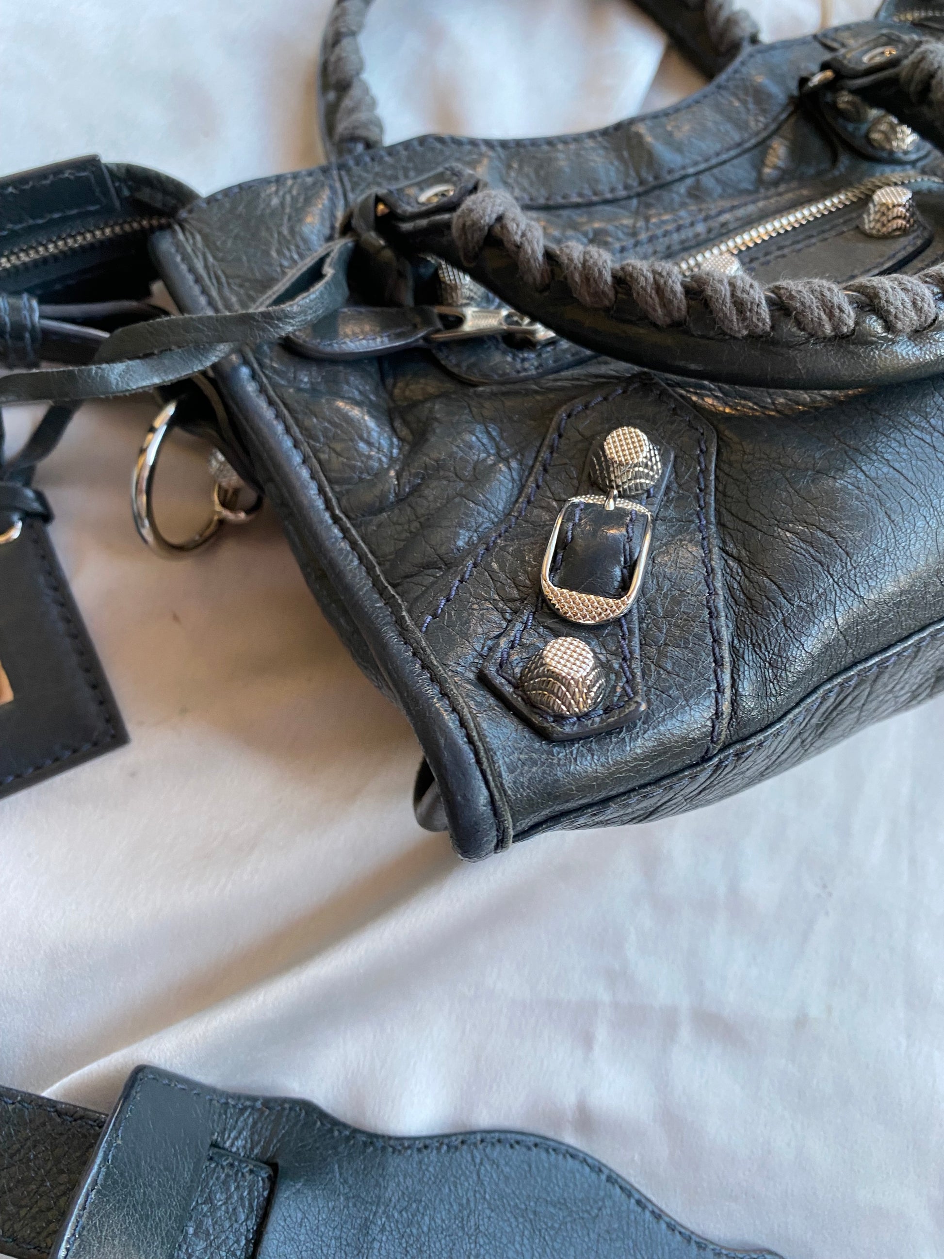 meravigliosa e unica balenciaga mini city del 2013 in pelle d’agnello arena in colore stupendo antracite del f/w 2013 in giant hardware 12 silver. Cordino nuovo. Ottime condizioni generali.