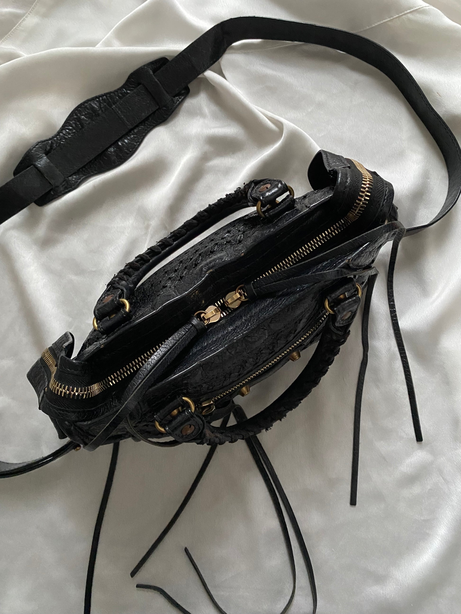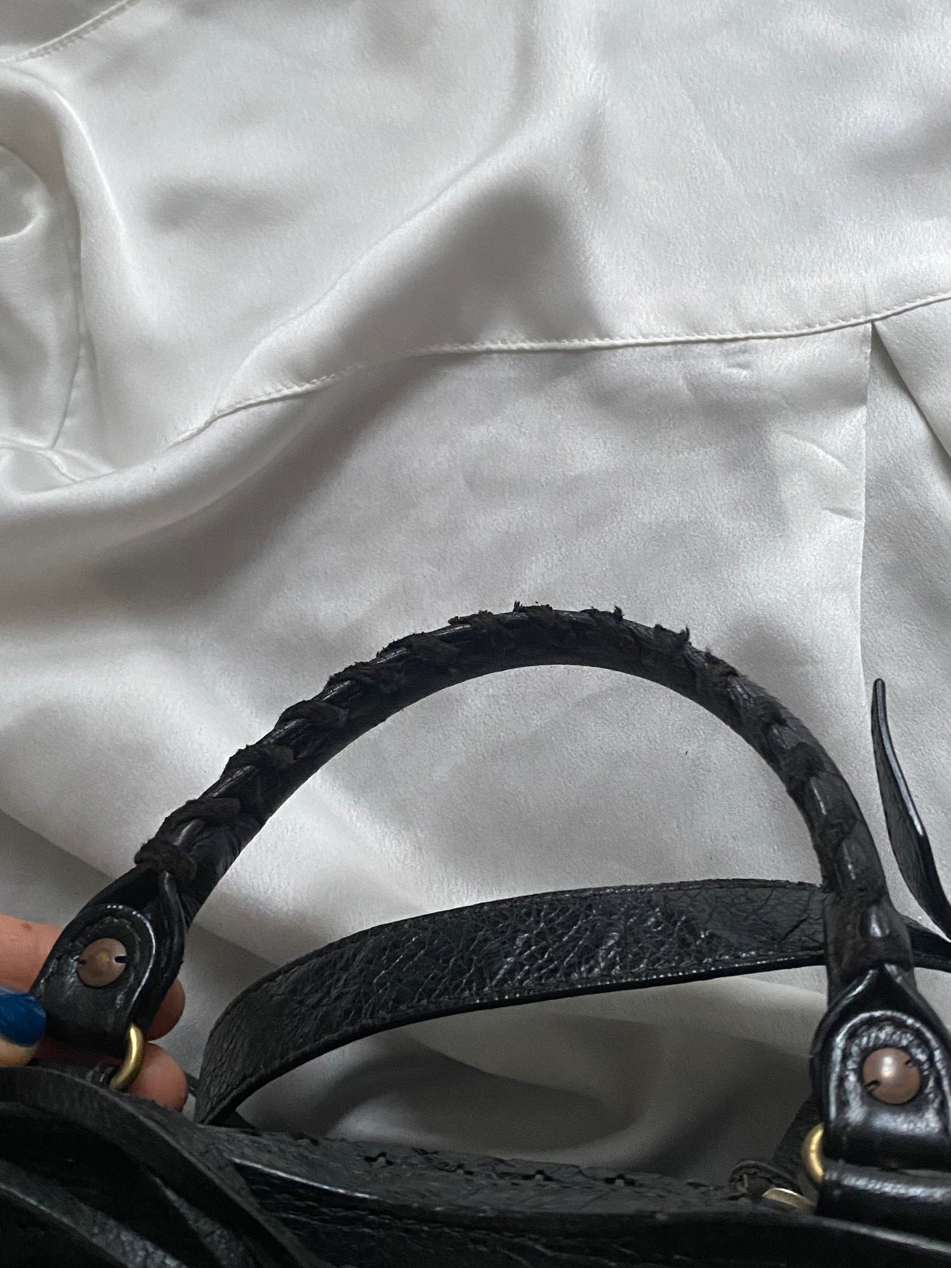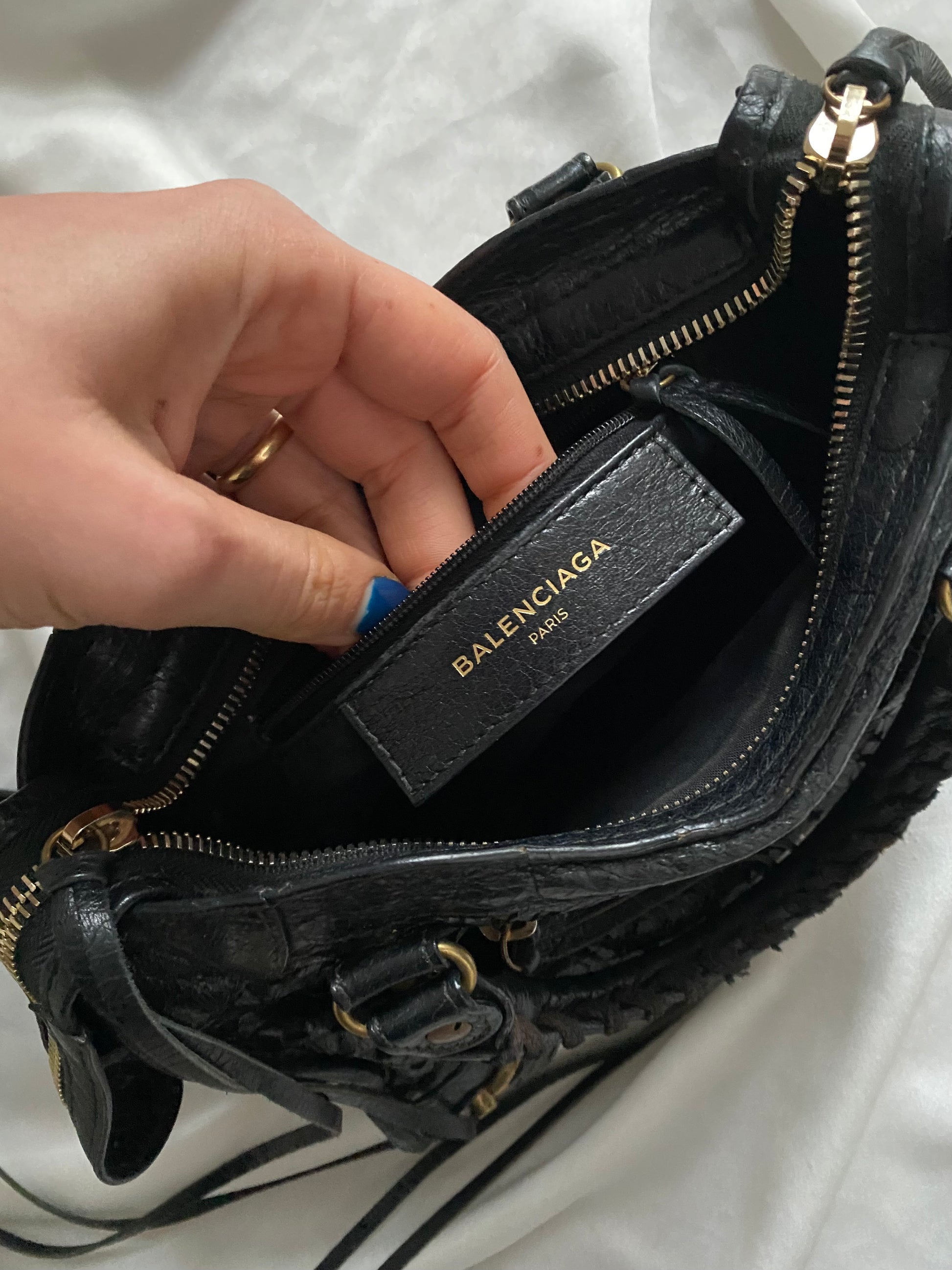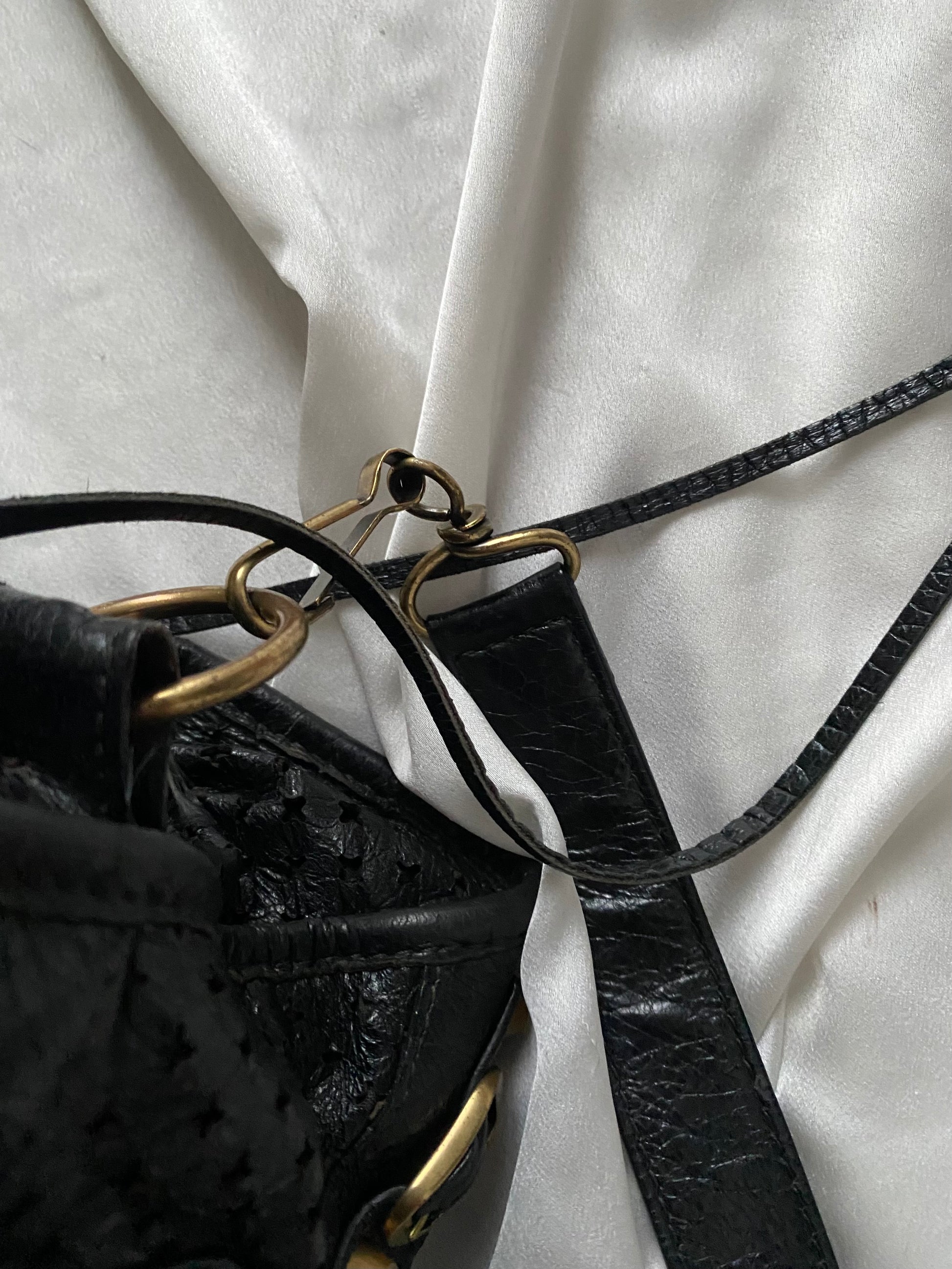 meravigliosa e unica balenciaga mini city del 2018 in pelle d’agnello. Modello veramente unico perché realizzato in pelle perforata. Qualche segno sull’hardware e sul cordoncino del manico, ma buonissime condizioni generali.
