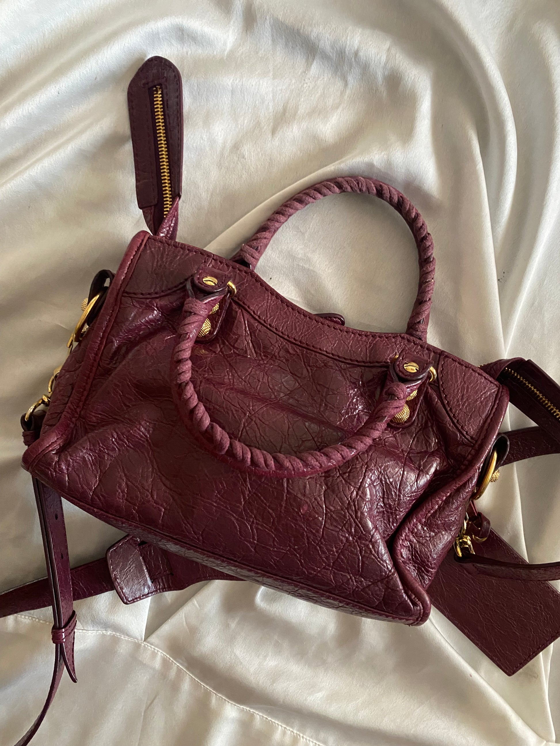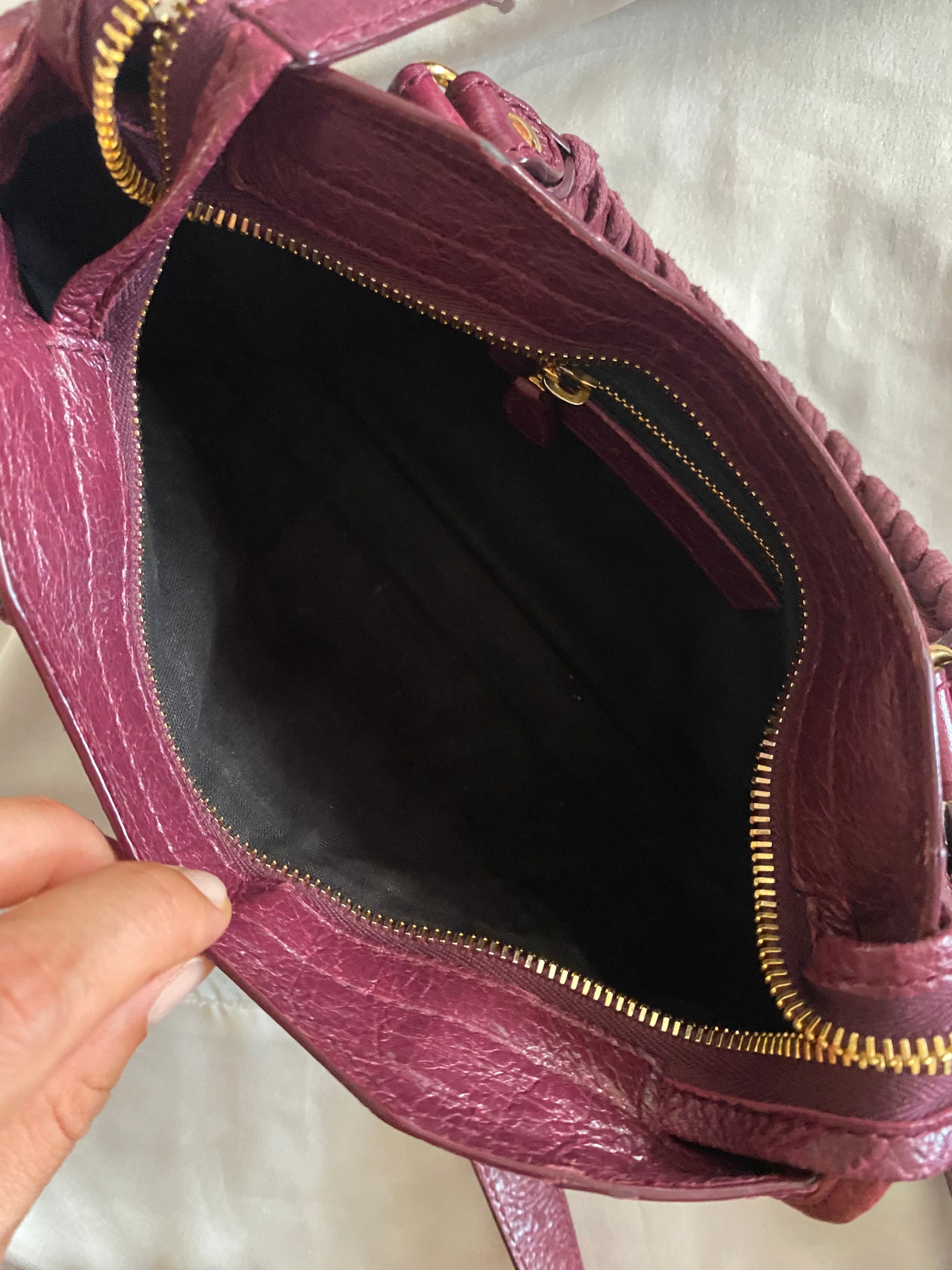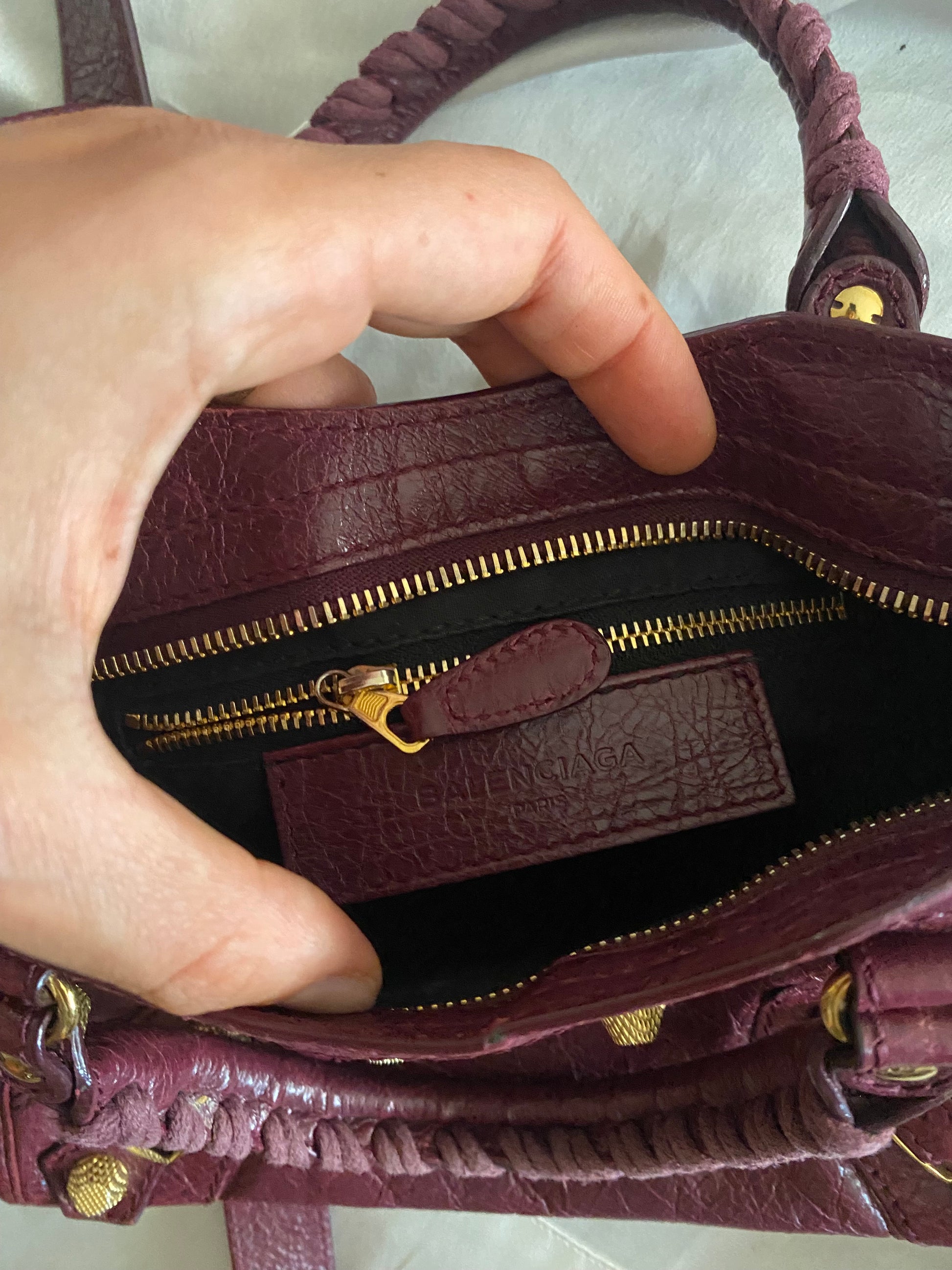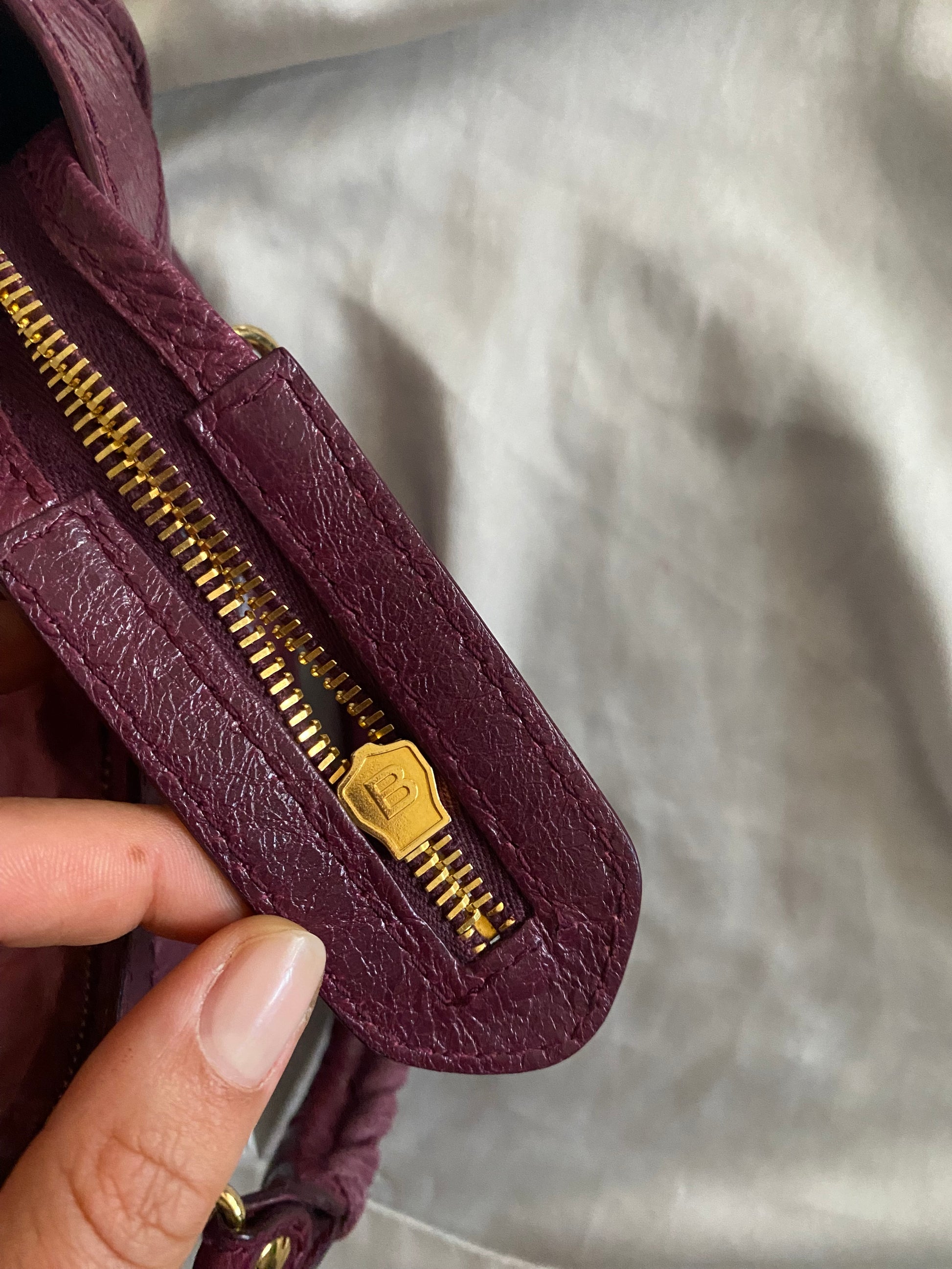 meravigliosa e unica balenciaga mini city del 2016 in pelle d’agnello arena in colore stupendo violet prune del f/w 2016 in giant hardware 12 oro. Usata con qualche segno su angoli e bordino. Cordino perfetto. buonissime condizioni generali.