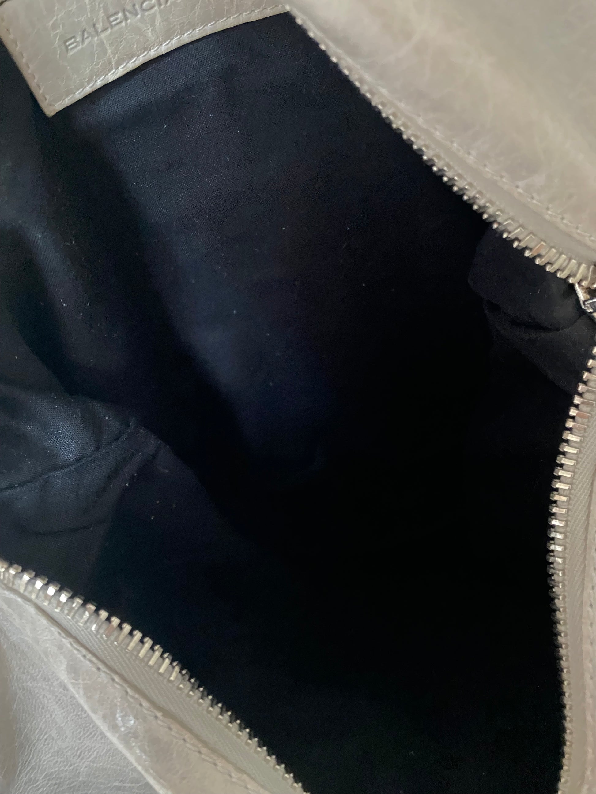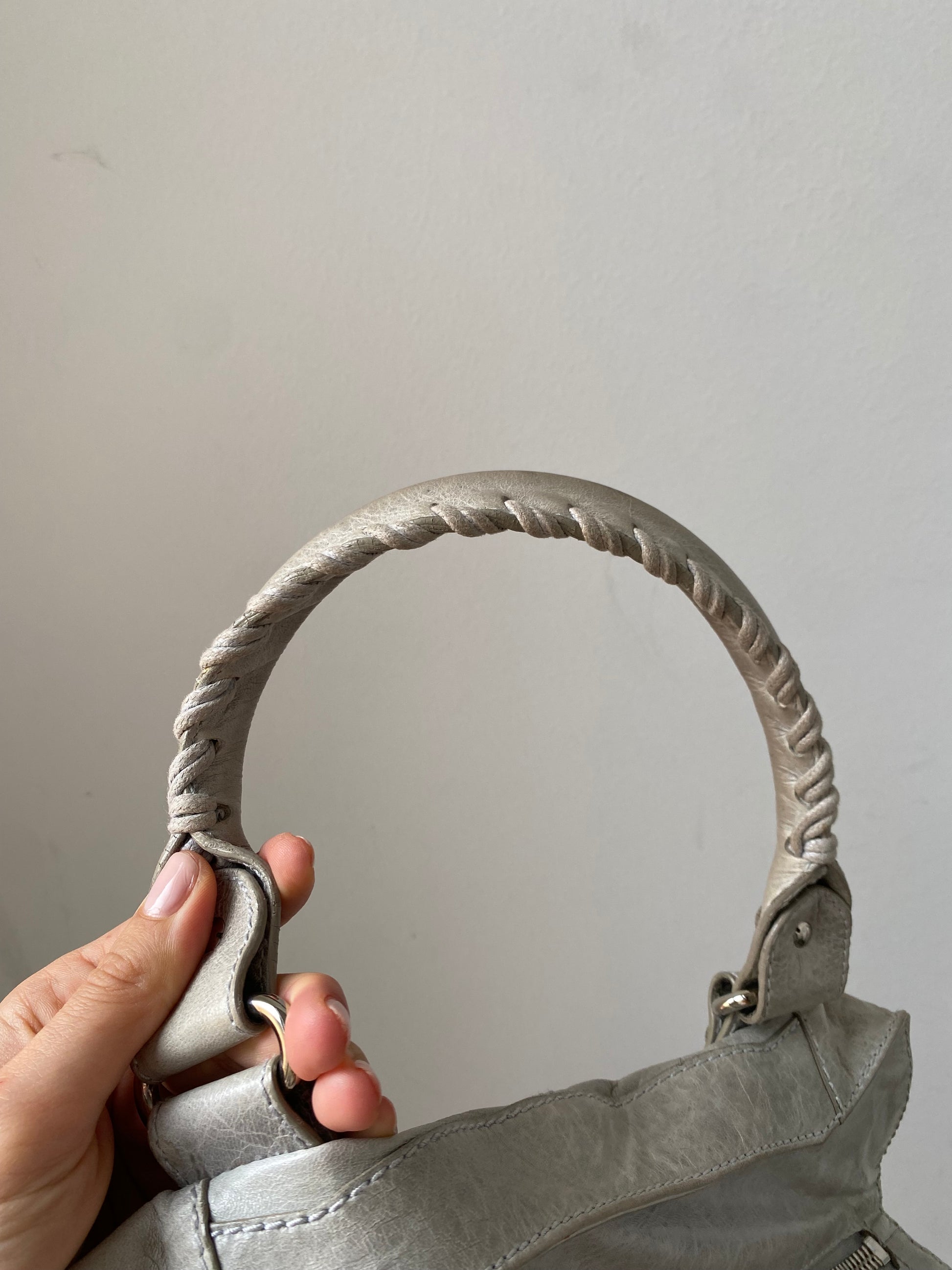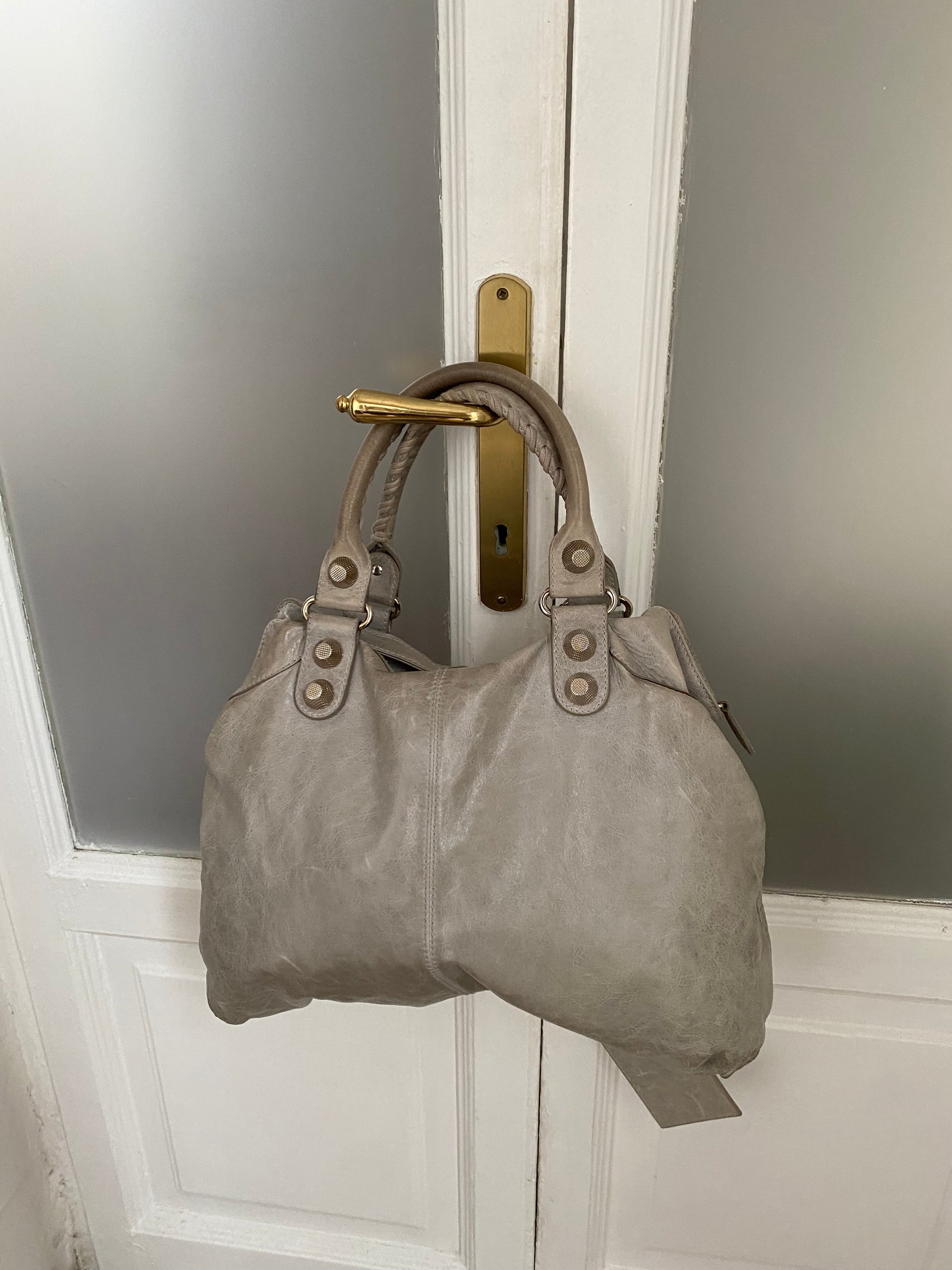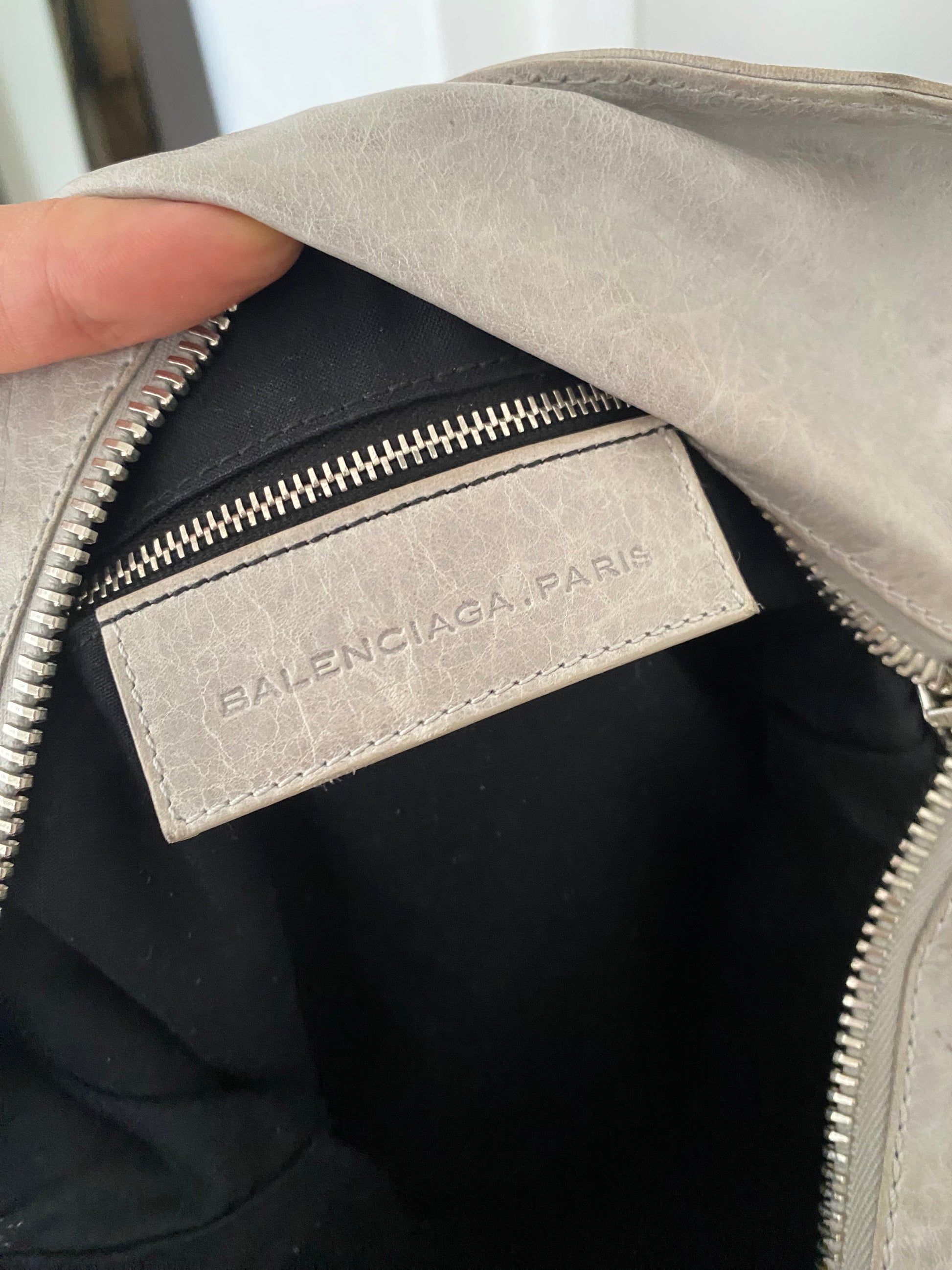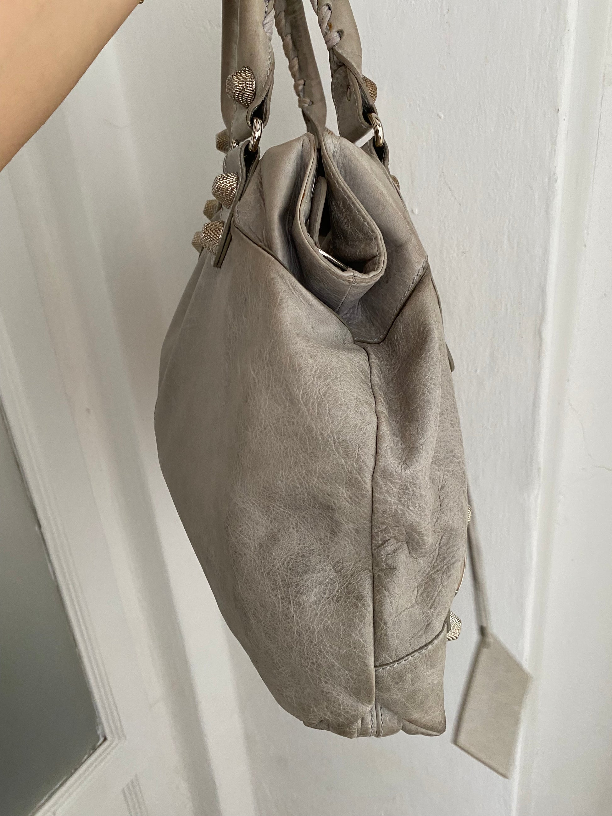 Balenciaga the brief colore argent f/w 2008. Caratteristica pelle invecchiata. Qualche segno sulla pelle e su un angolo, ma buonissime condizioni generali. Interno pulito, unica micro macchia sotto l’etichetta. Pazzesca e stupenda
