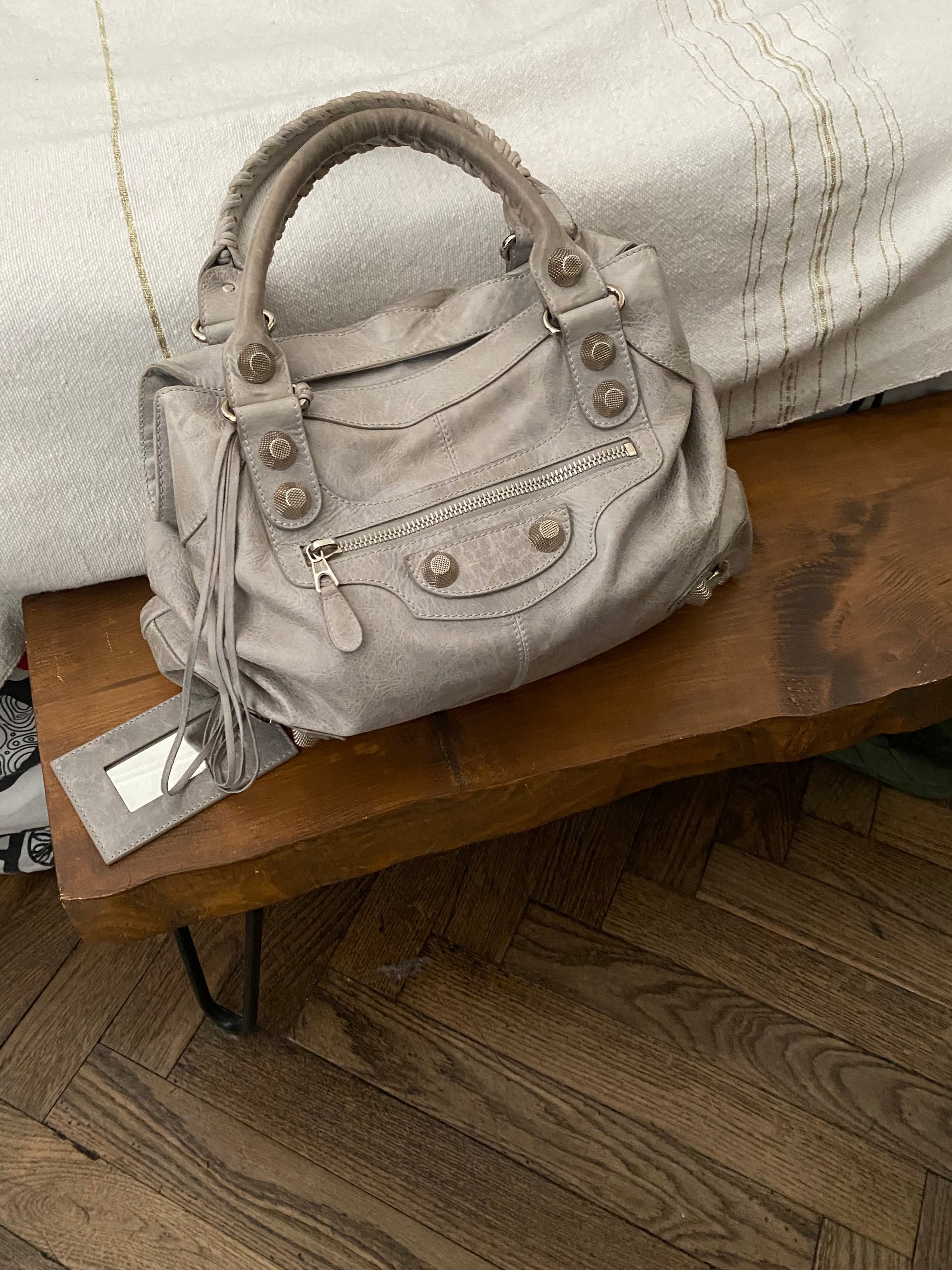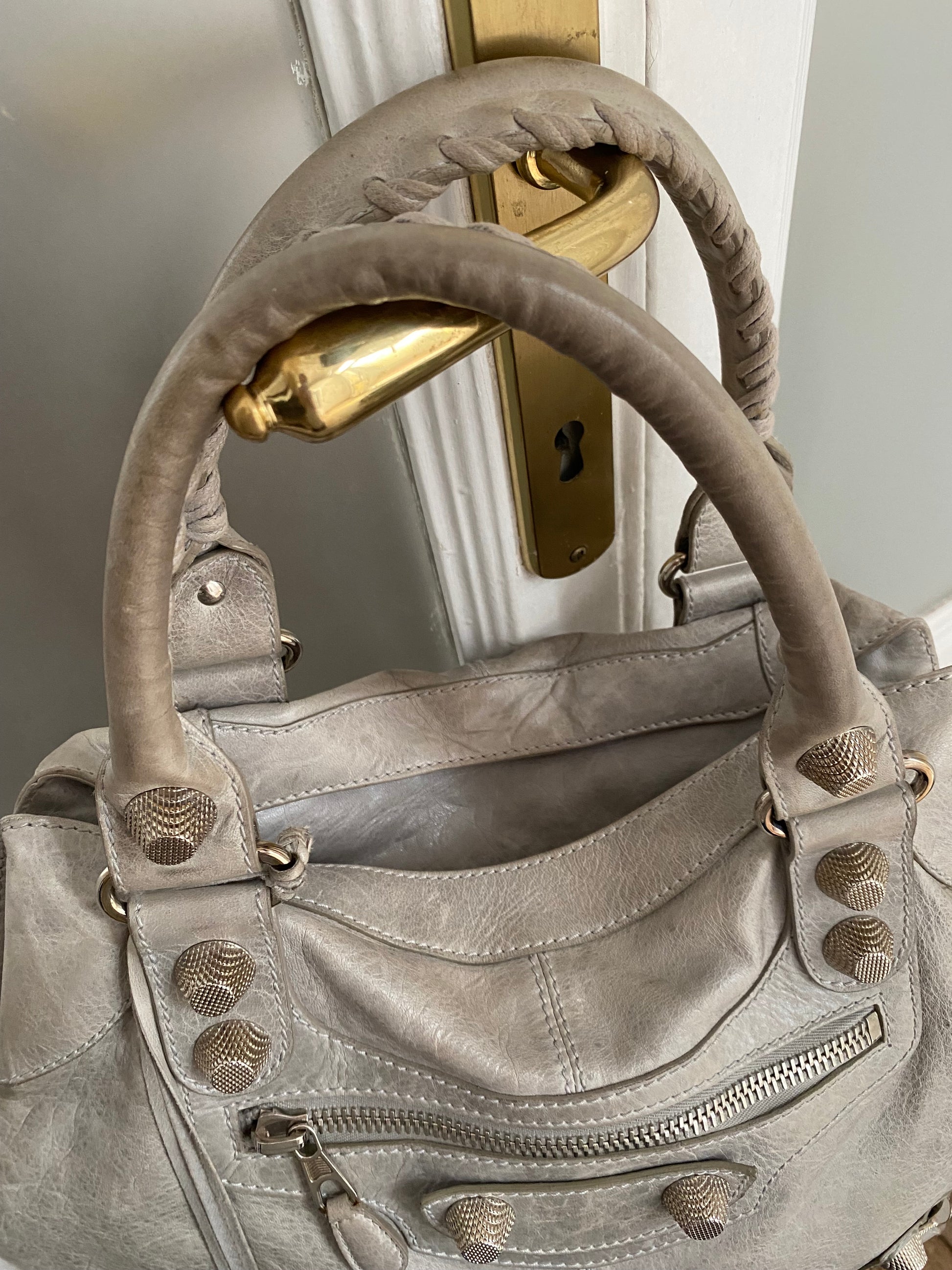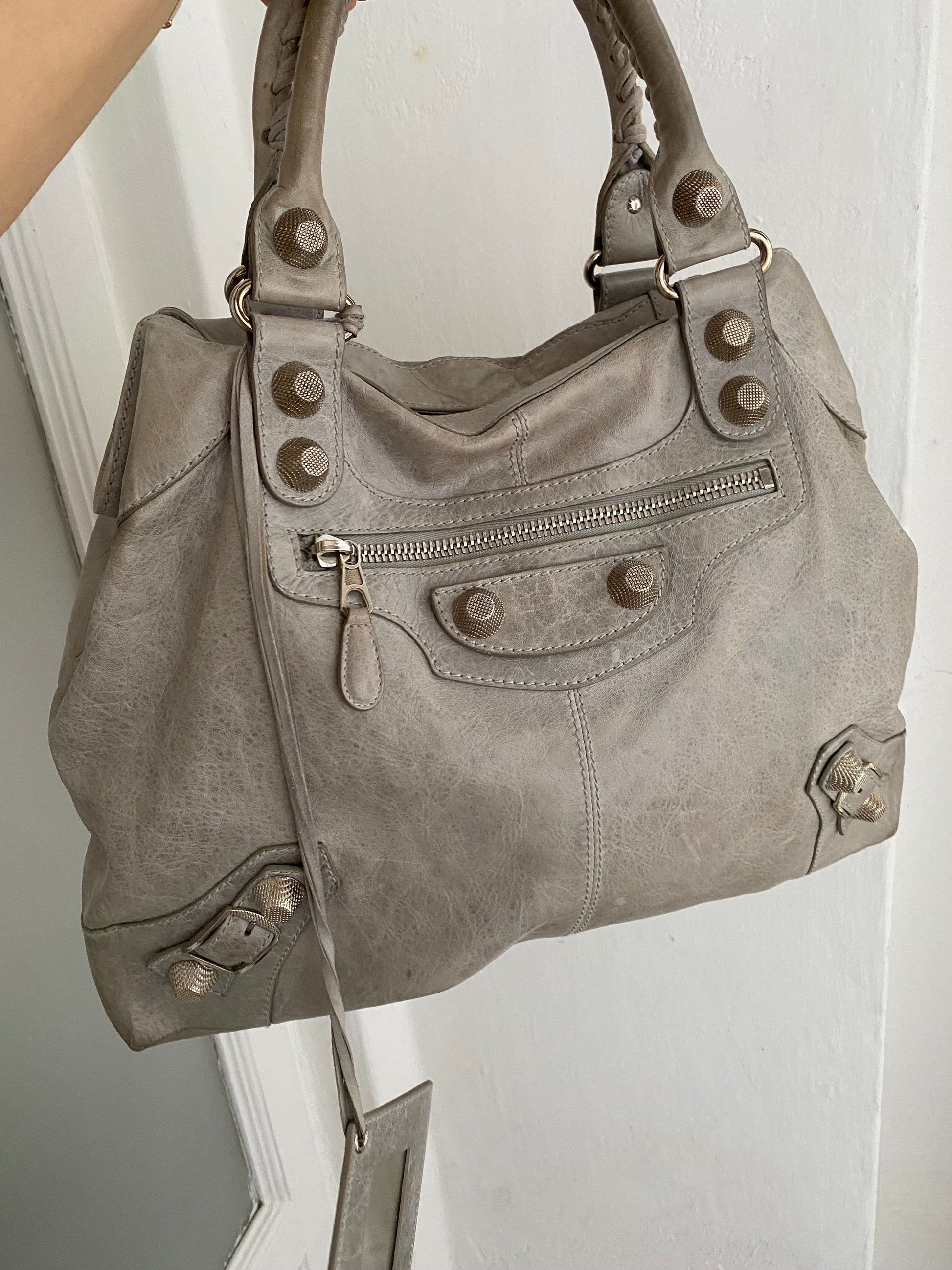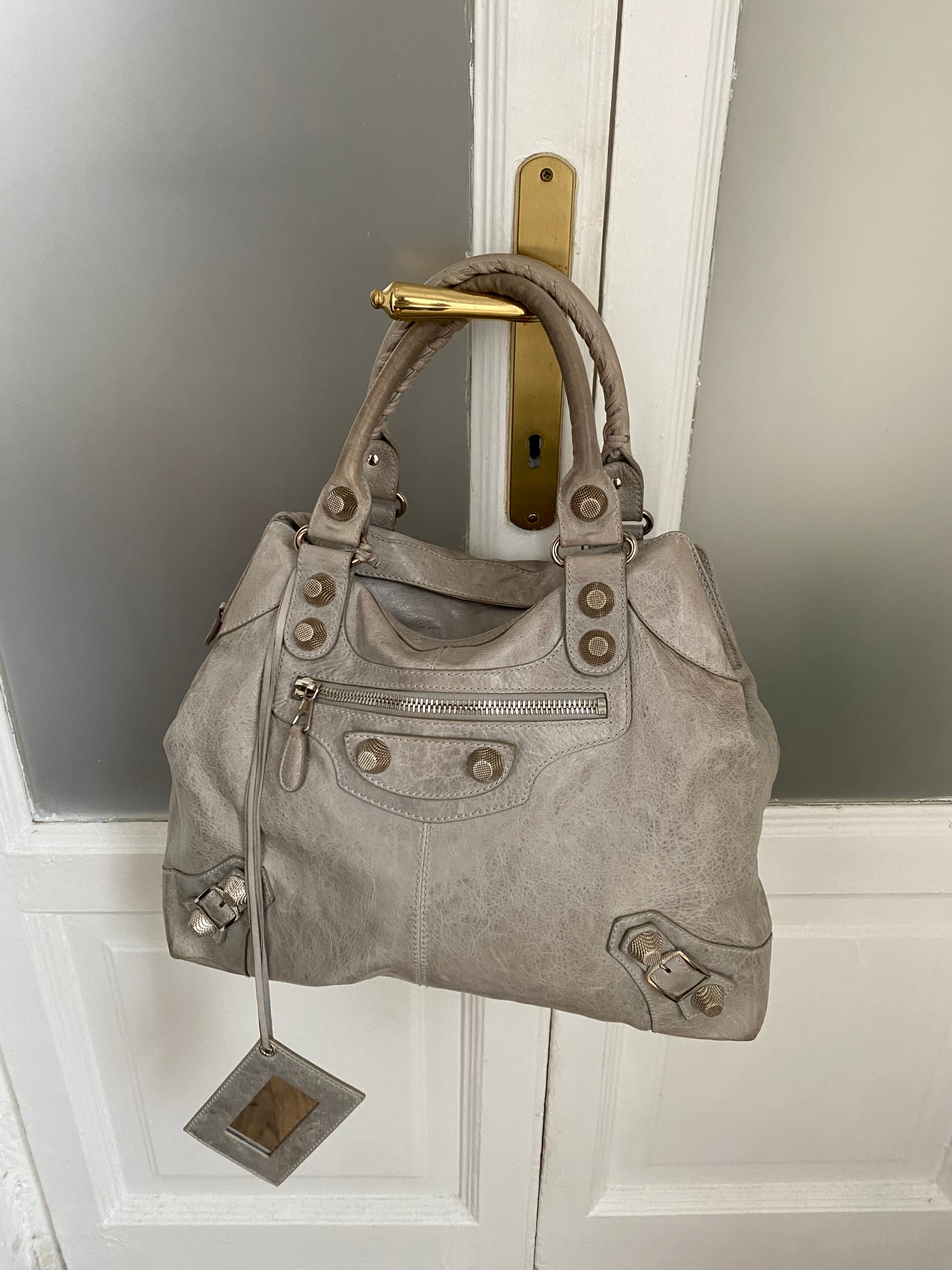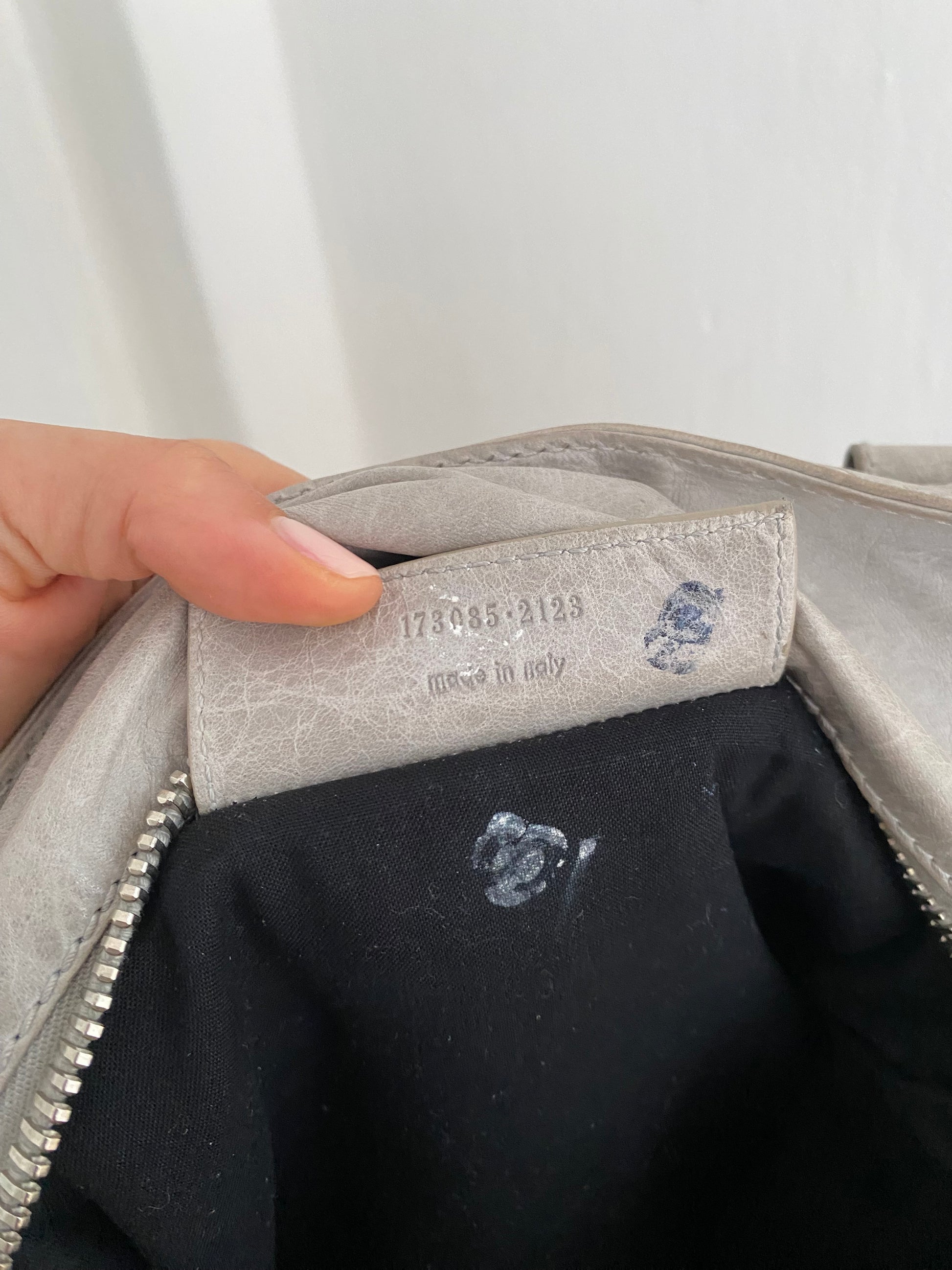 Balenciaga the brief colore argent f/w 2008. Caratteristica pelle invecchiata. Qualche segno sulla pelle e su un angolo, ma buonissime condizioni generali. Interno pulito, unica micro macchia sotto l’etichetta. Pazzesca e stupenda