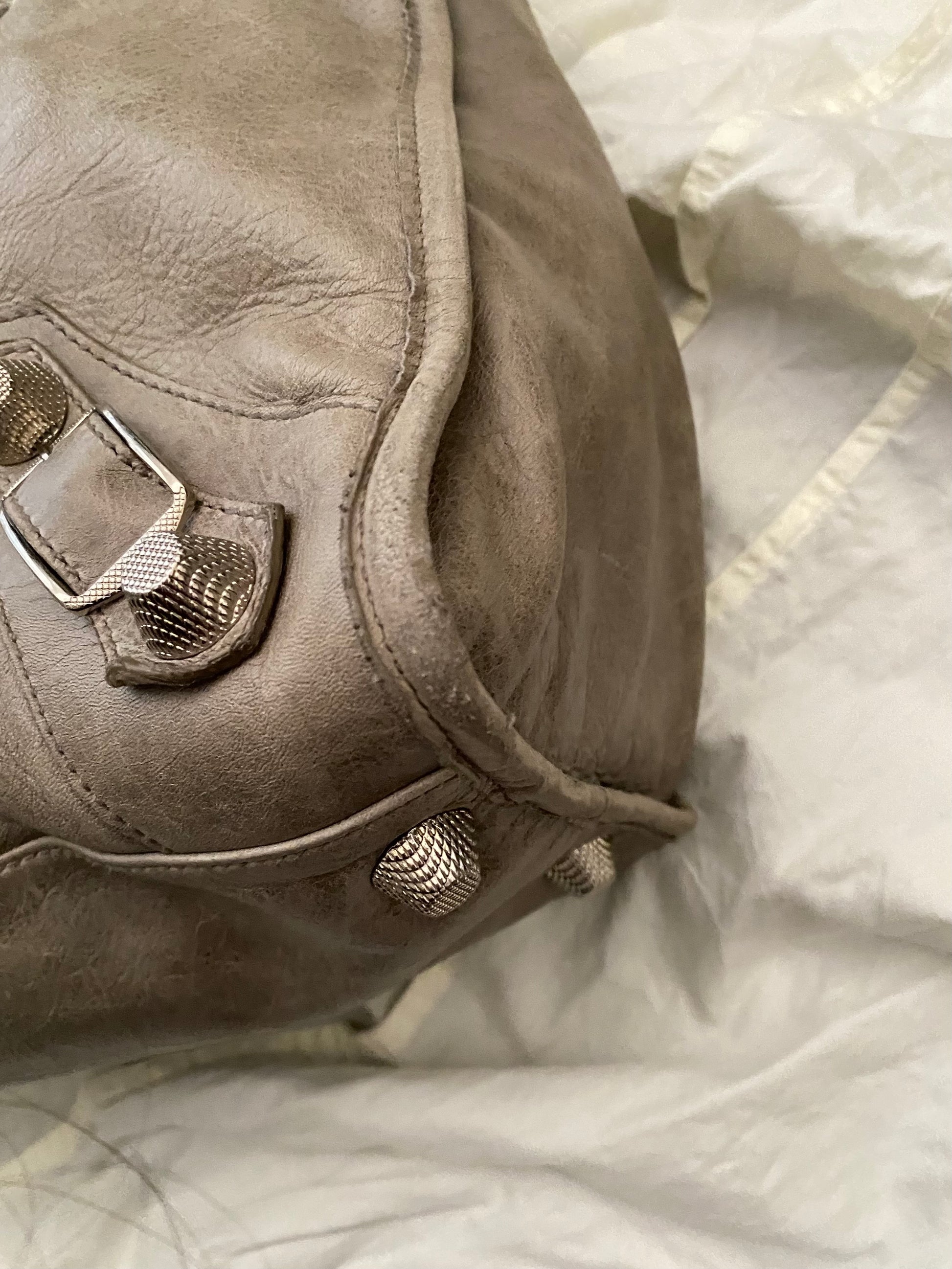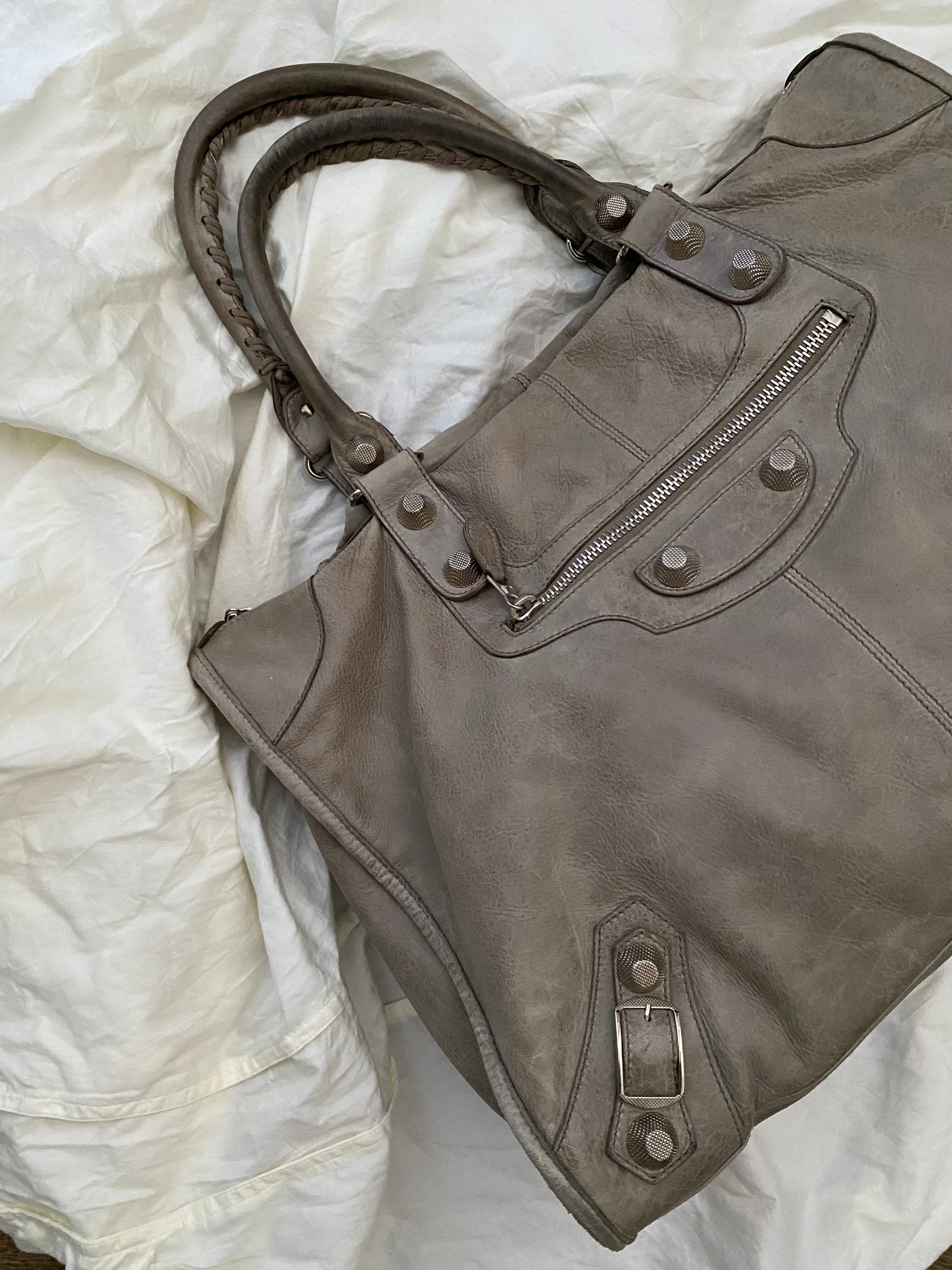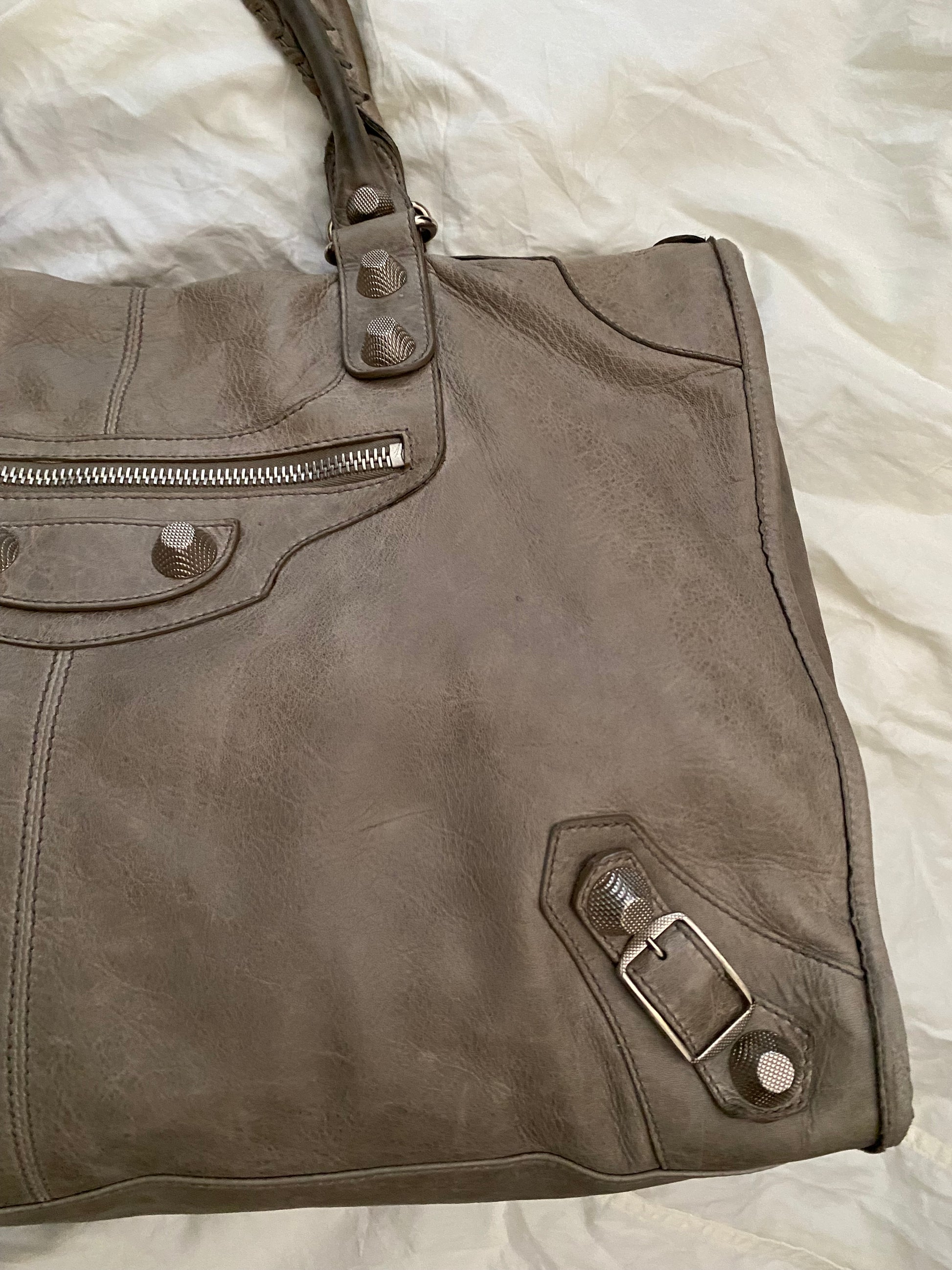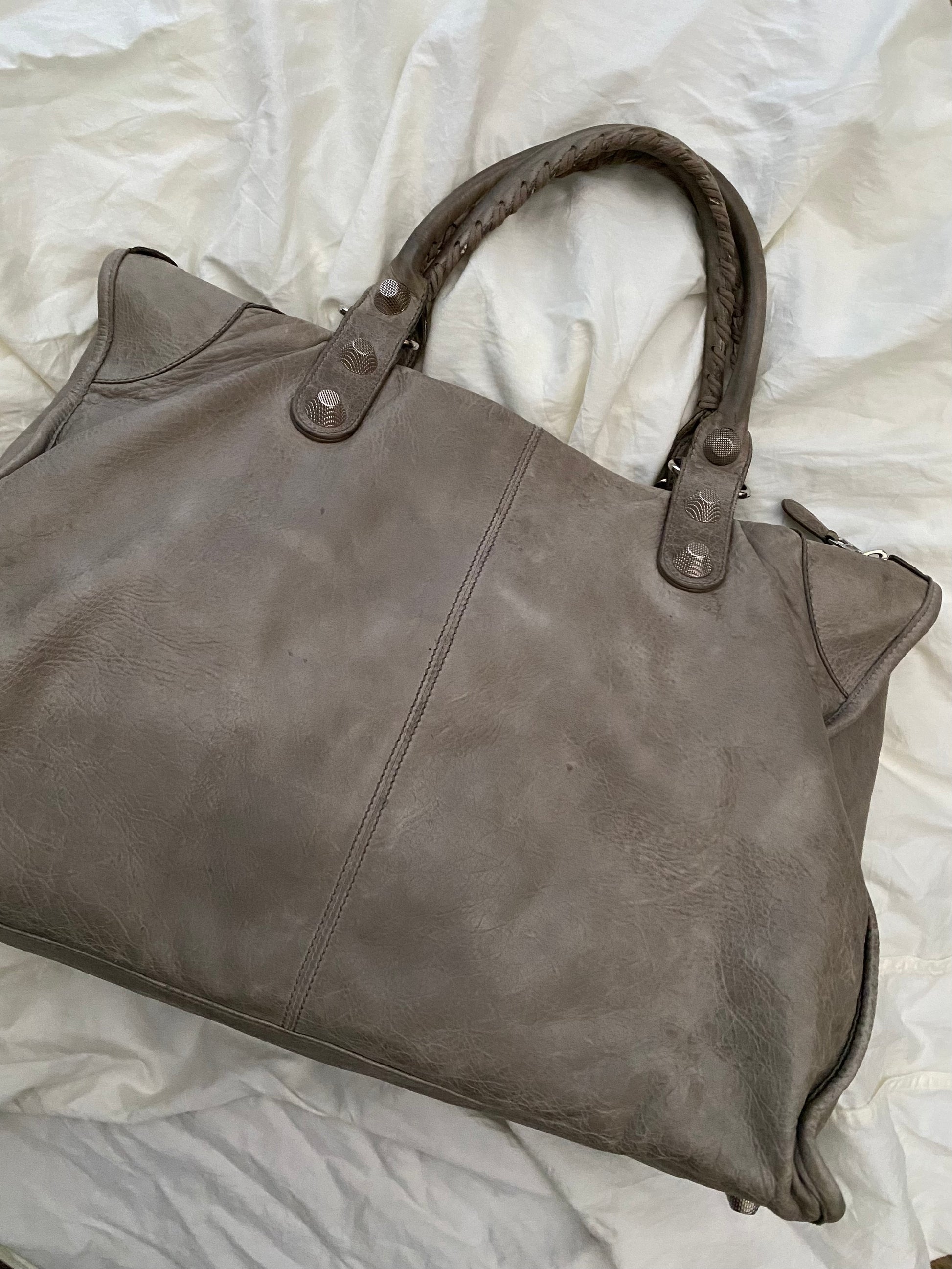 Pazzesca balenciaga weekender in giant hardware silver del fall winter 2009 (colore galet), enorme e bellissima. Qualche segno sulla pelle e sugli angoli, buonissime condizioni generali.