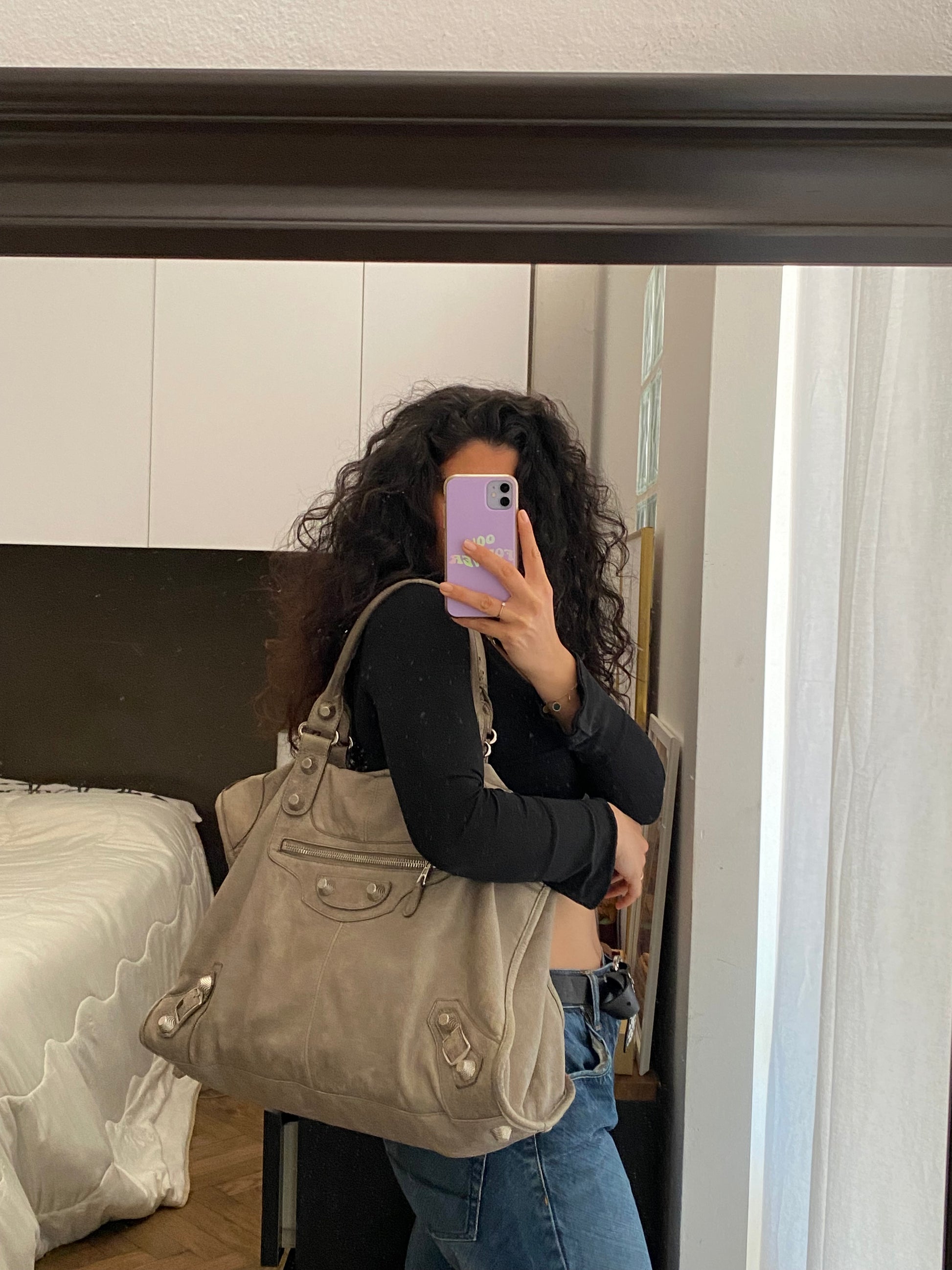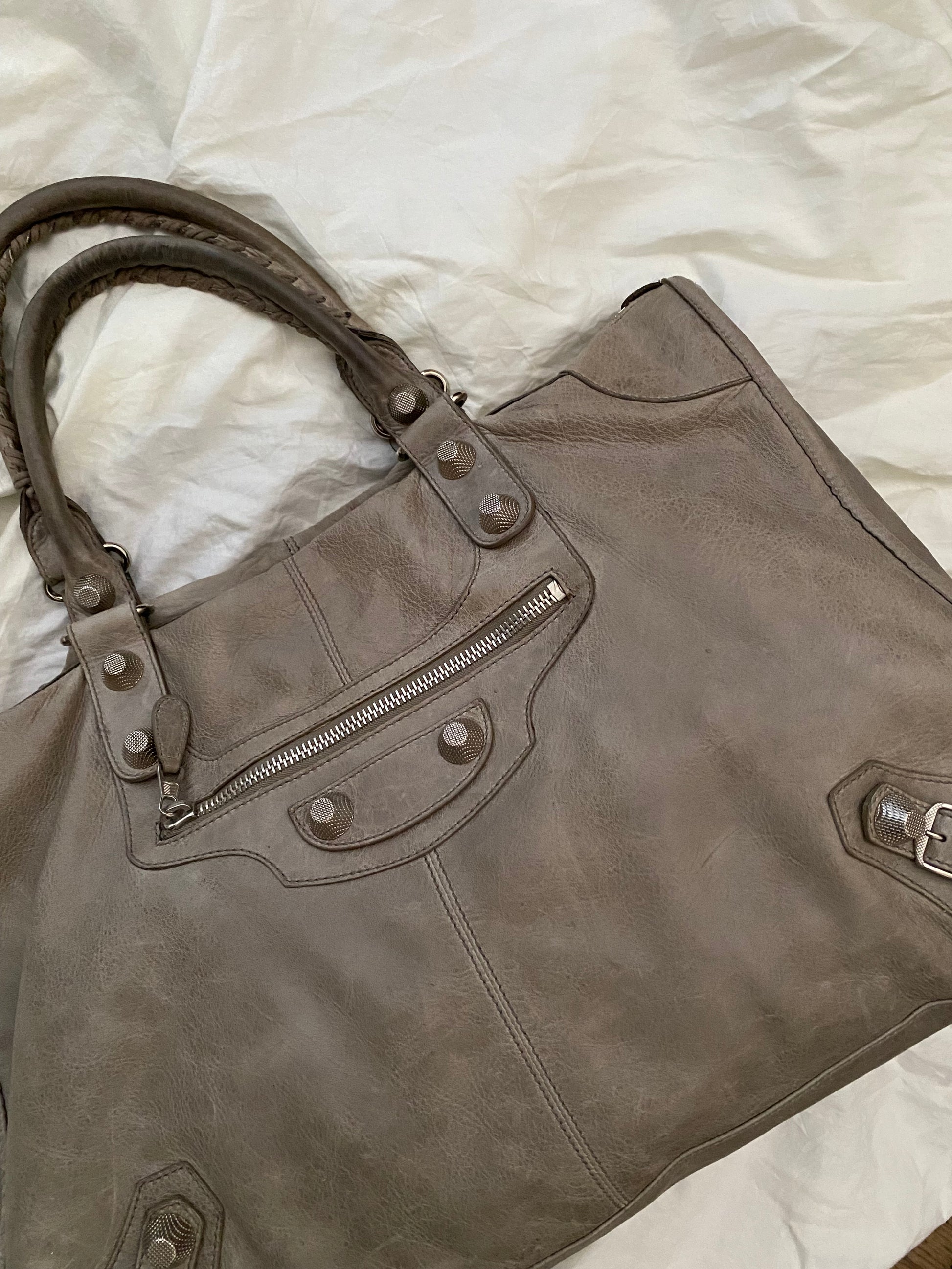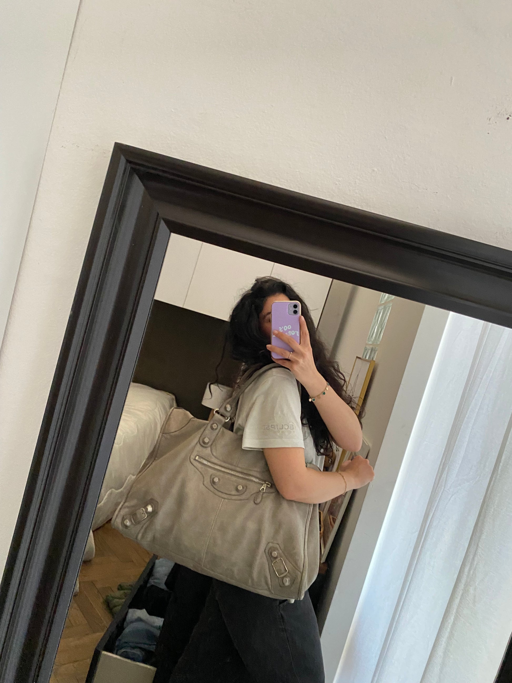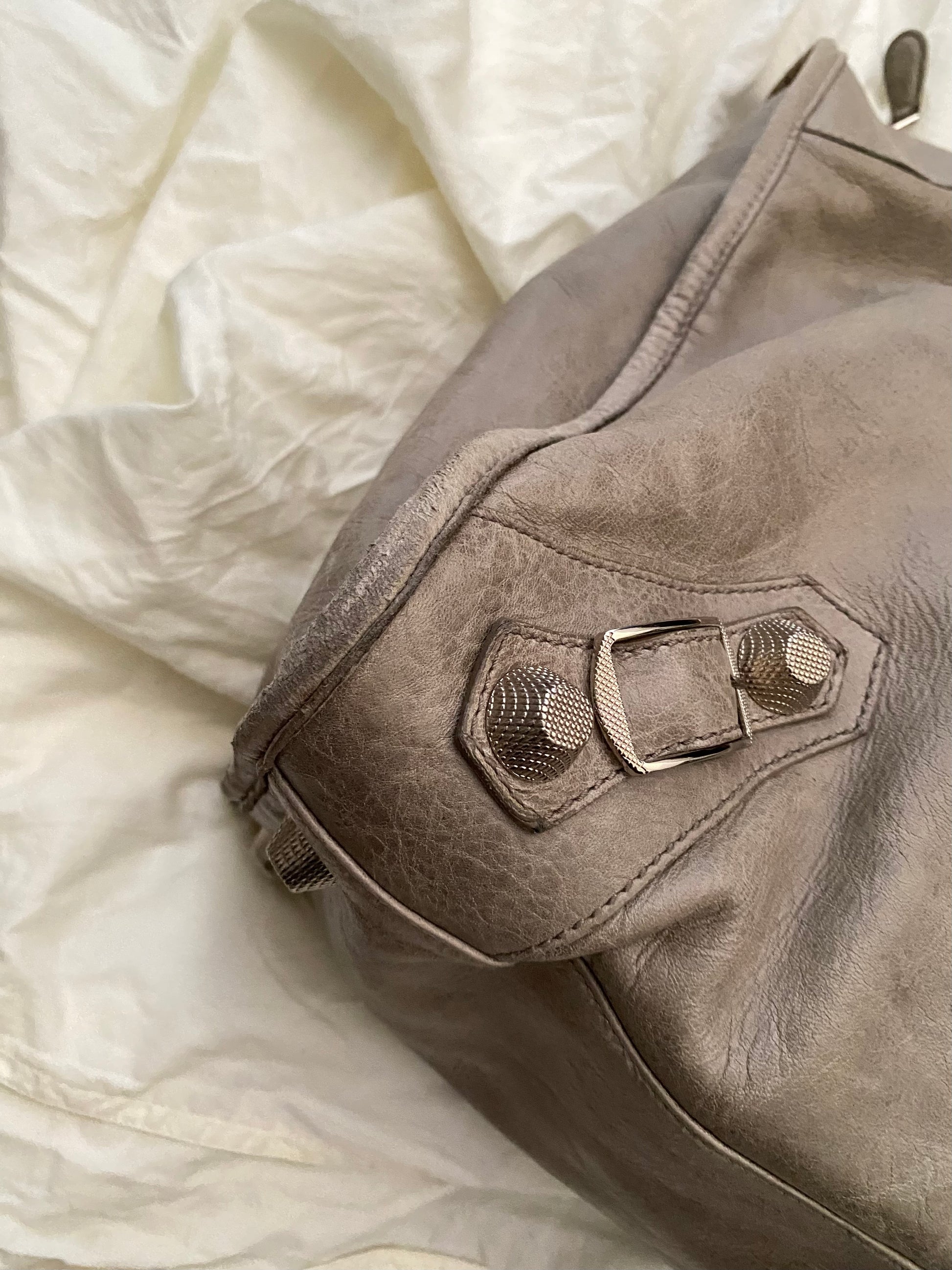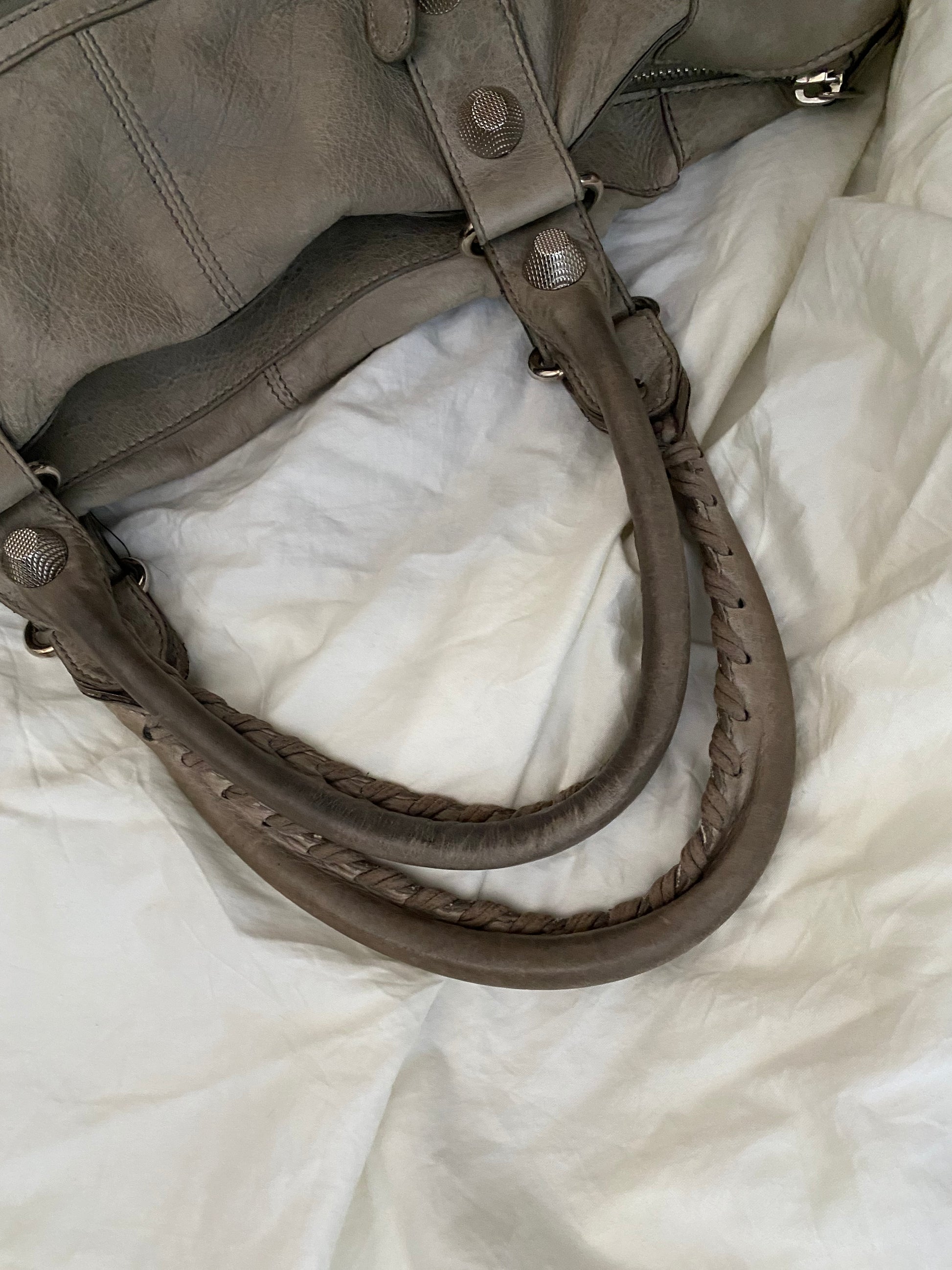 Pazzesca balenciaga weekender in giant hardware silver del fall winter 2009 (colore galet), enorme e bellissima. Qualche segno sulla pelle e sugli angoli, buonissime condizioni generali.