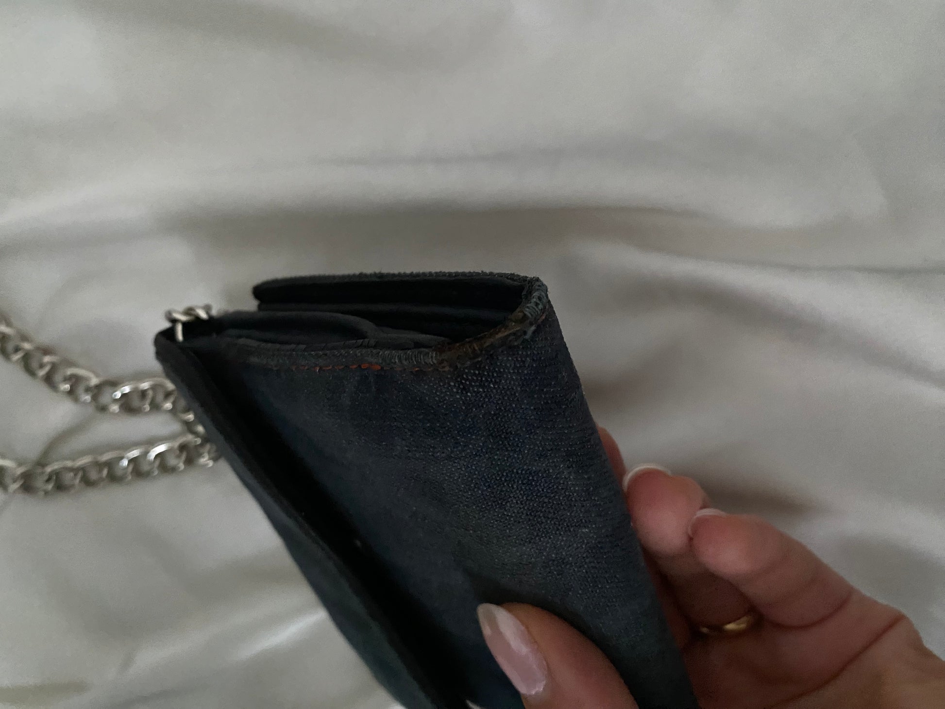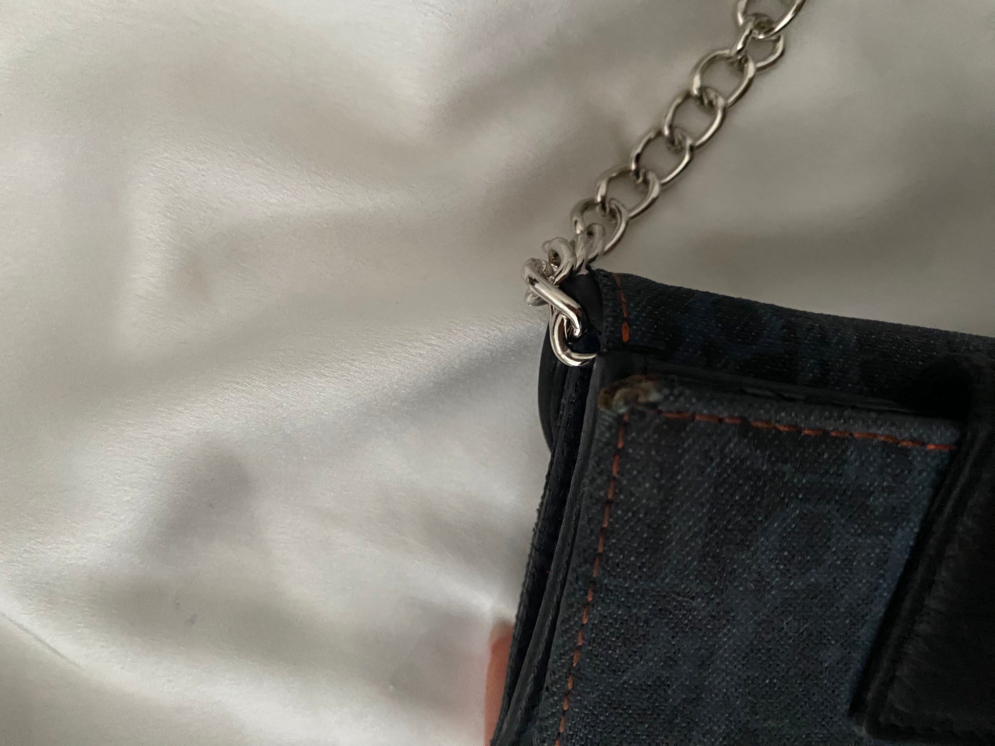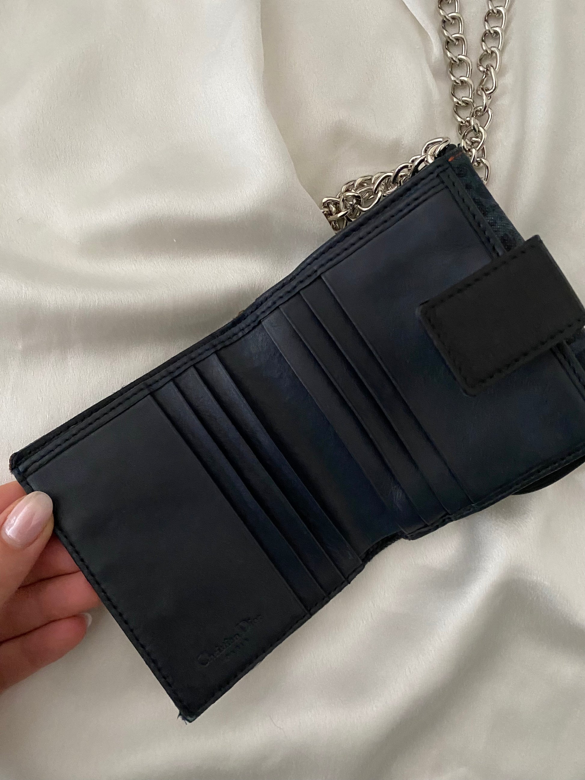 Mini saddle dior in jeans con classico monogram. Ricavata da un portafoglio. Alcune imperfezioni sui bordi (foto) ma perfetta una volta indossata. Buone condizioni generali. Catena aggiunta.