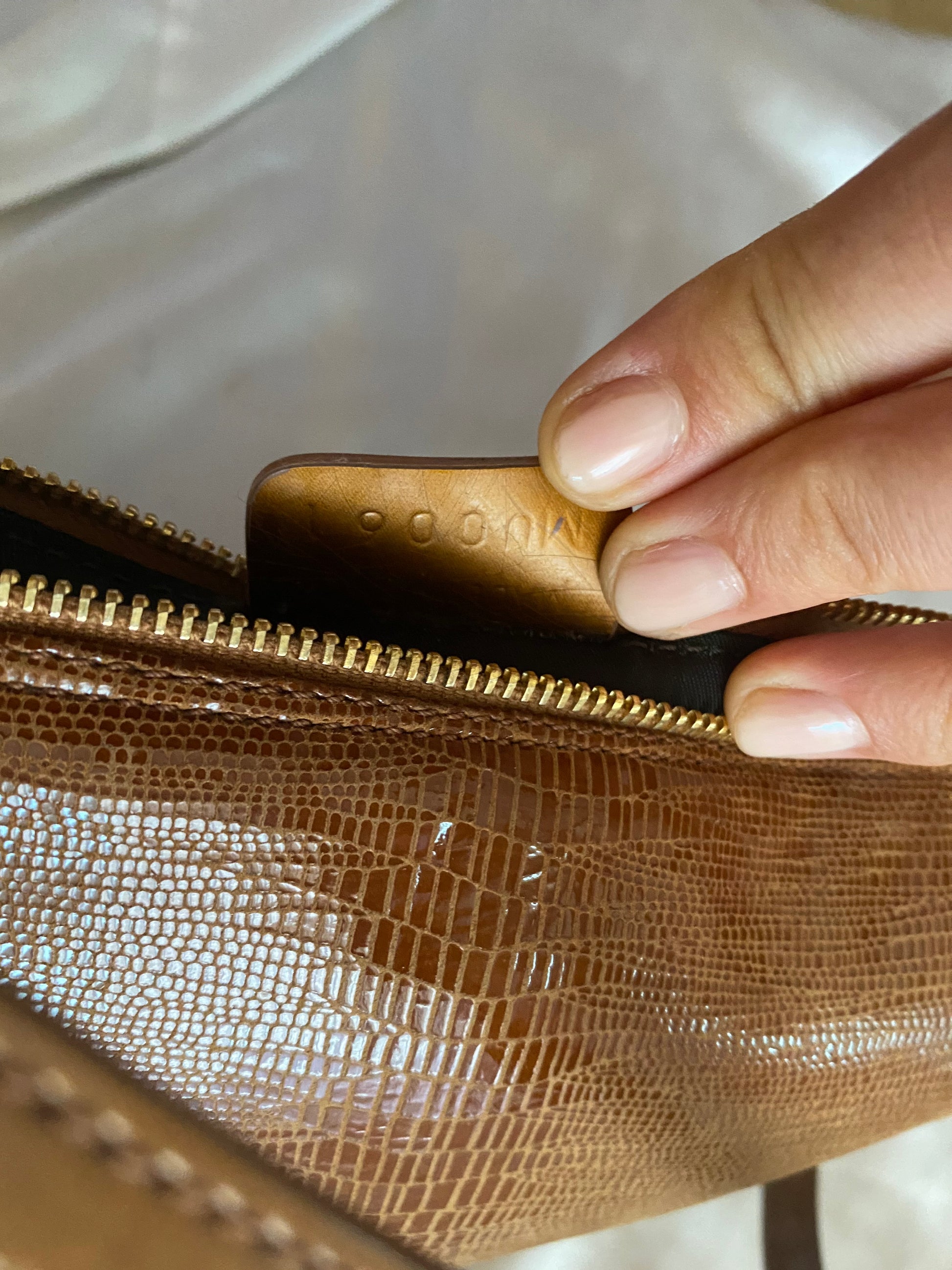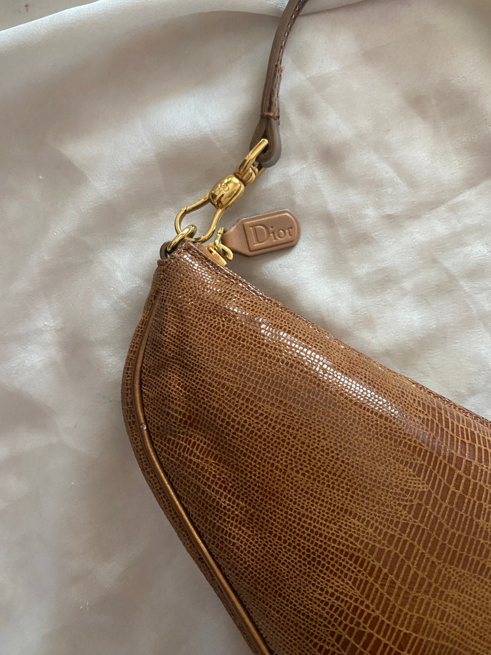 Rara e stupenda dior mini saddle in pelle di lucertola marrone con sottotoni dorati preziosissimo, effetto brillante, era John galliano. OTTIME condizioni.