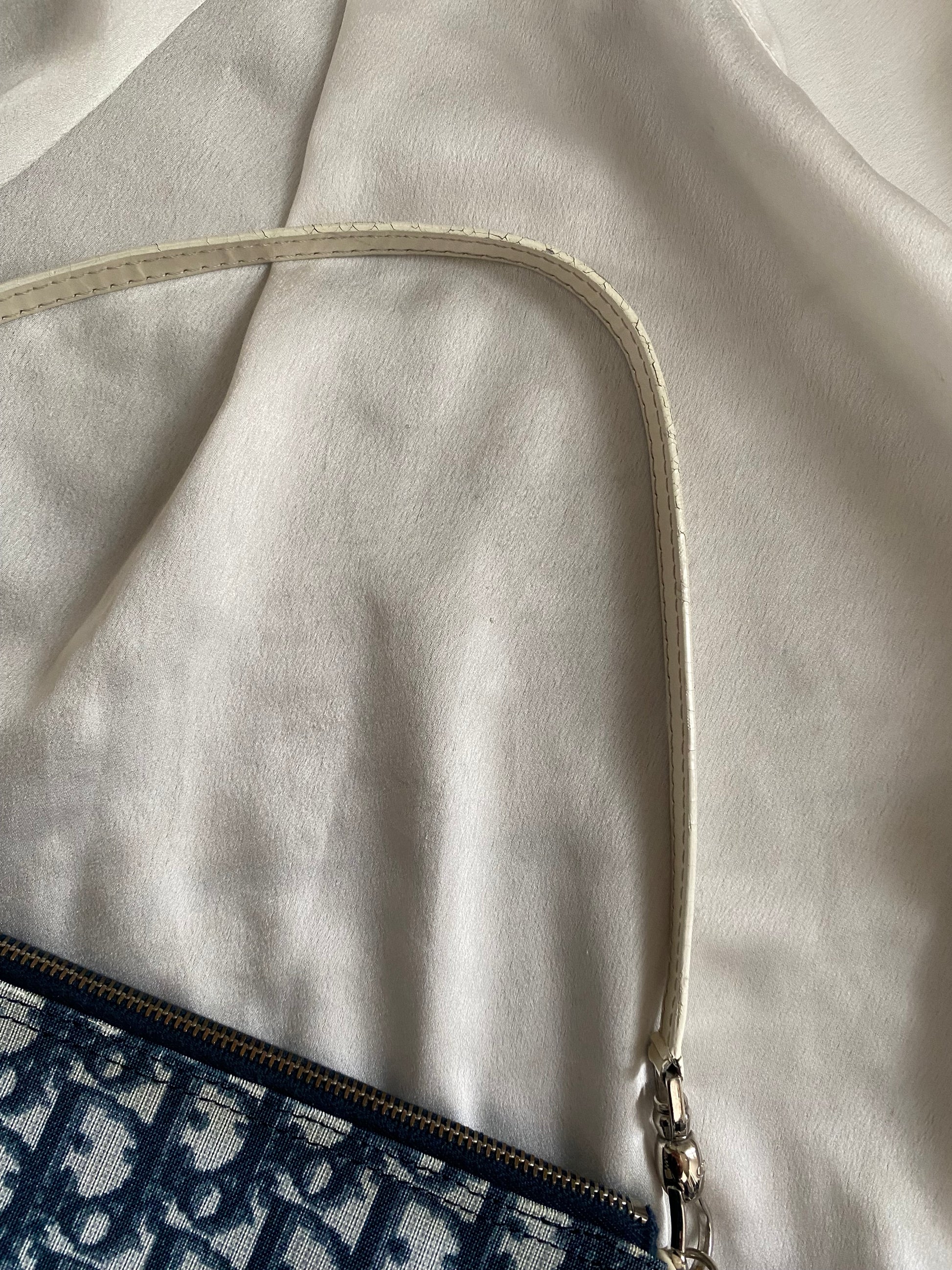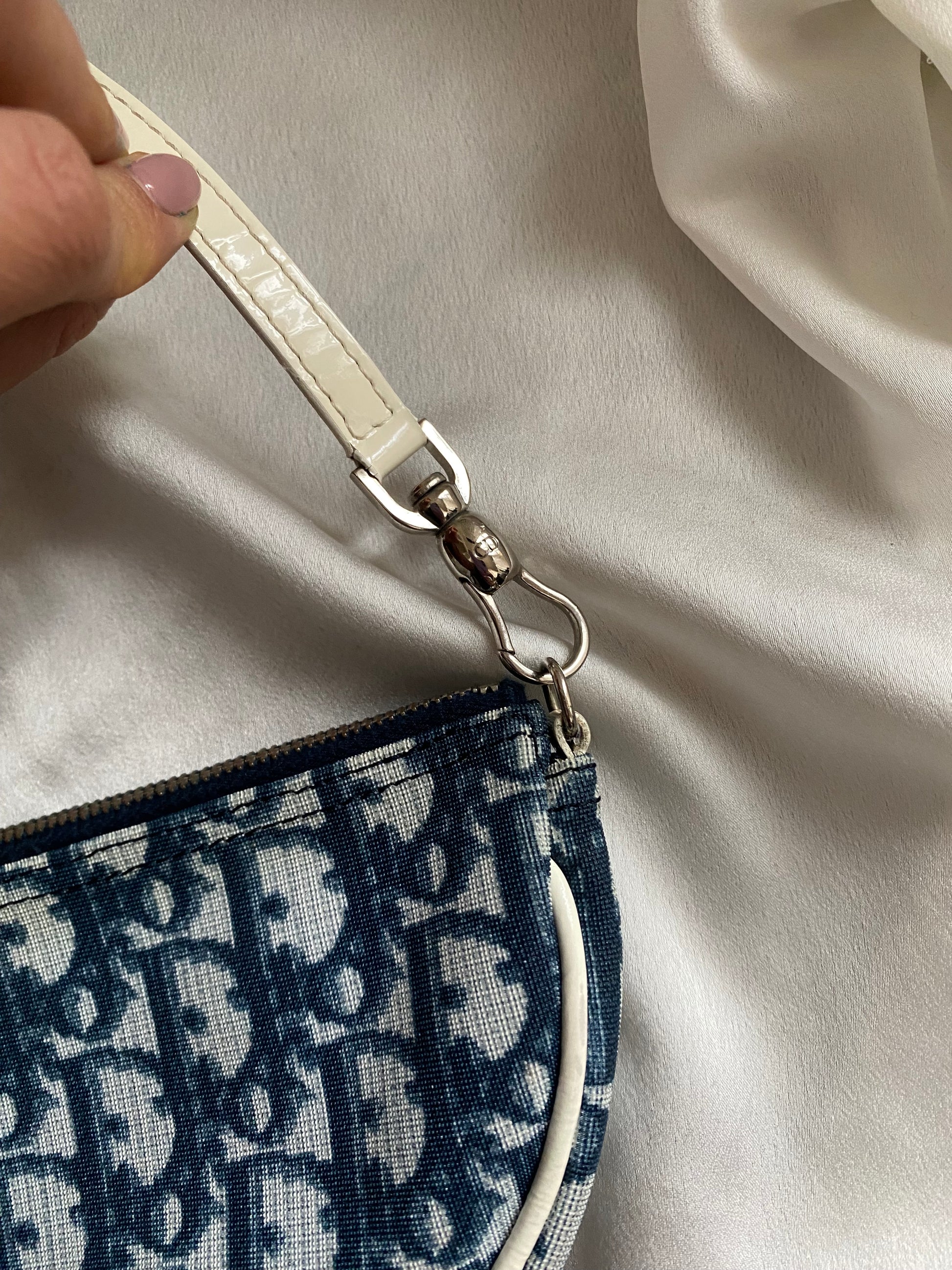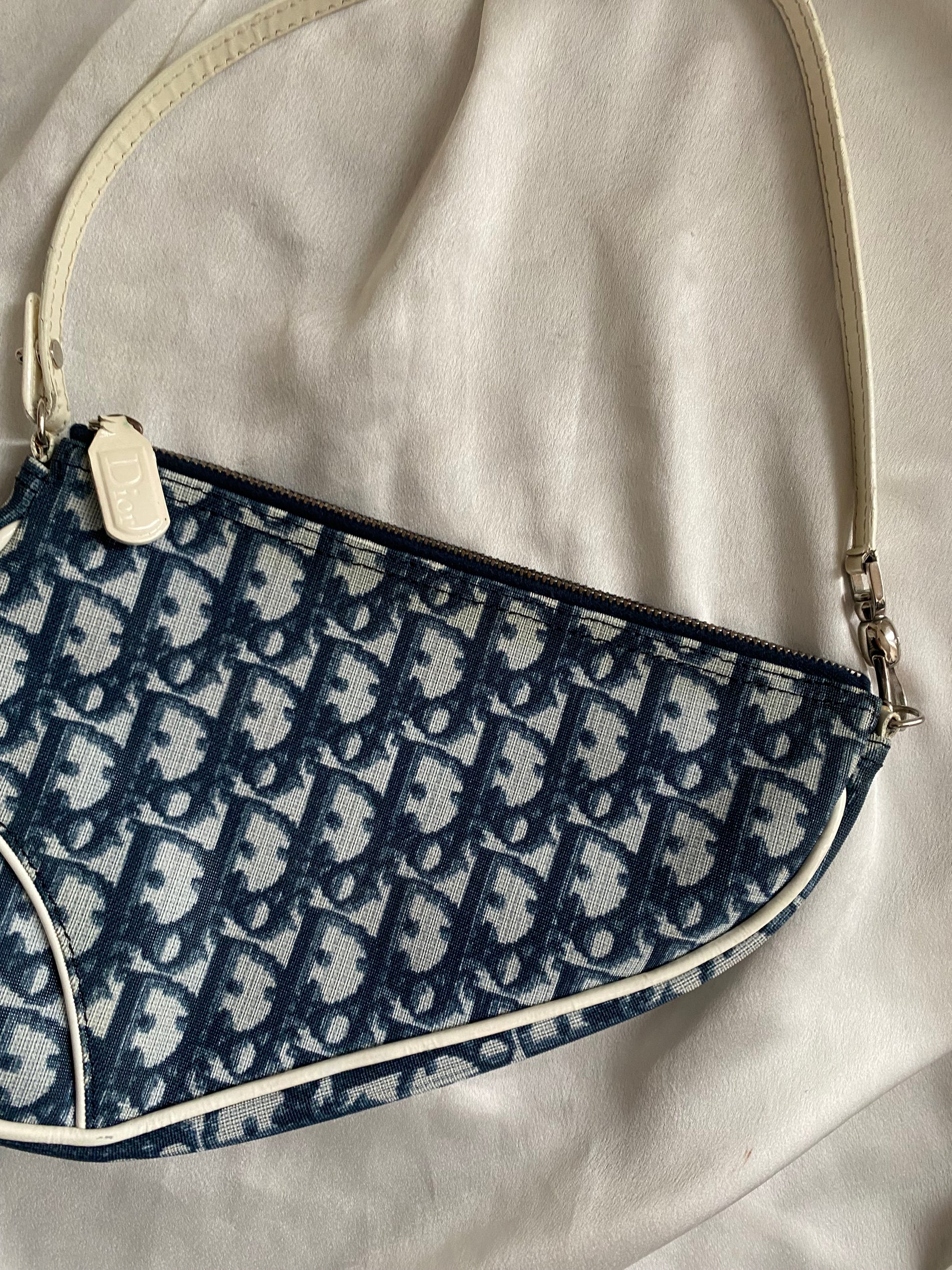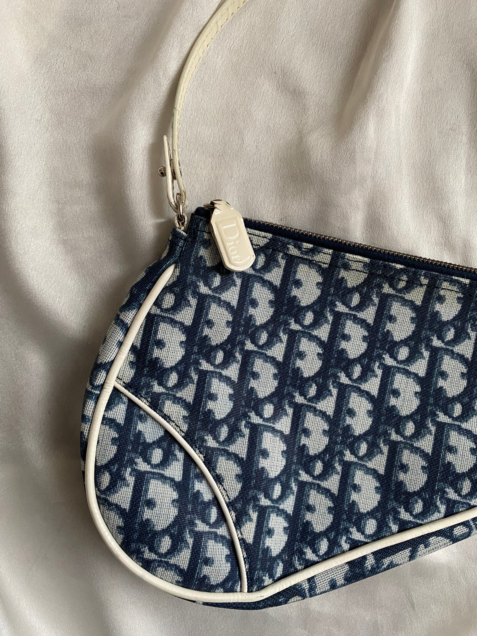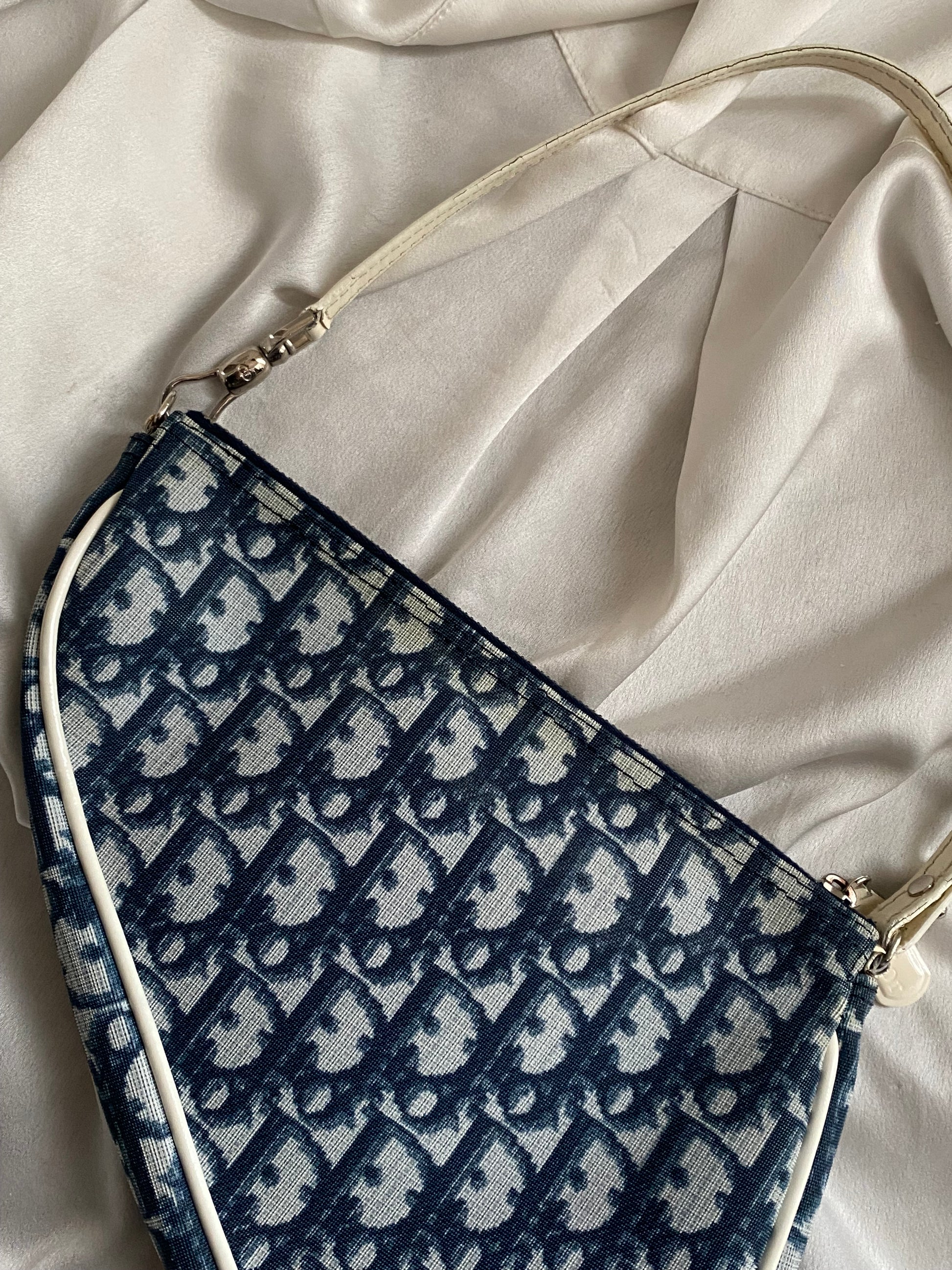 iconica dior mini saddle in monogram blu in buone condizioni.