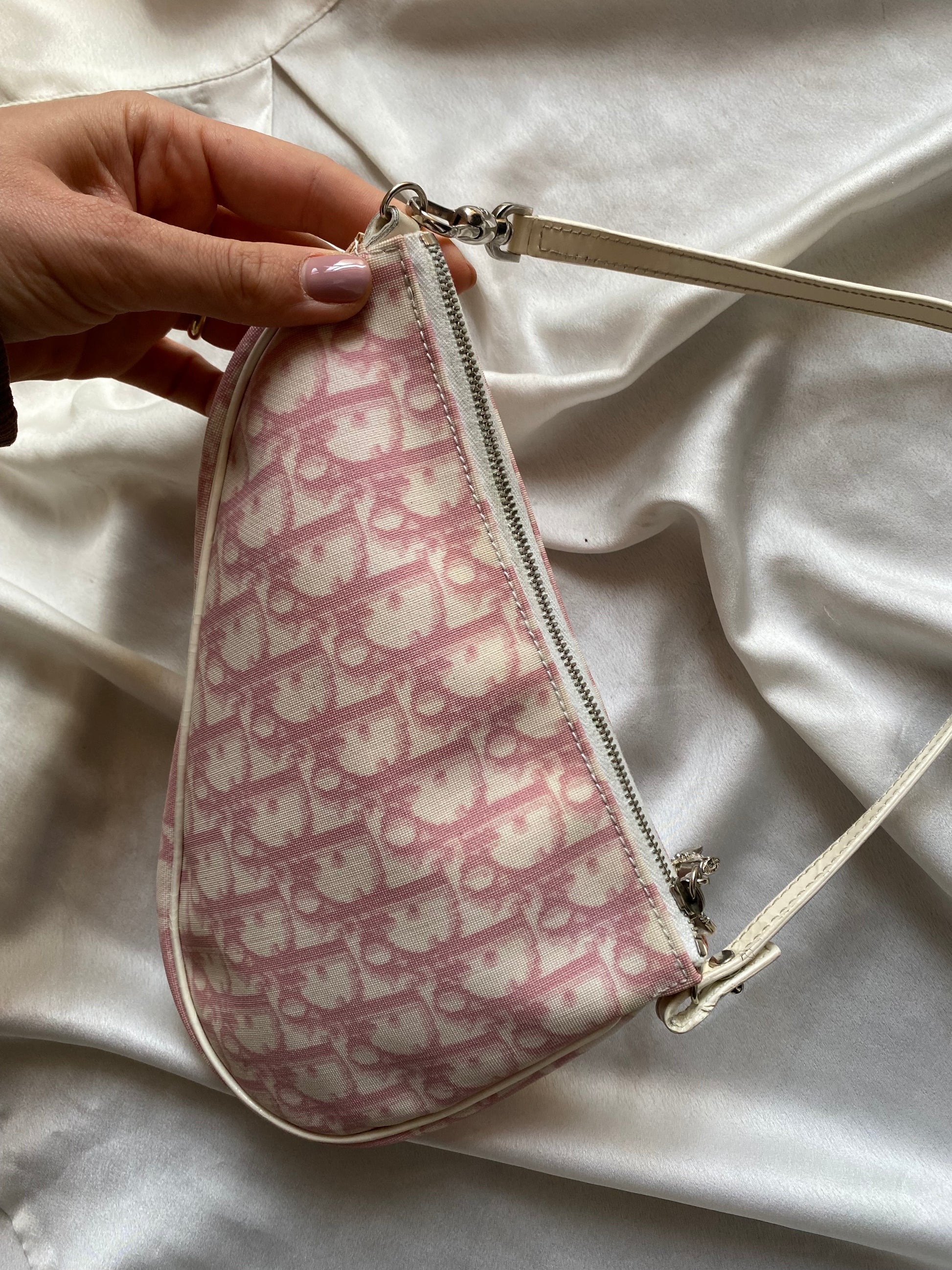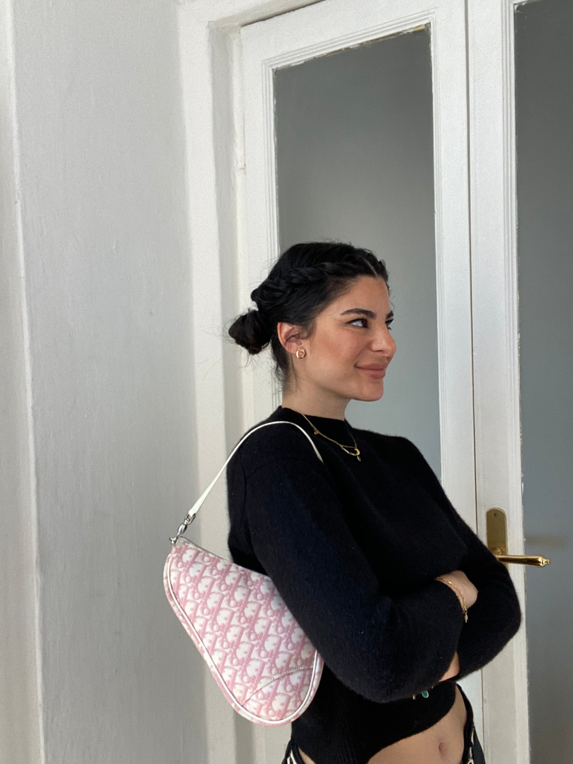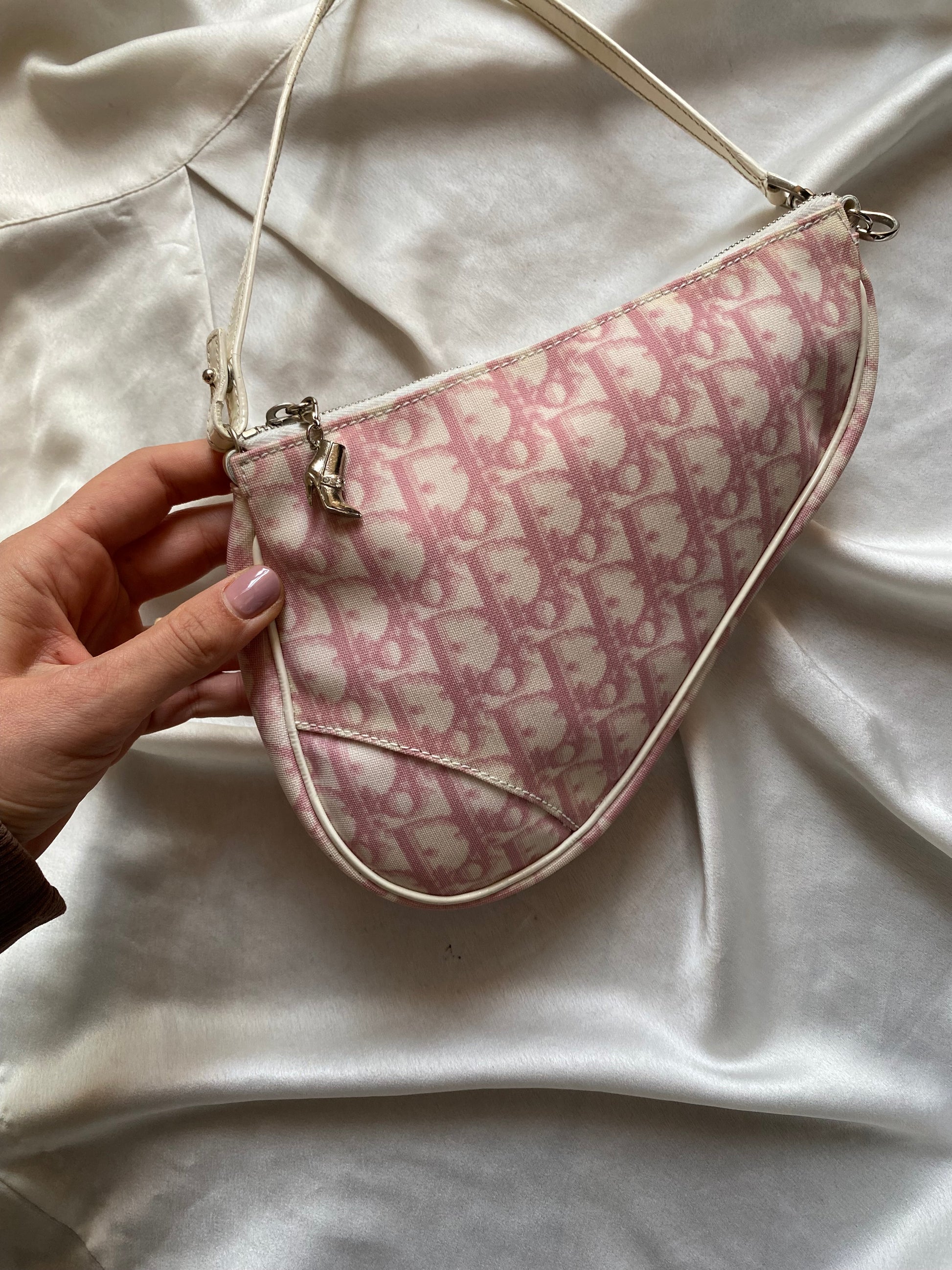 iconica dior mini saddle in monogram rosa in buonissime condizioni. Micro segni difficilmente visibili come da foto, cursore stupendo messo dalla precedente proprietaria, buonissime condizioni generali.