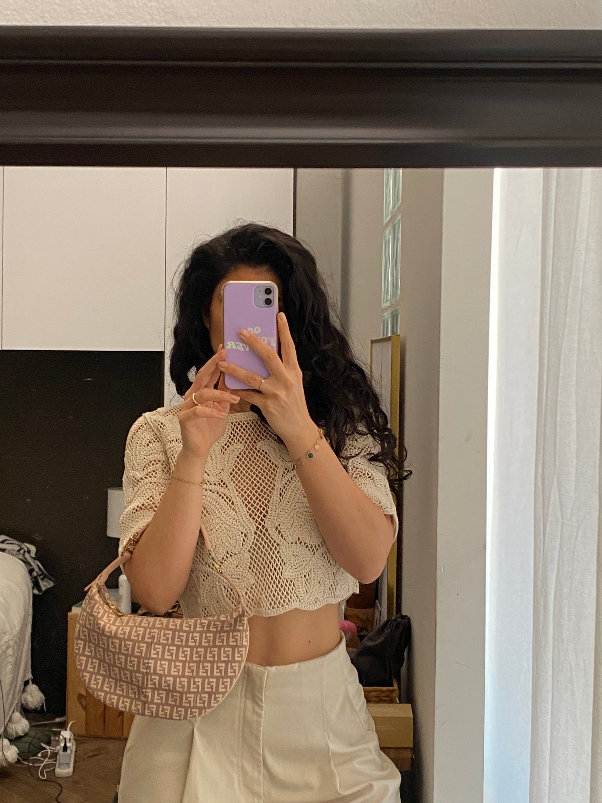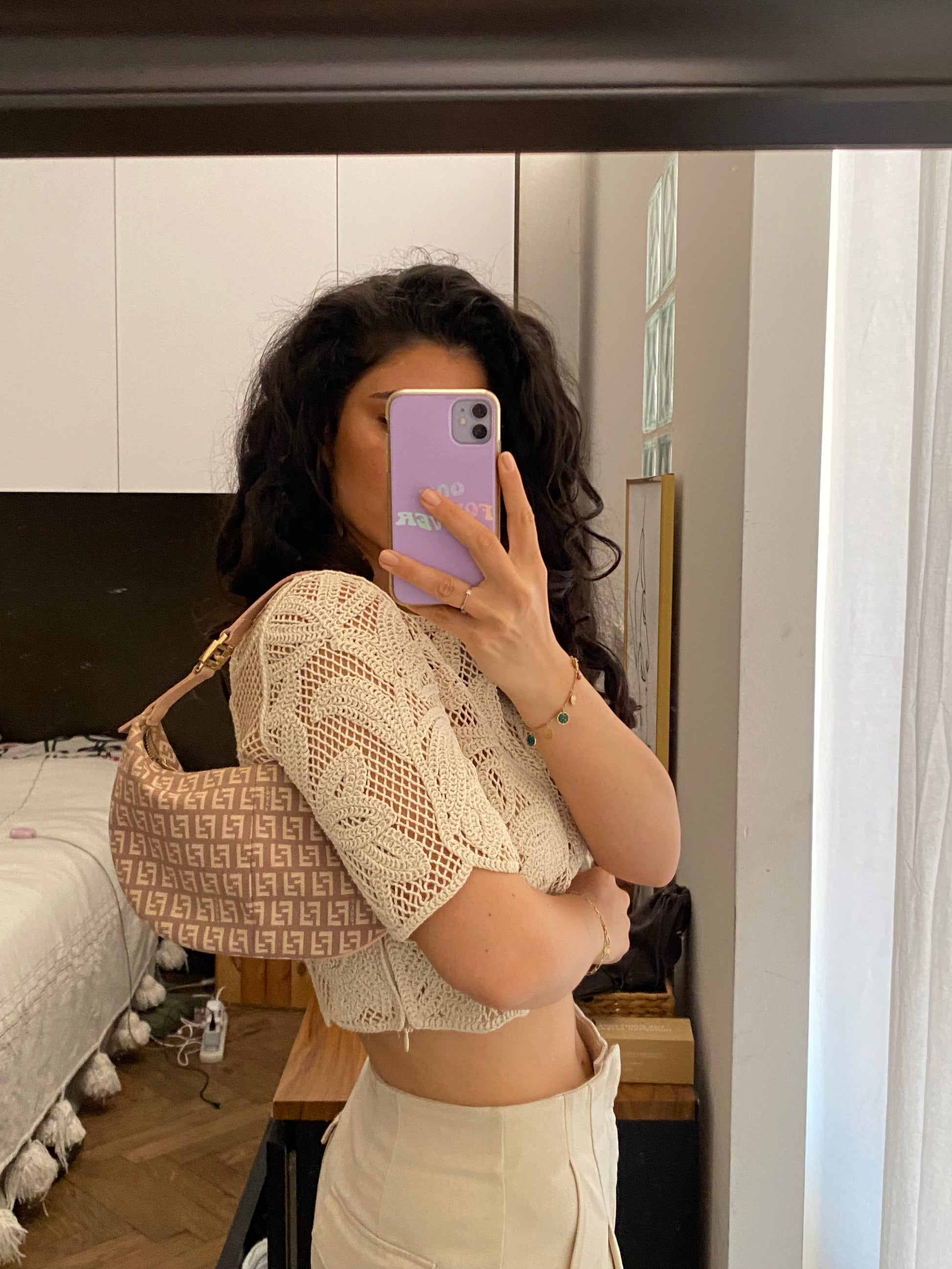 Bellissima fendi croissant misura media in monogram zucchino beige/nude. Micro segni sul bordo del manico e sull’hardware, ottime condizioni generali.