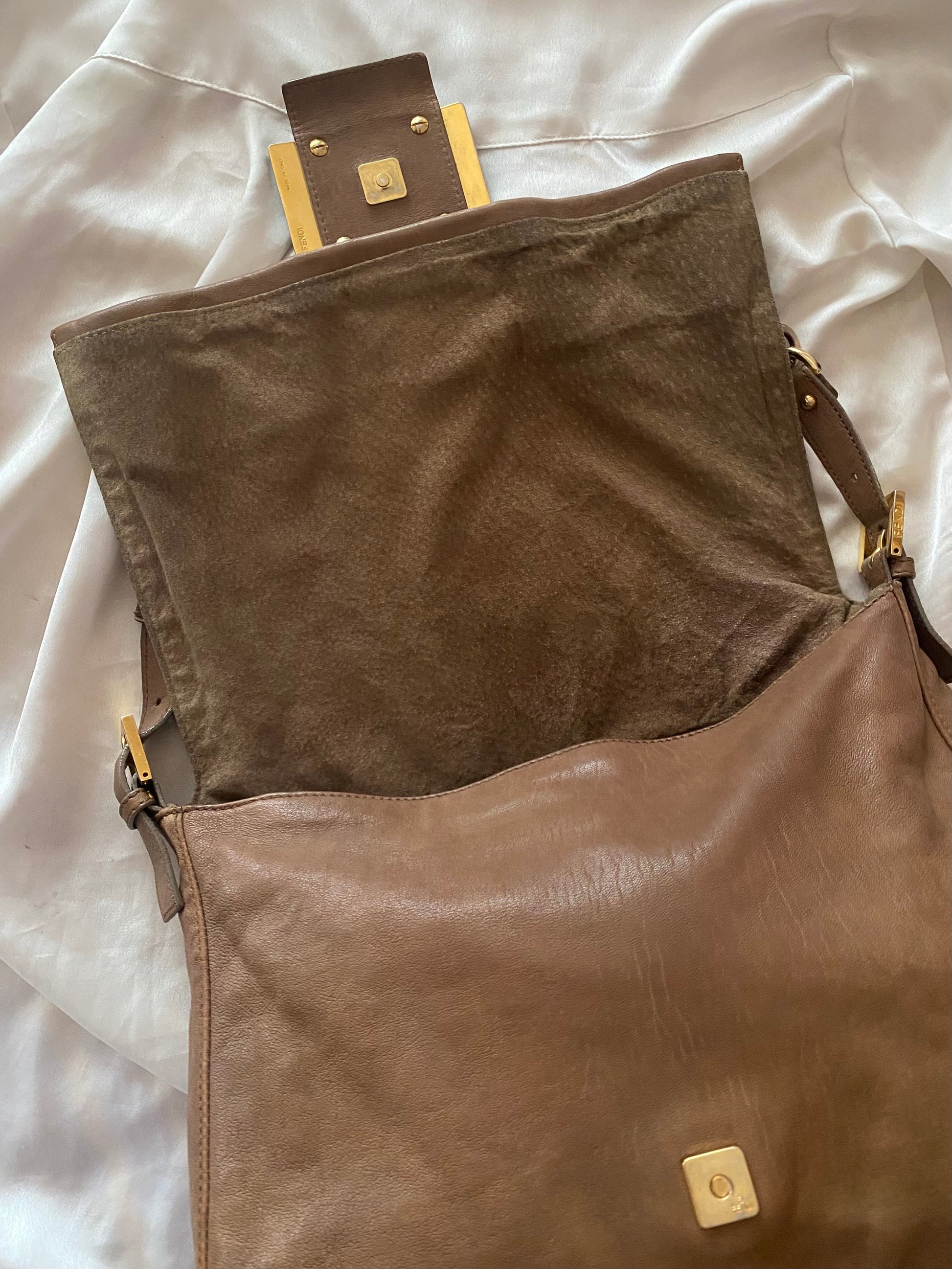 Iconica fendi mamma baguette marrone completamente in pelle. La pelle è morbidissima e lucida. Gli angoli sono perfetti. Usata con qualche segno su pelle, hardware e interno, buonissime condizioni generali.
