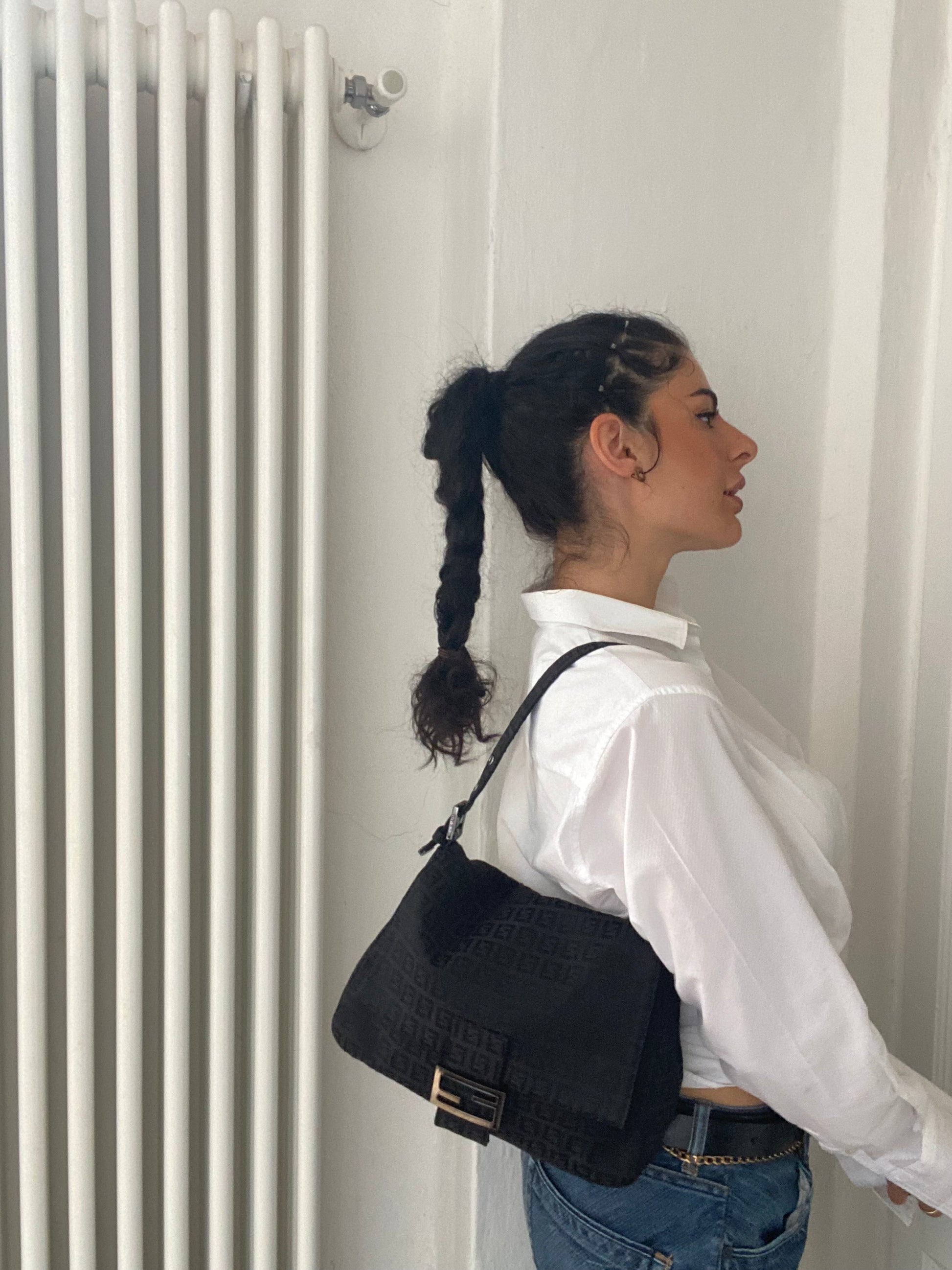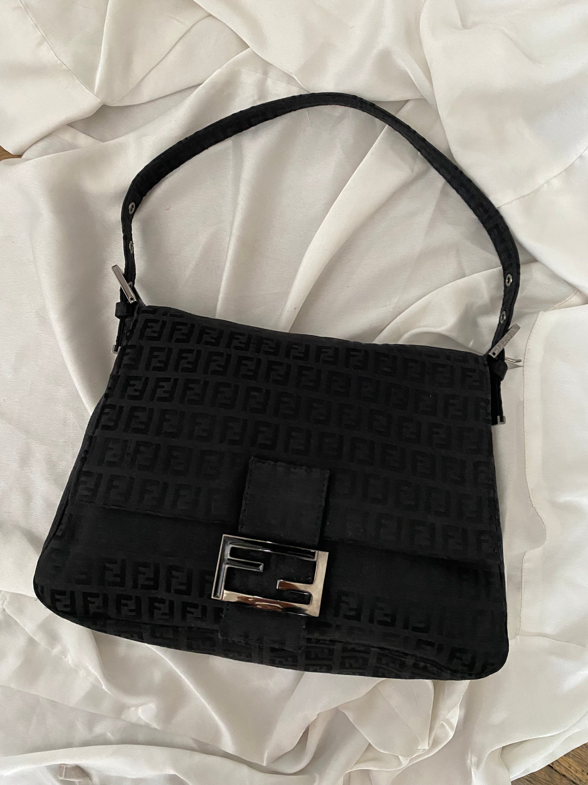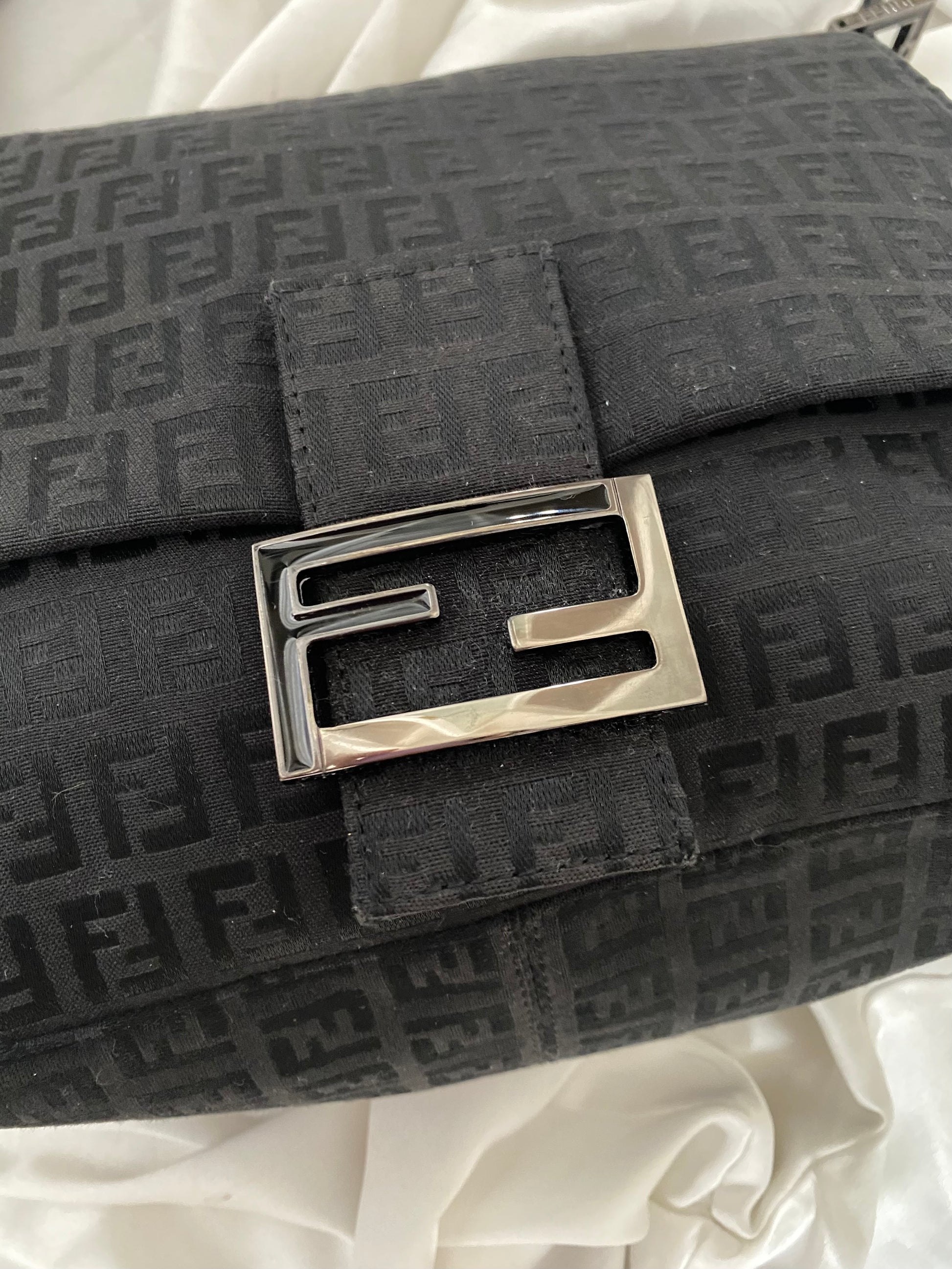 Stupenda Fendi mamma baguette in monogram zucchino nero. Leggerissimi segni sull’hardware, ottime condizioni generali.