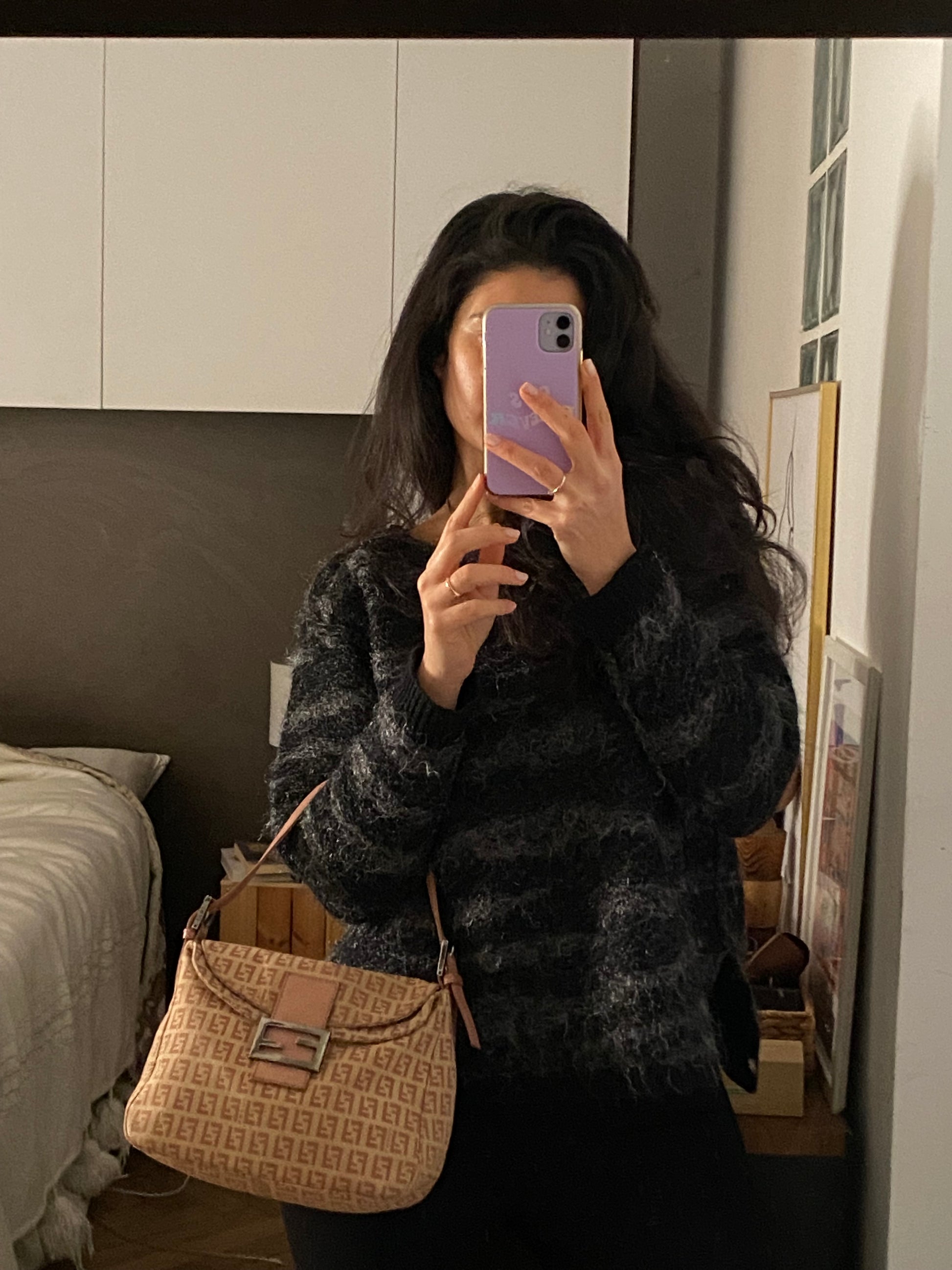 Rarissima fendi mamma double flap in monogram zucchino rosa e beige. Micro segno sul retro e sull’hardware. Buone condizioni generali.