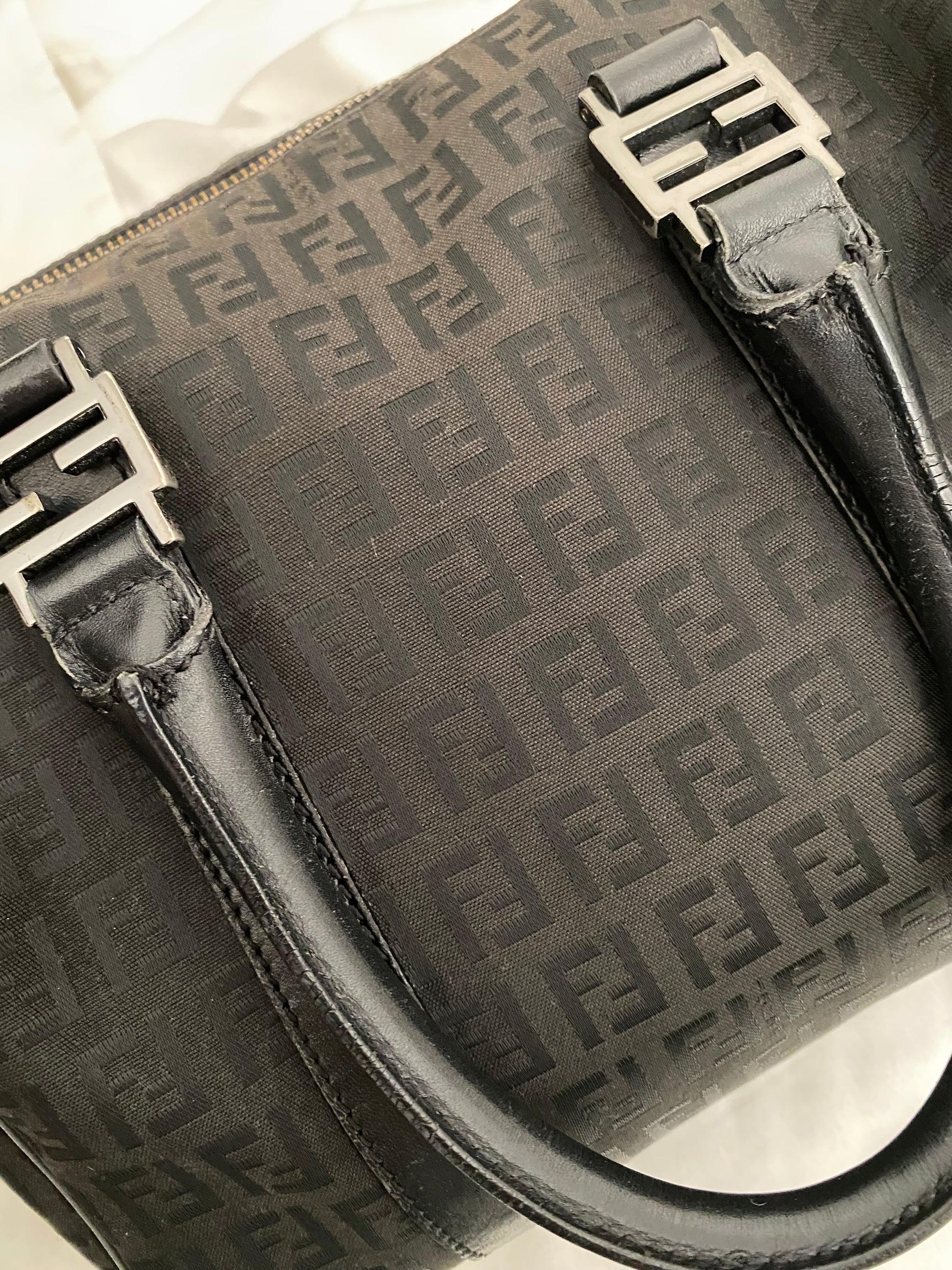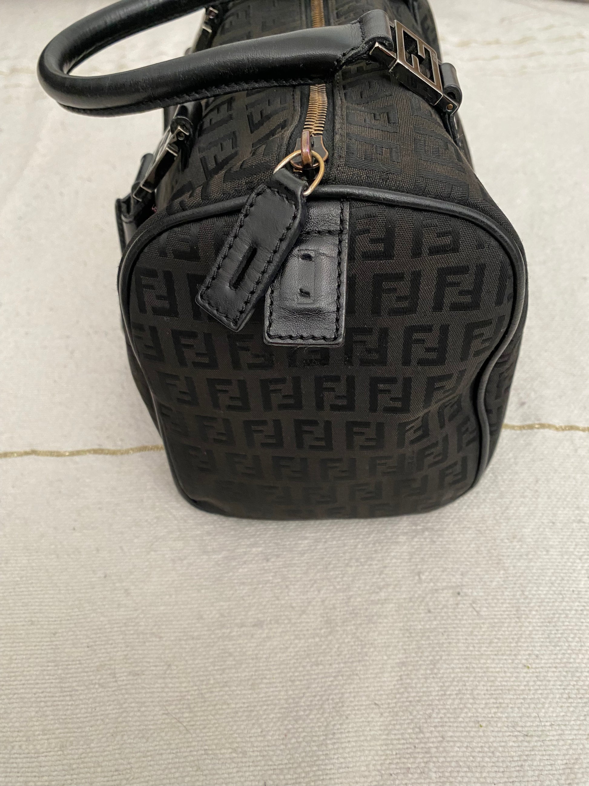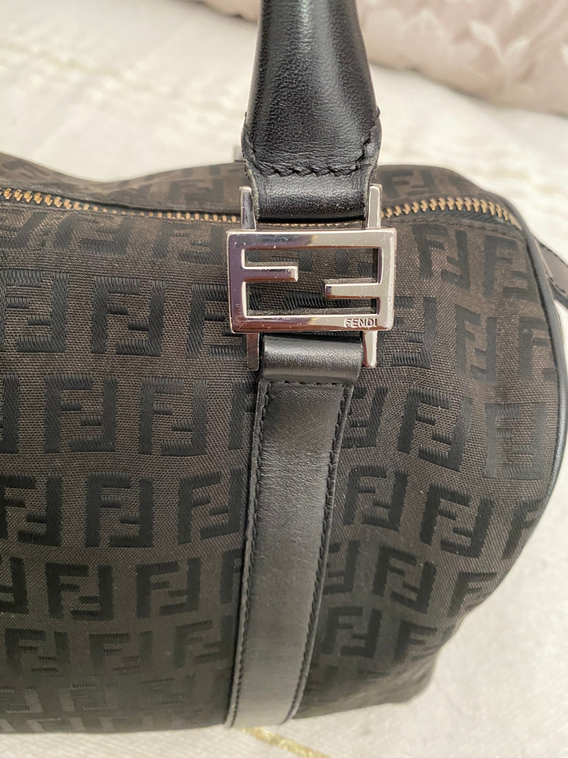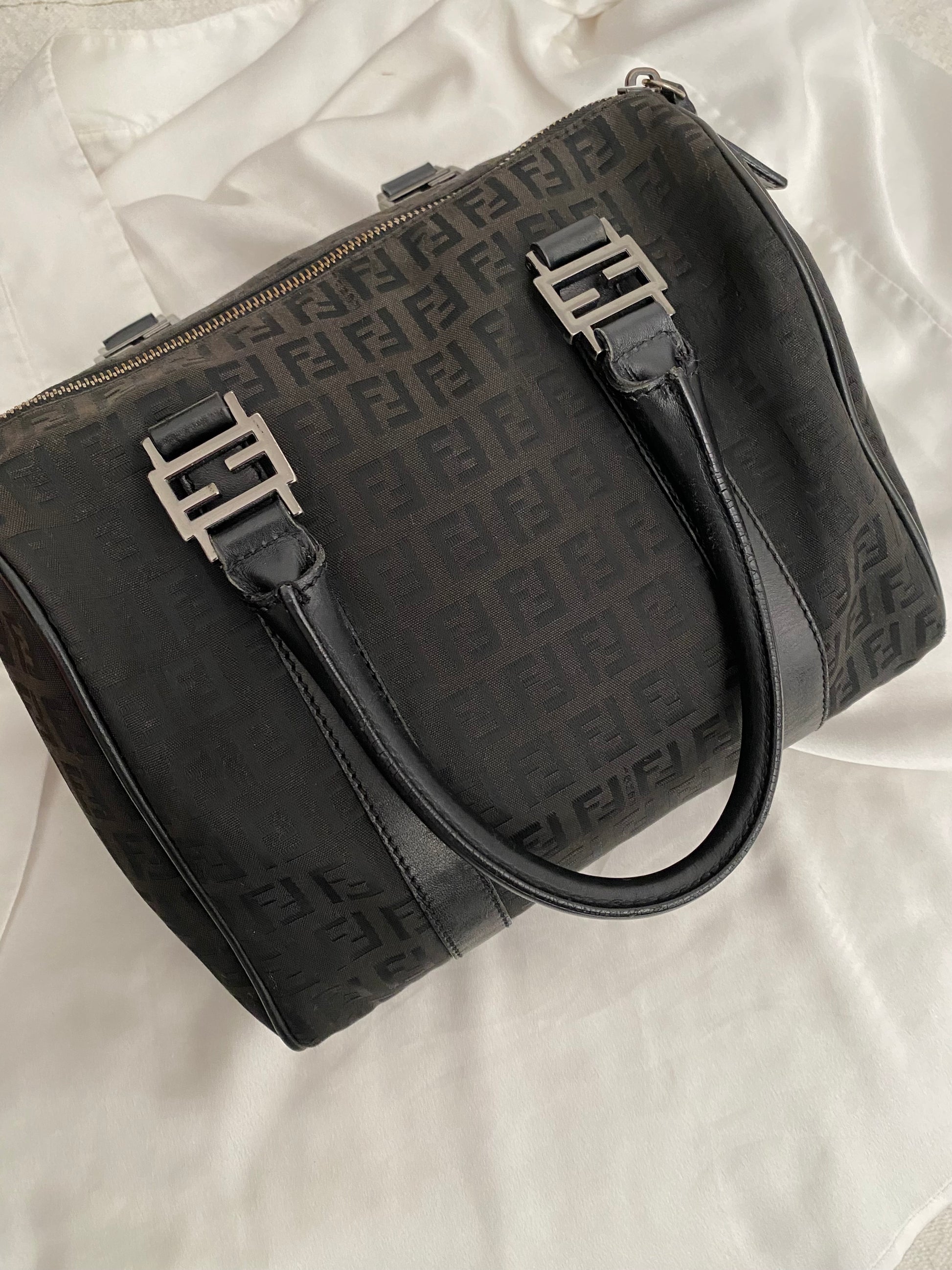 Fendi zucchino vitello small boston in buonissime condizioni. Tela e angoli perfetti, qualche macchiolina interna e lievi segni sull’hardware.