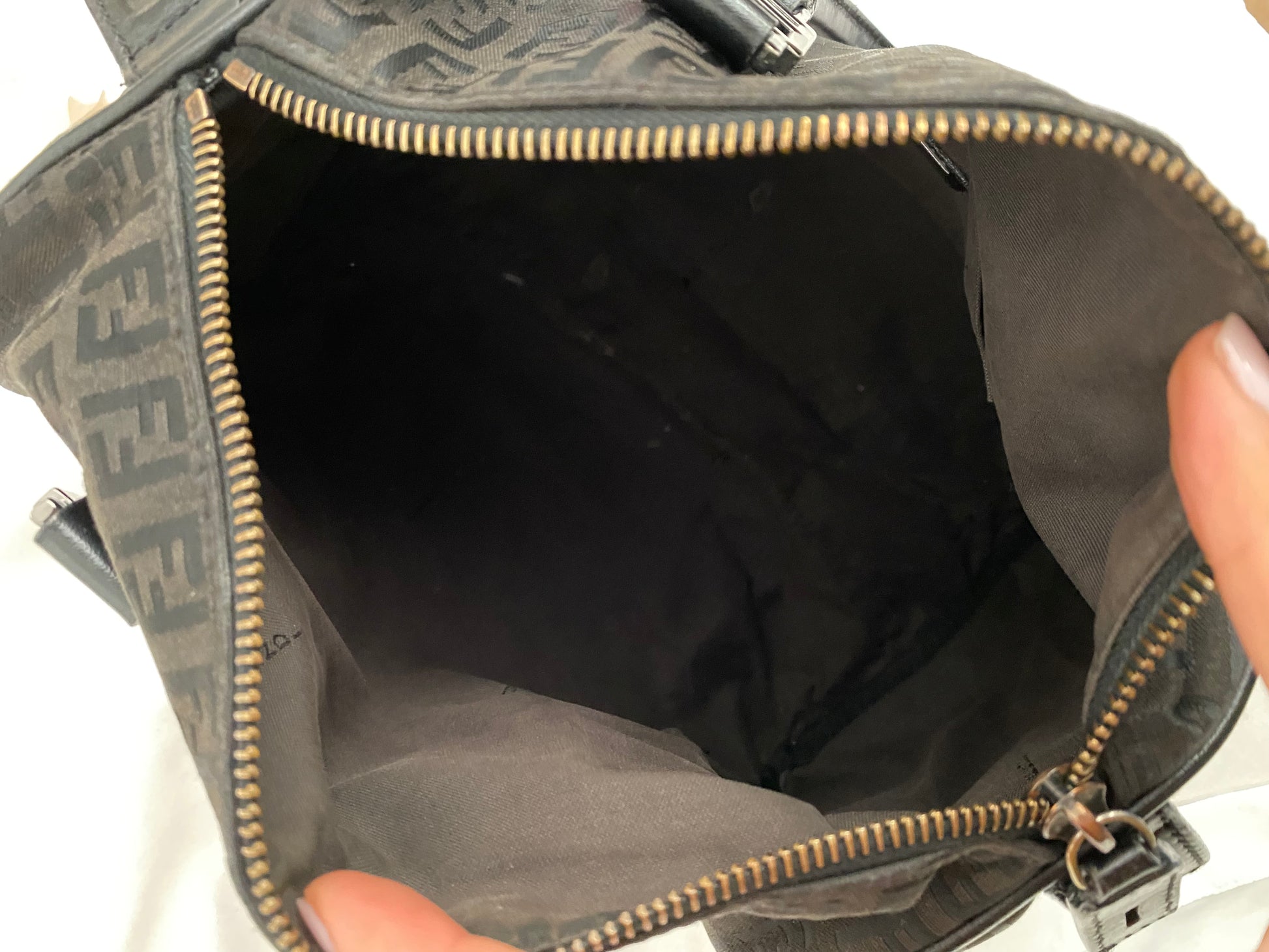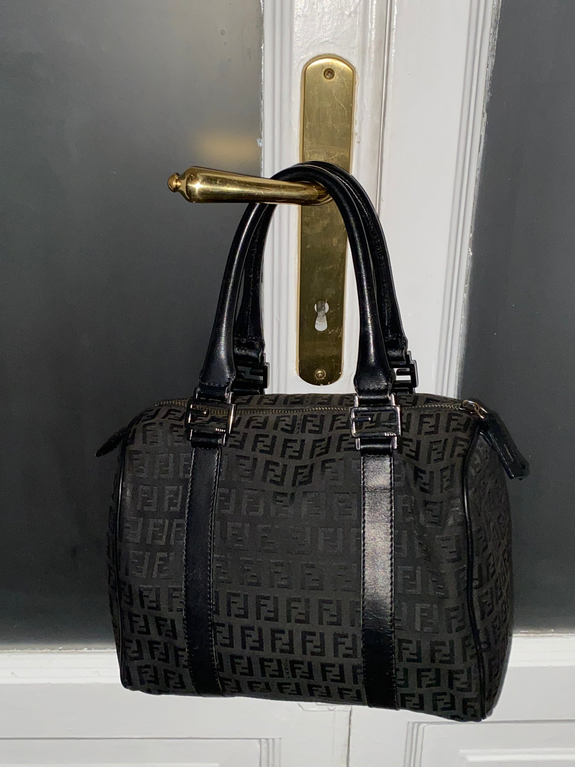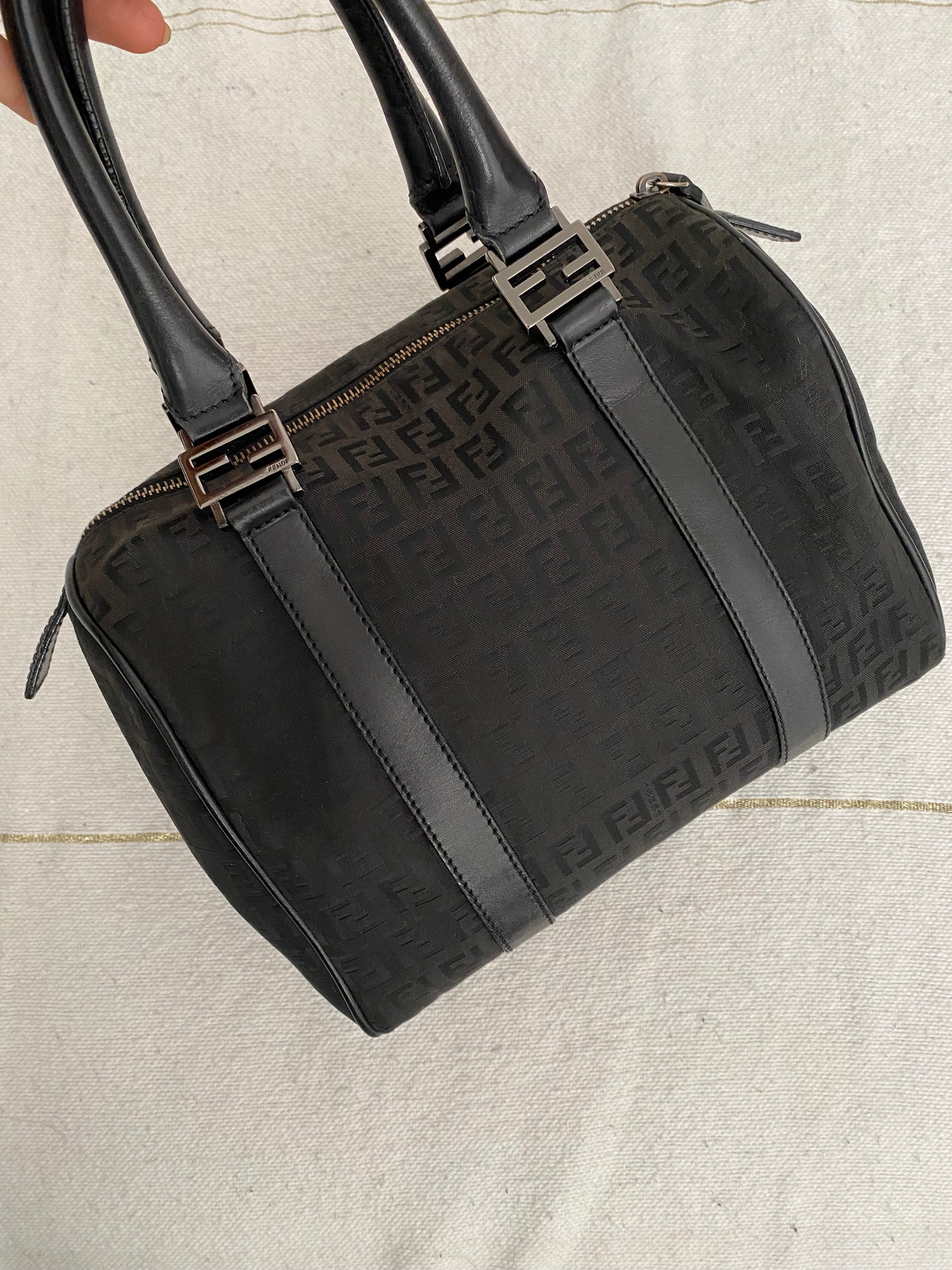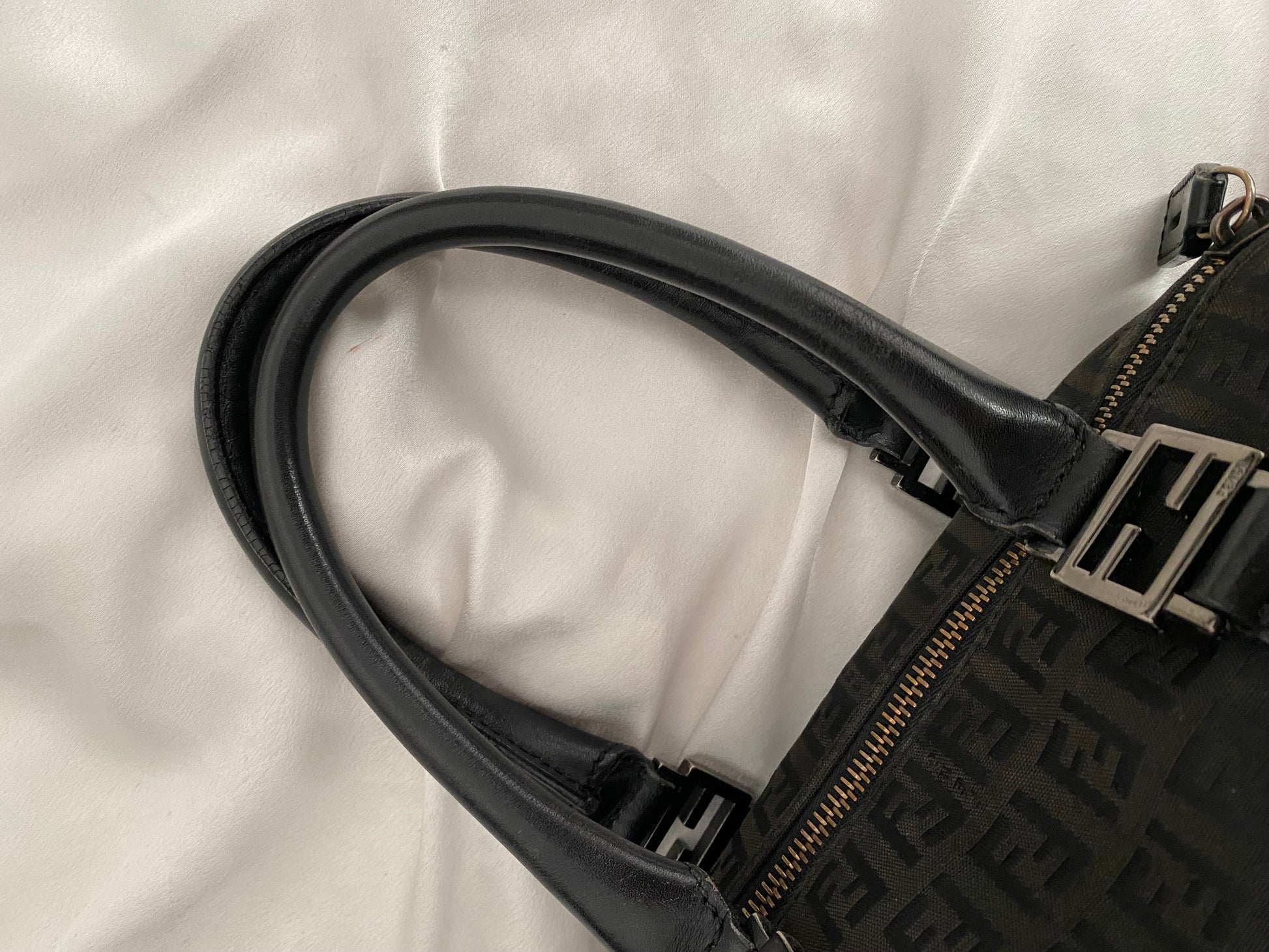 Fendi zucchino vitello small boston in buonissime condizioni. Tela e angoli perfetti, qualche macchiolina interna e lievi segni sull’hardware.