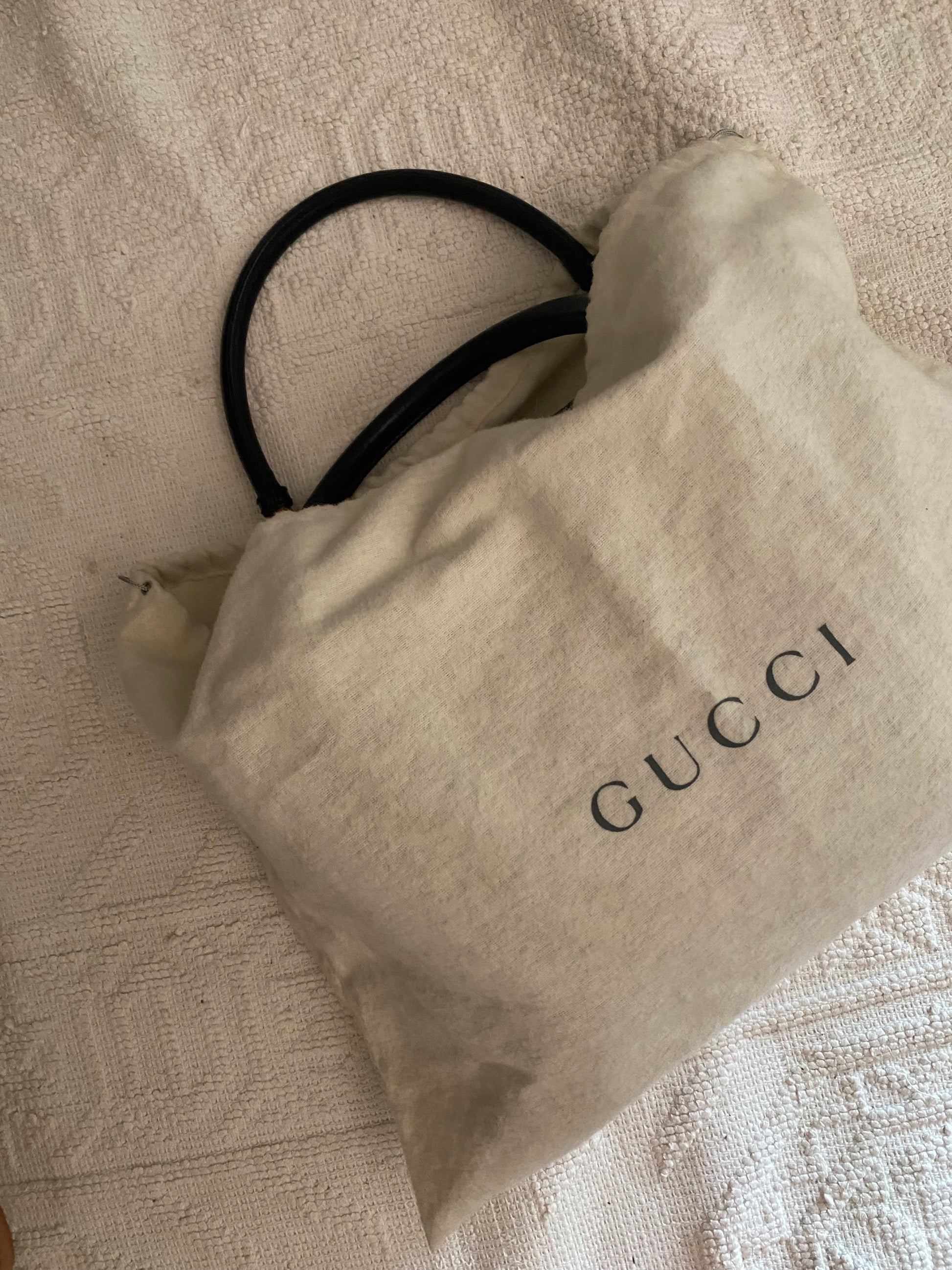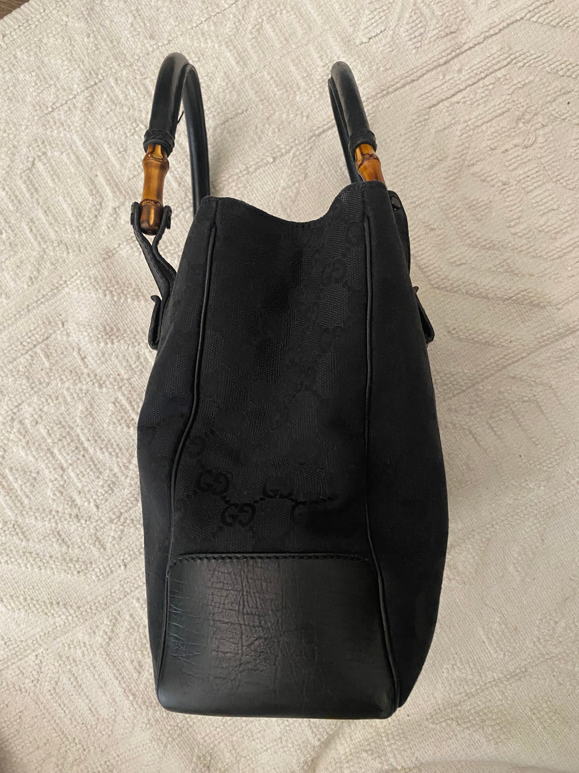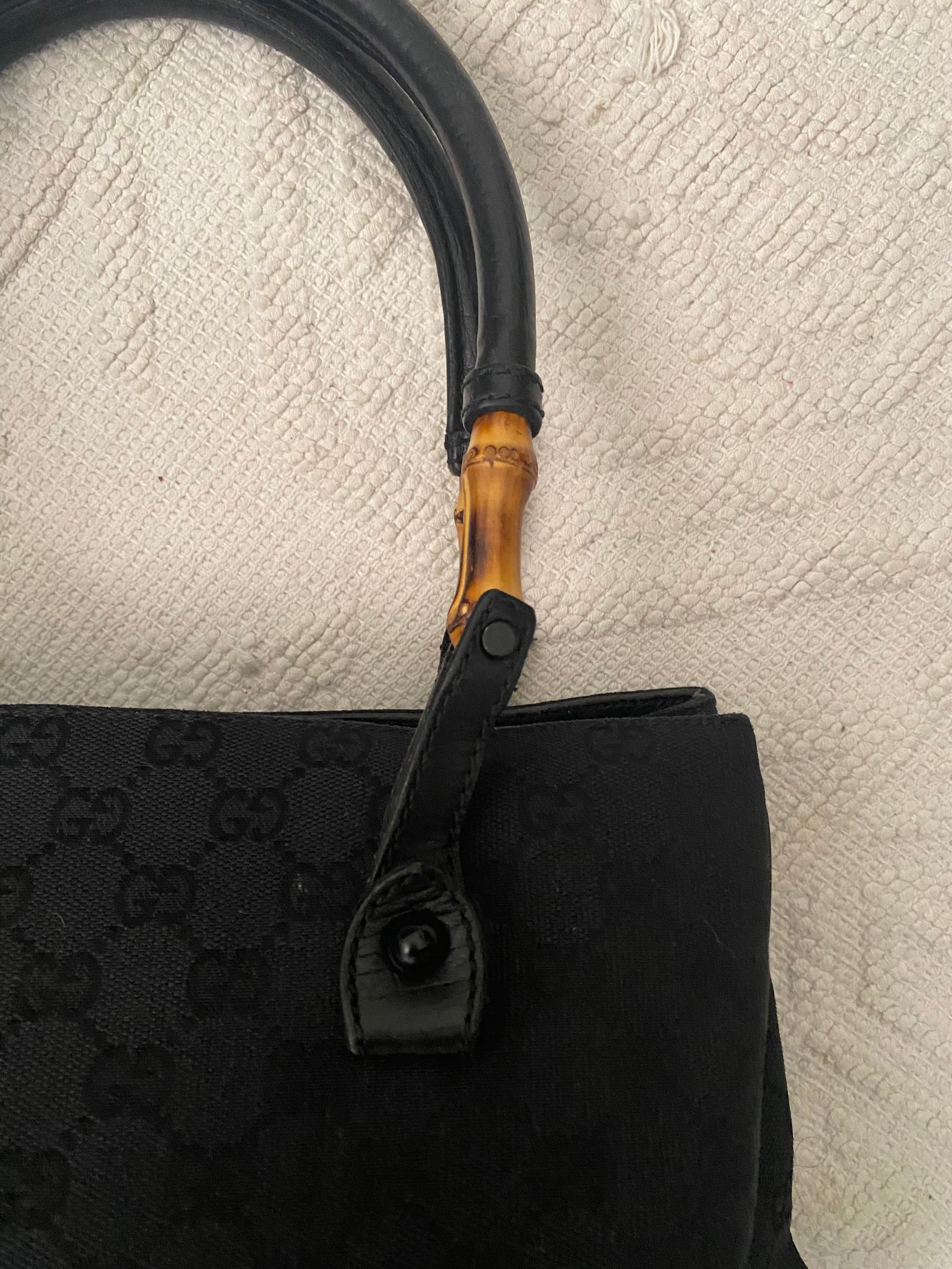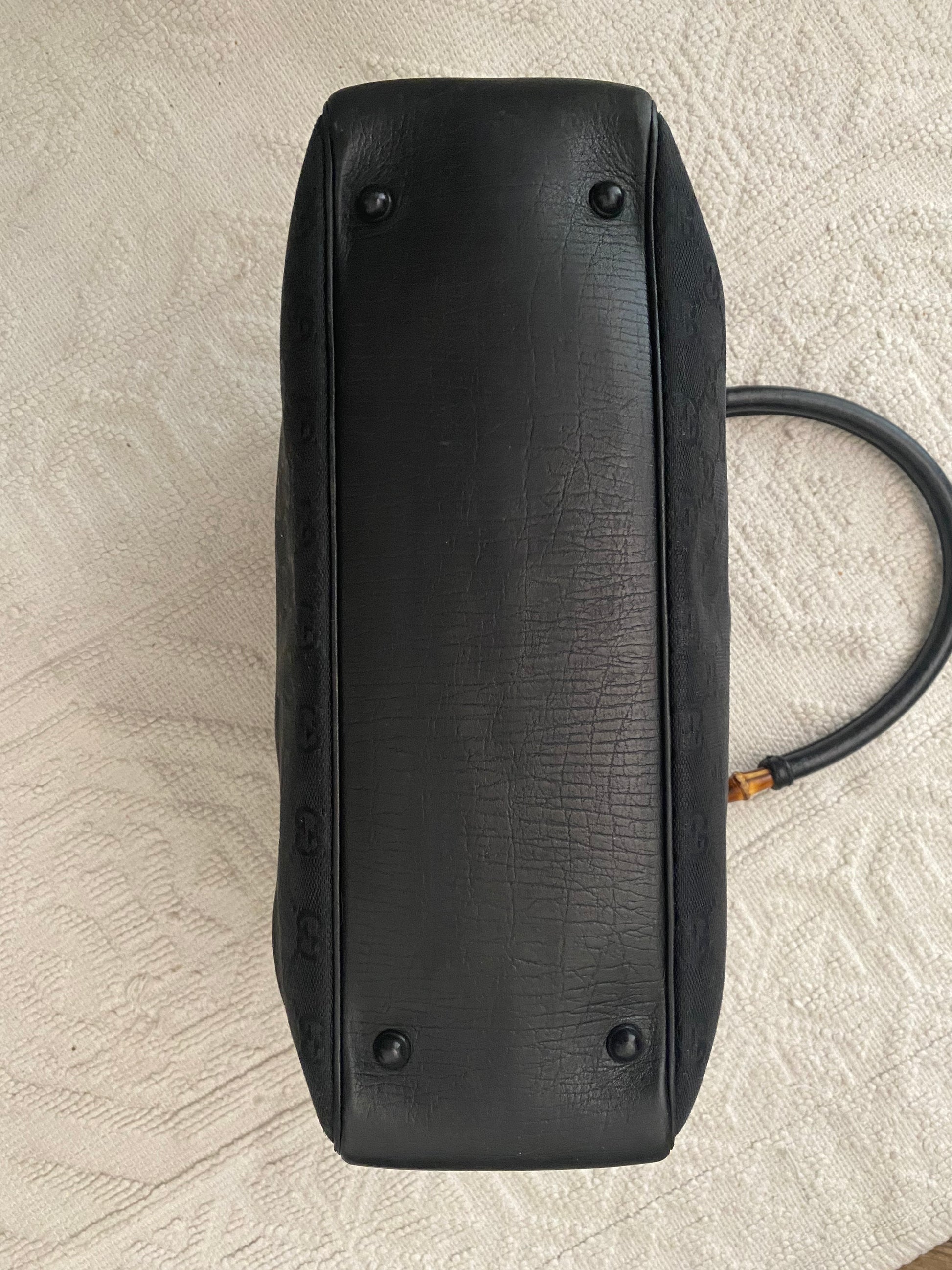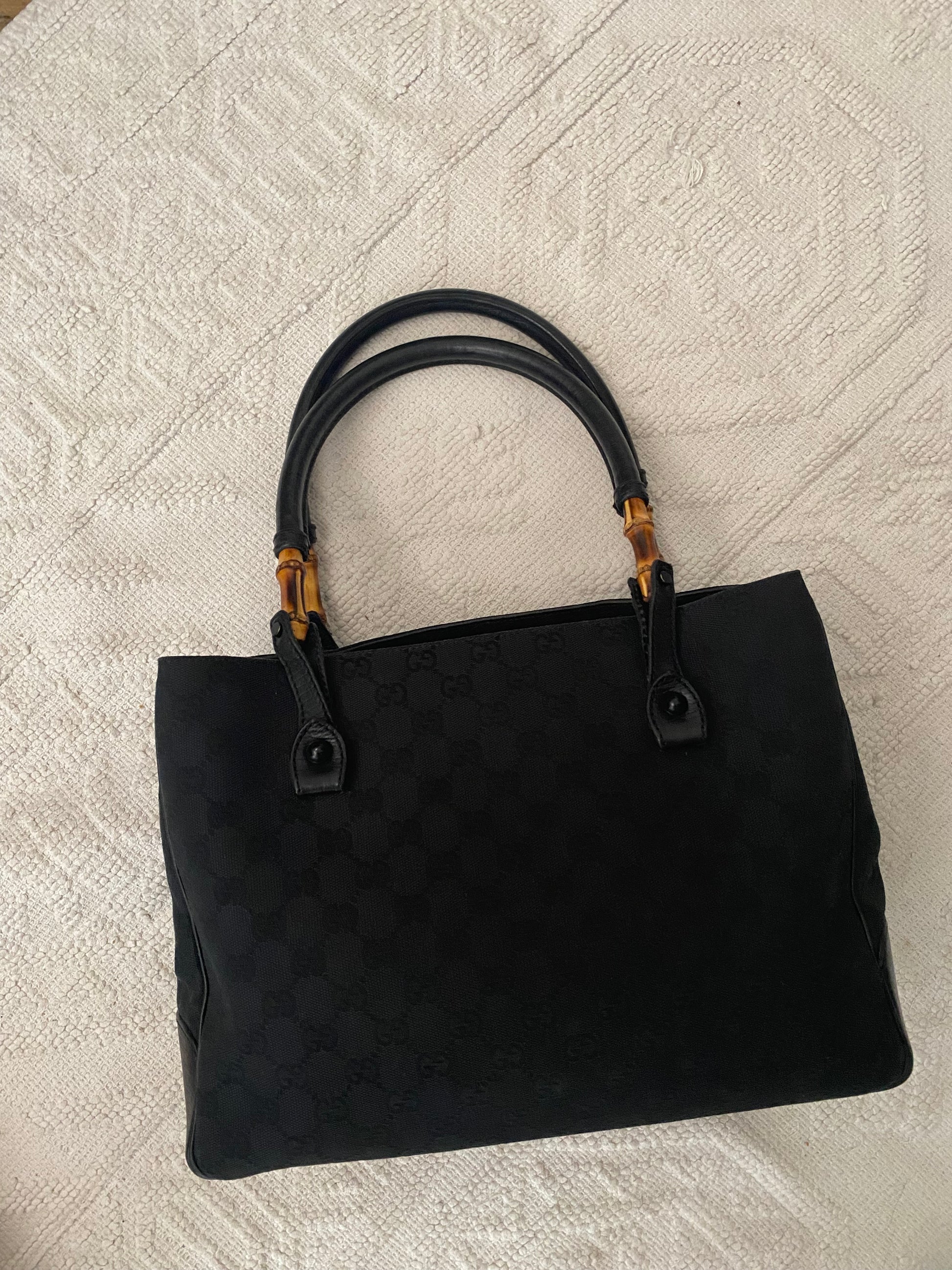Stupenda Gucci Bamboo tote in Monogram nero con profili in pelle. 3 tasche interne. Qualche leggerissimo segno sui manici, per il resto immacolata. È la perfetta borsa da tutti i giorni! Condizioni ottime, viene venduta con la sua dustbag.