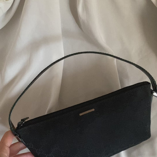 Gucci boat baguette in monogram nera e hardware argento. in ottime condizioni. Davvero un’icona!