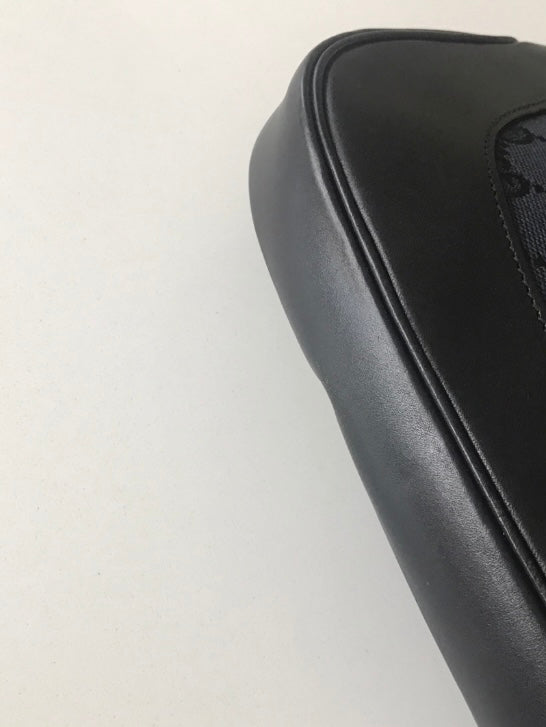 Gucci jackie monogram nero e hardware oro. Minimi segni sull’hardware e sul manico, ottime condizioni generali.