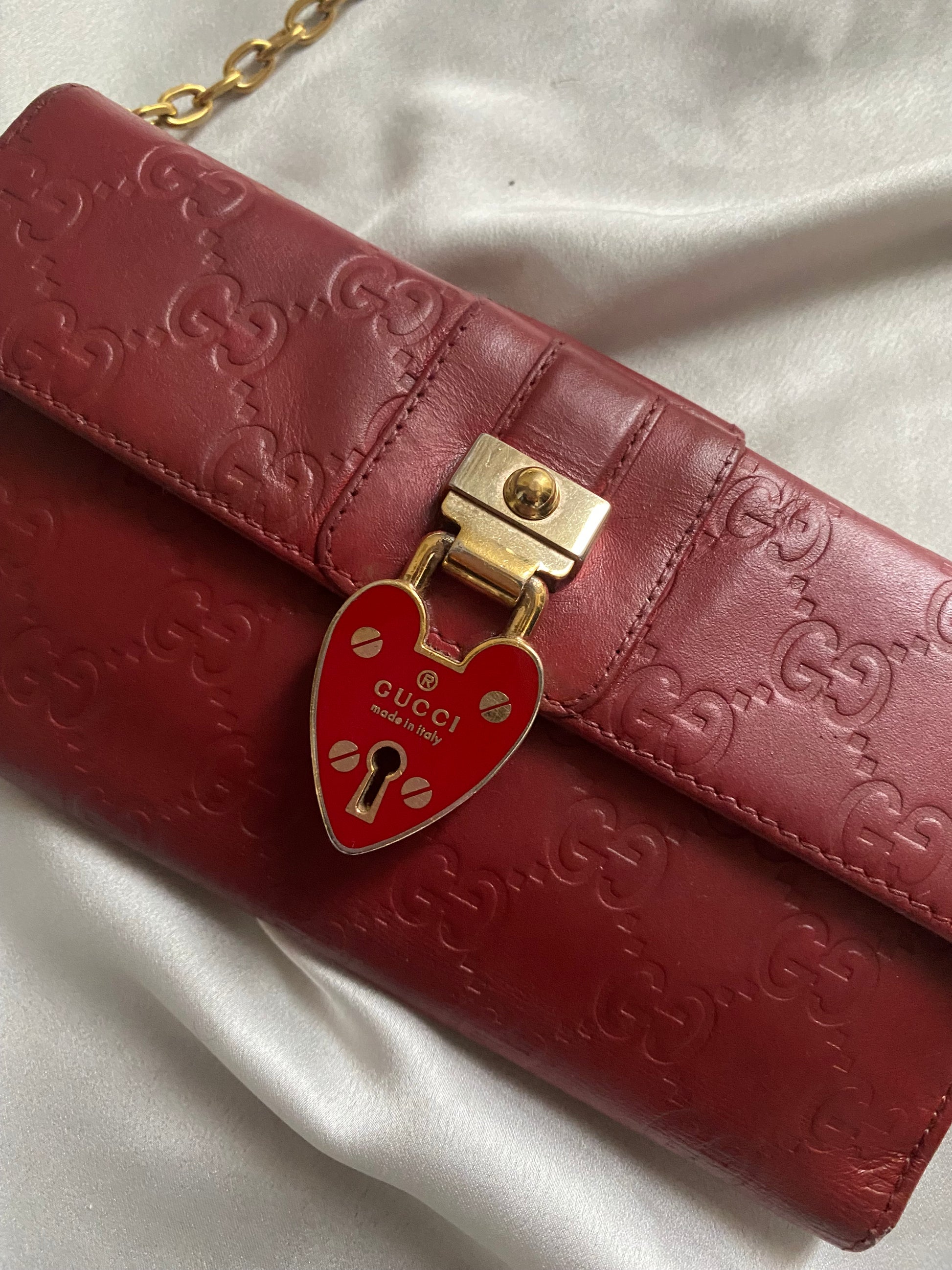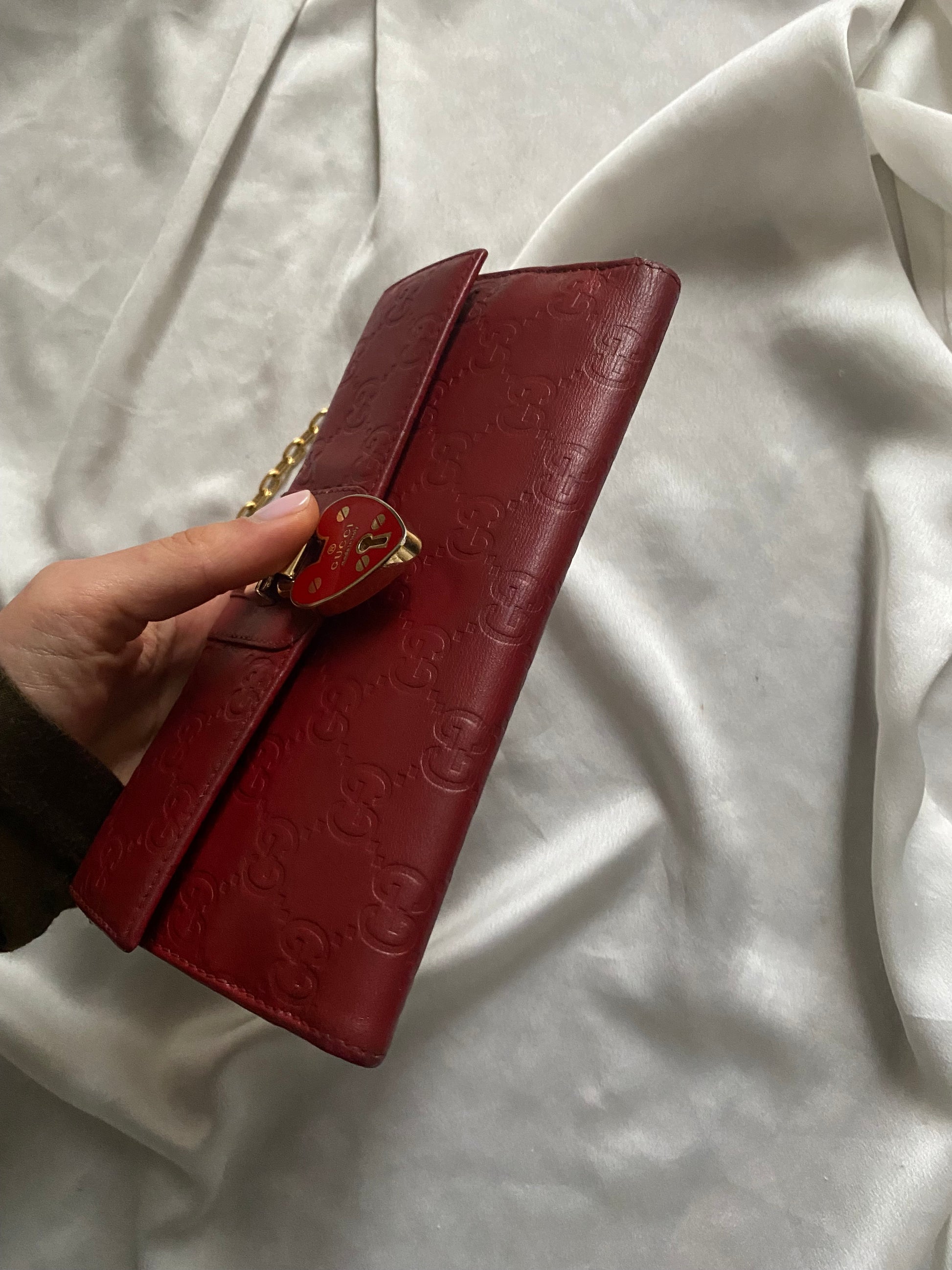 Gucci love lock portafoglio/pochette rossa in pelle🍒