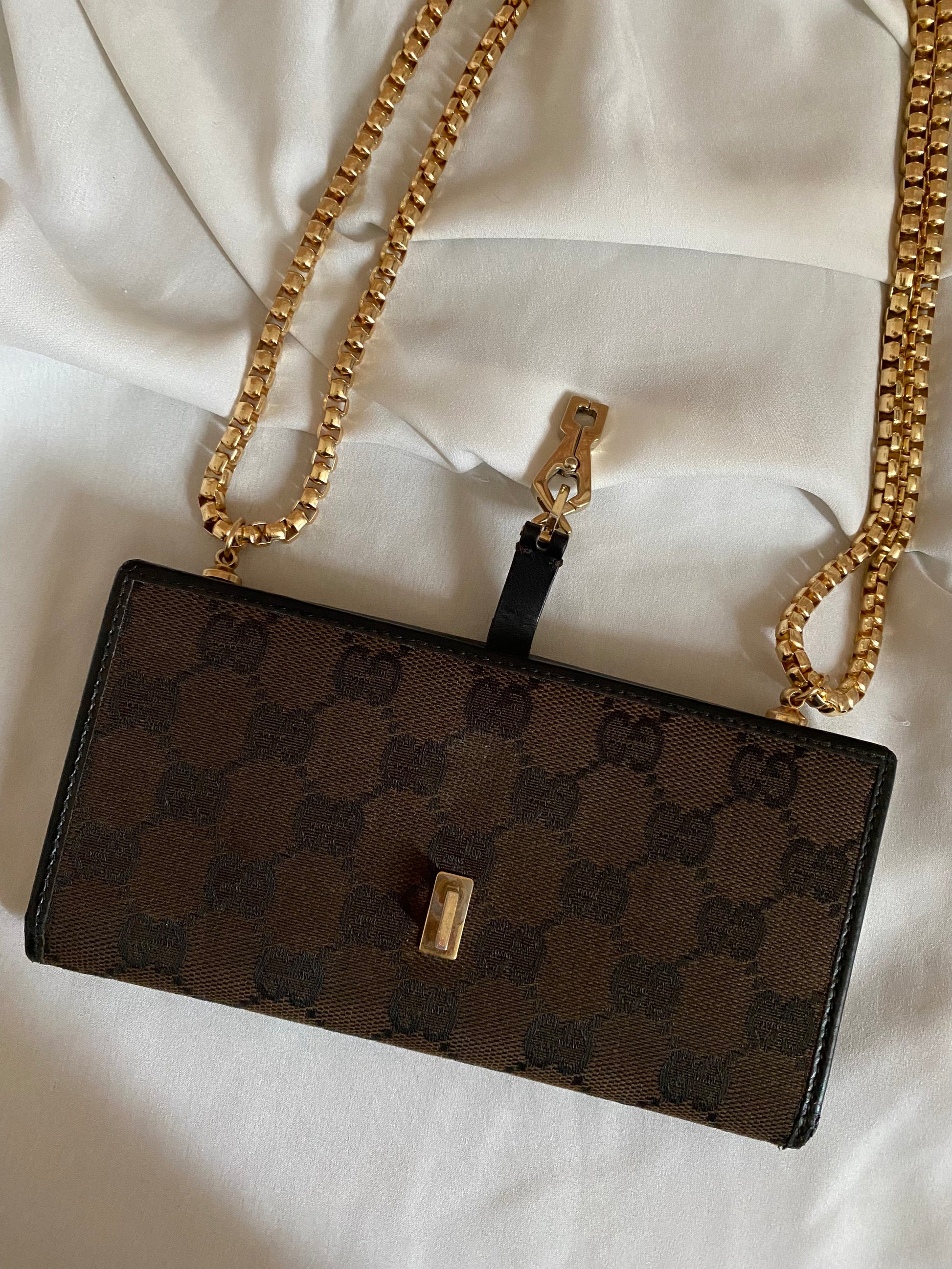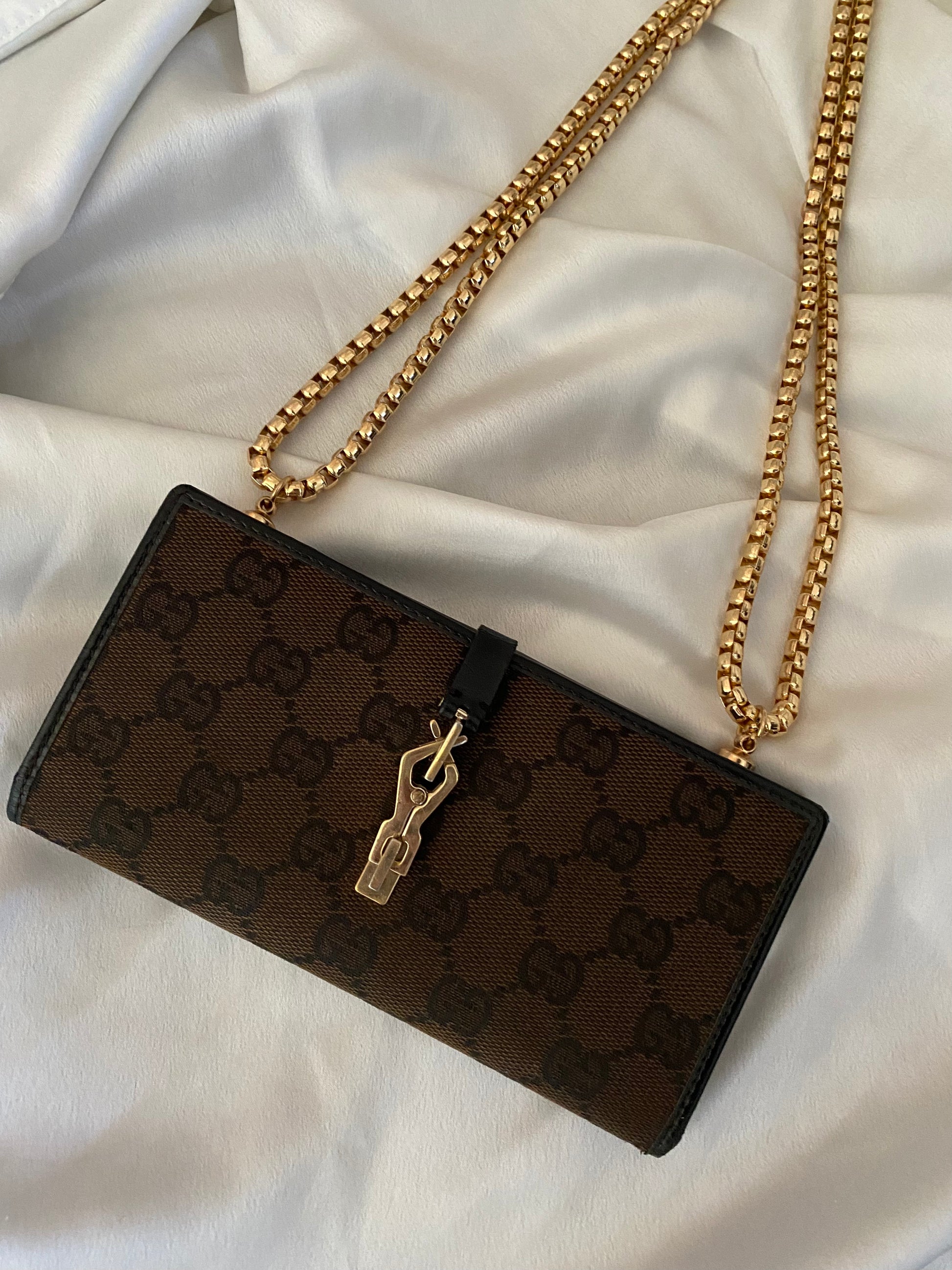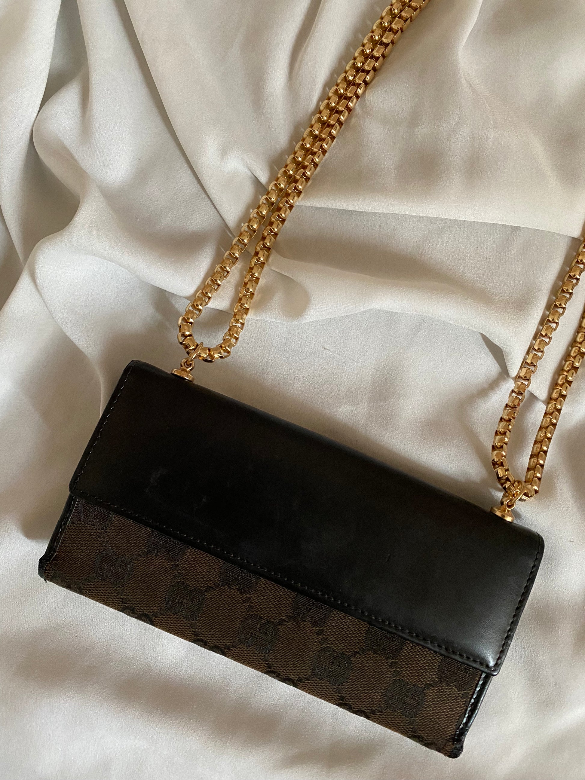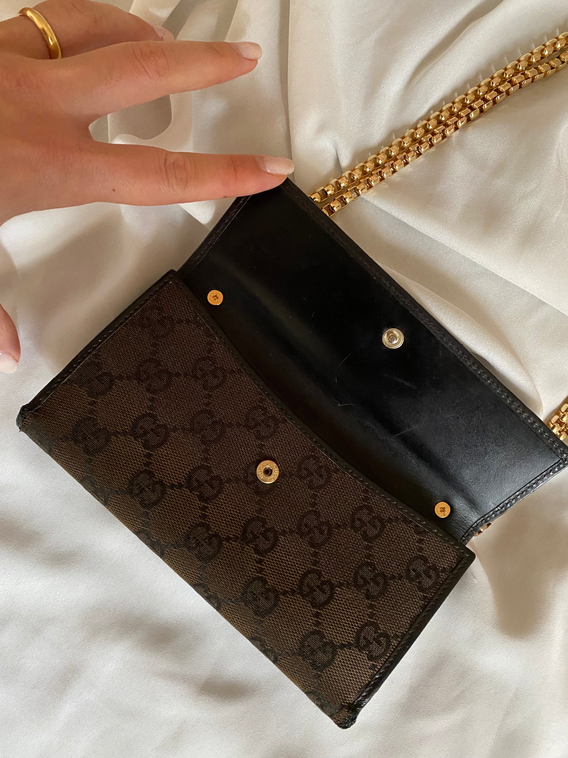 Pochette Gucci monogram marrone con pelle nera. elegantissima.