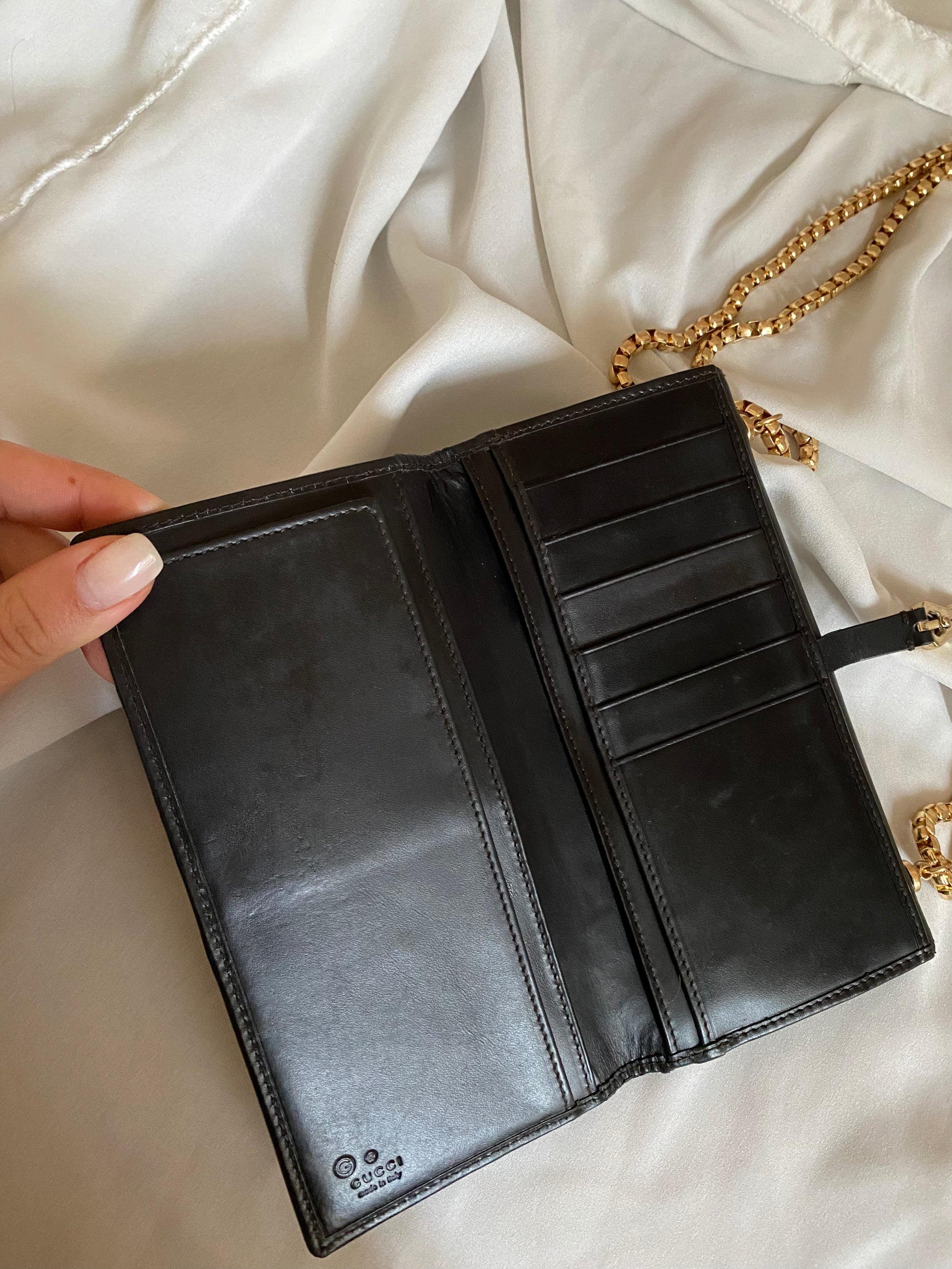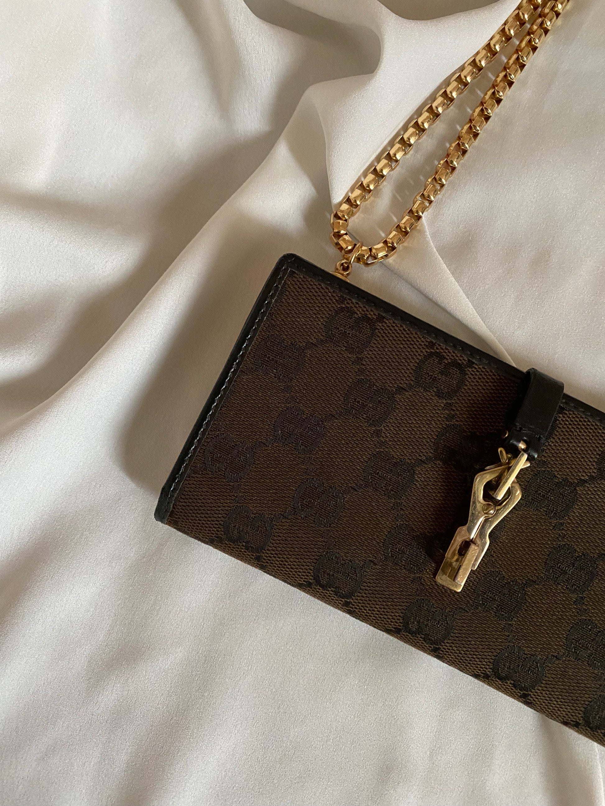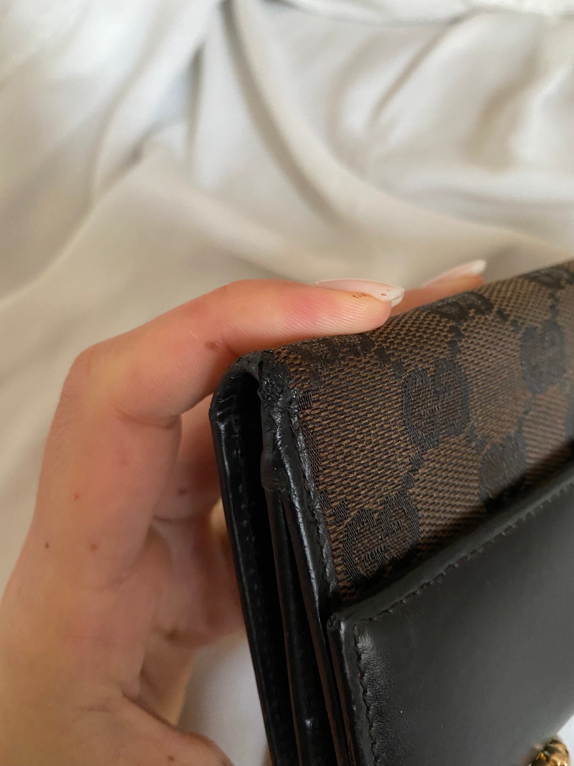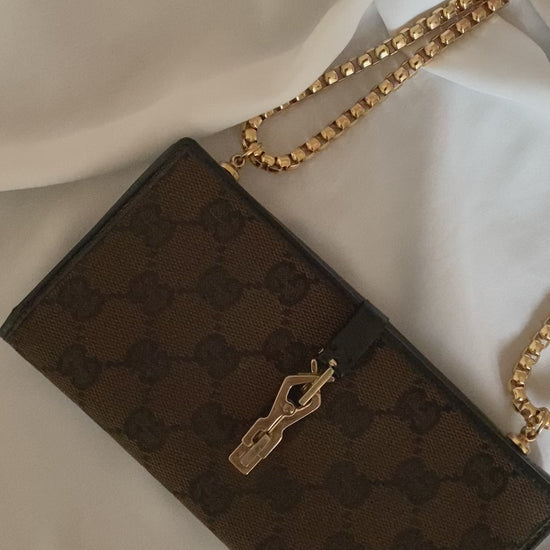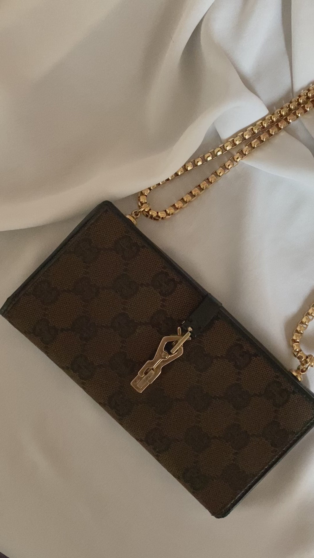Pochette Gucci monogram marrone con pelle nera. elegantissima.