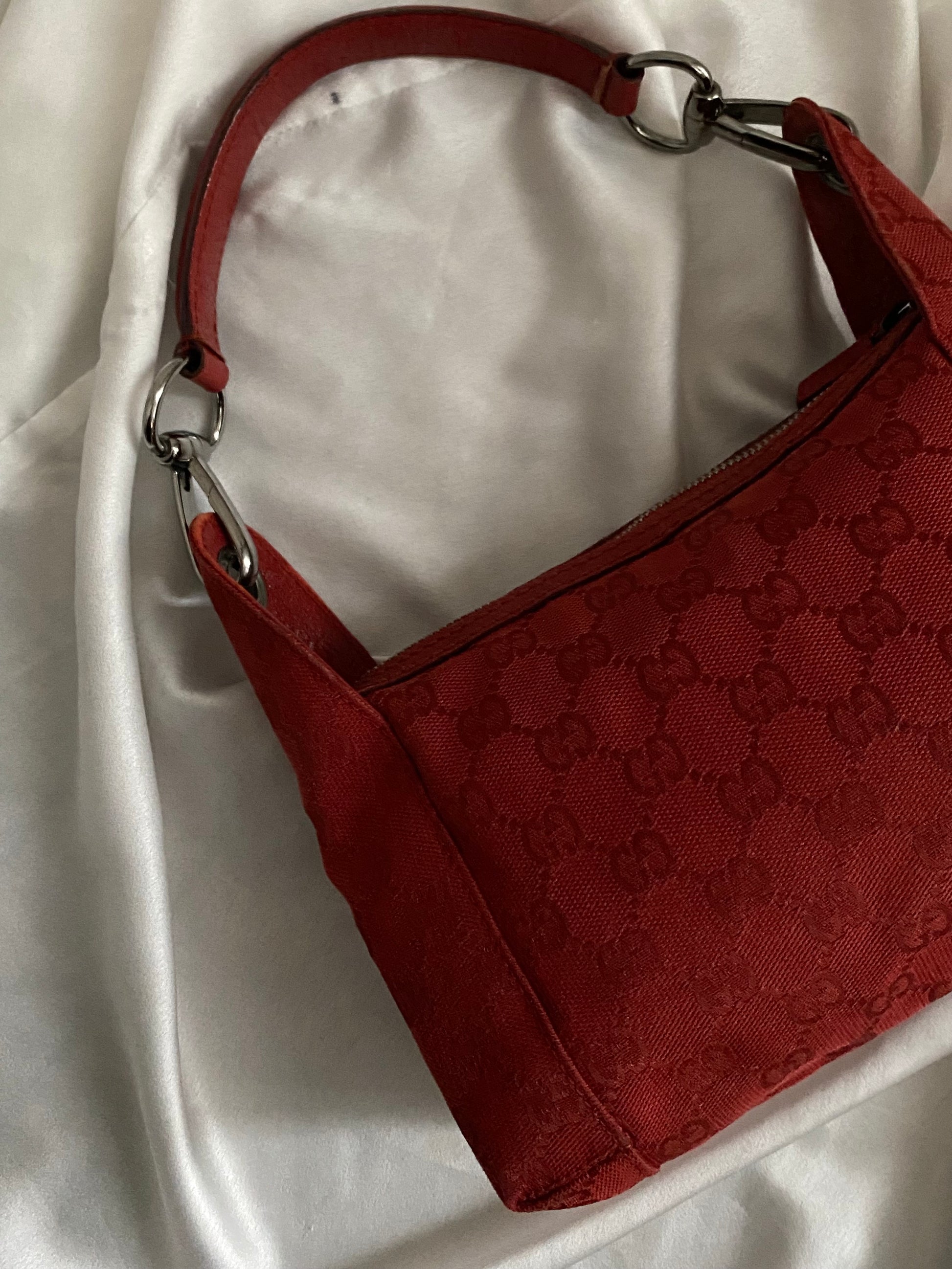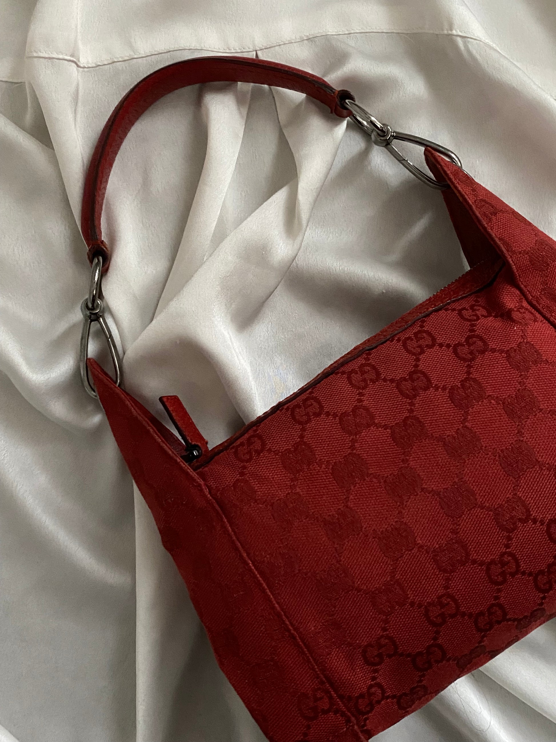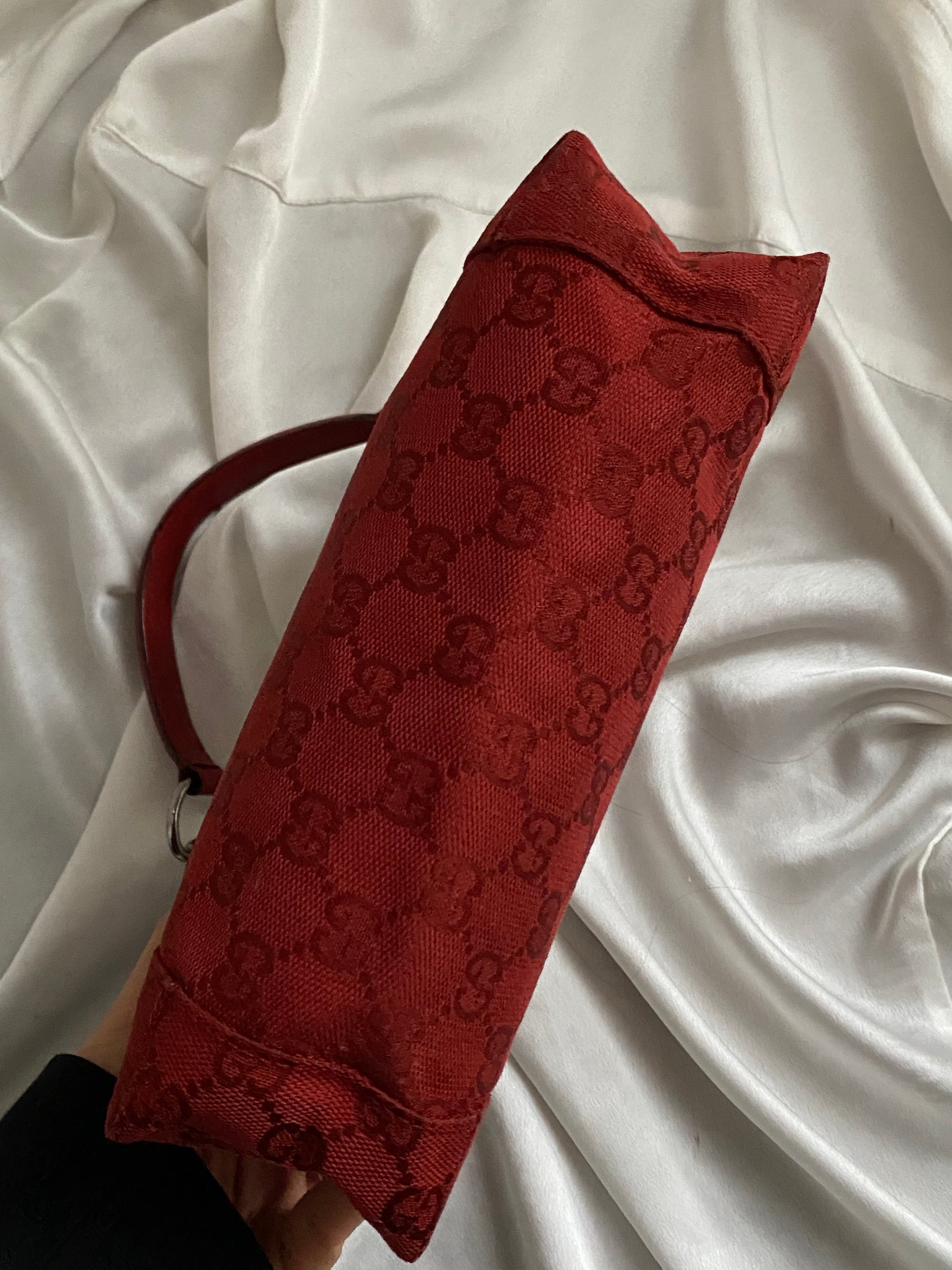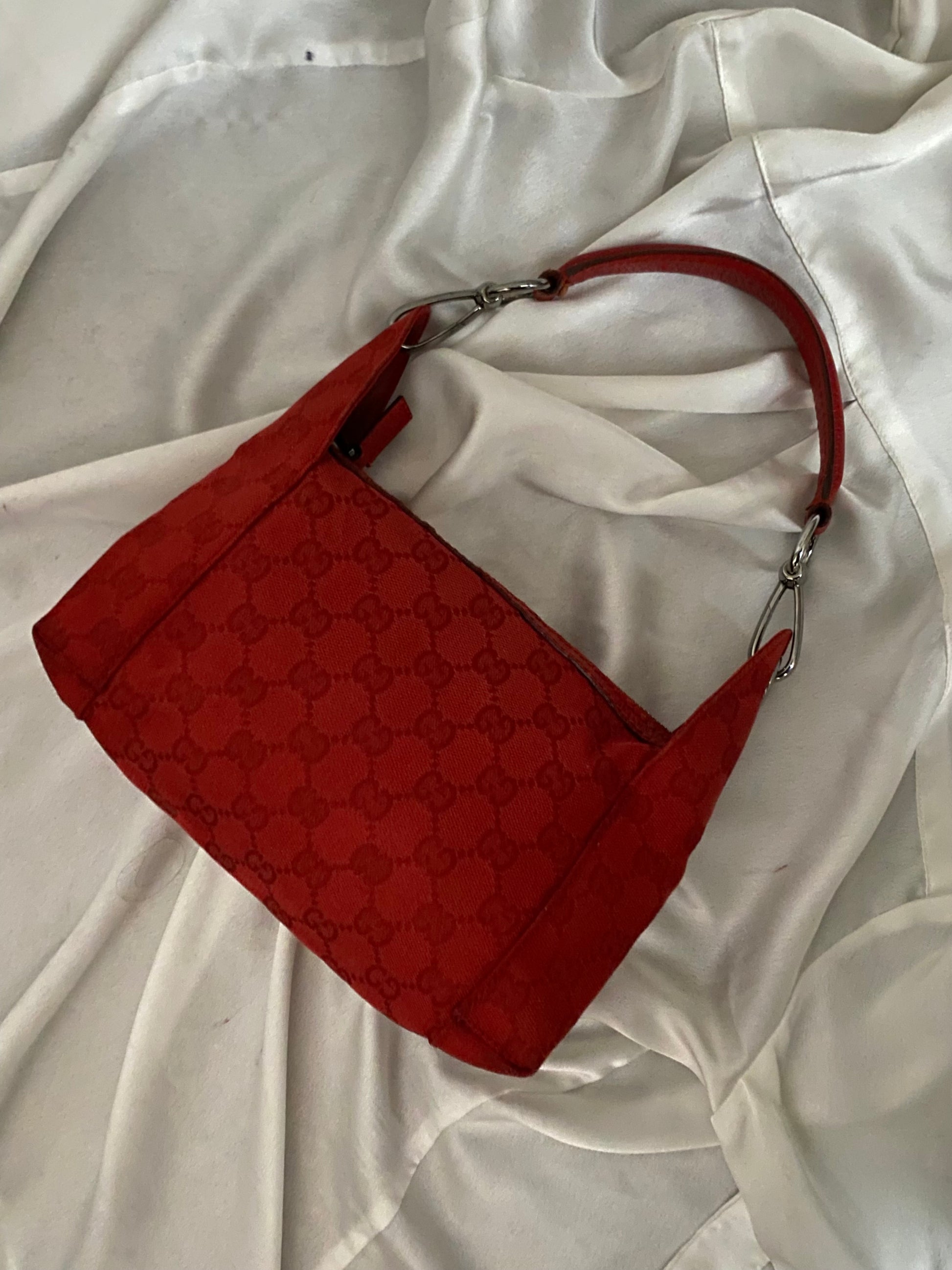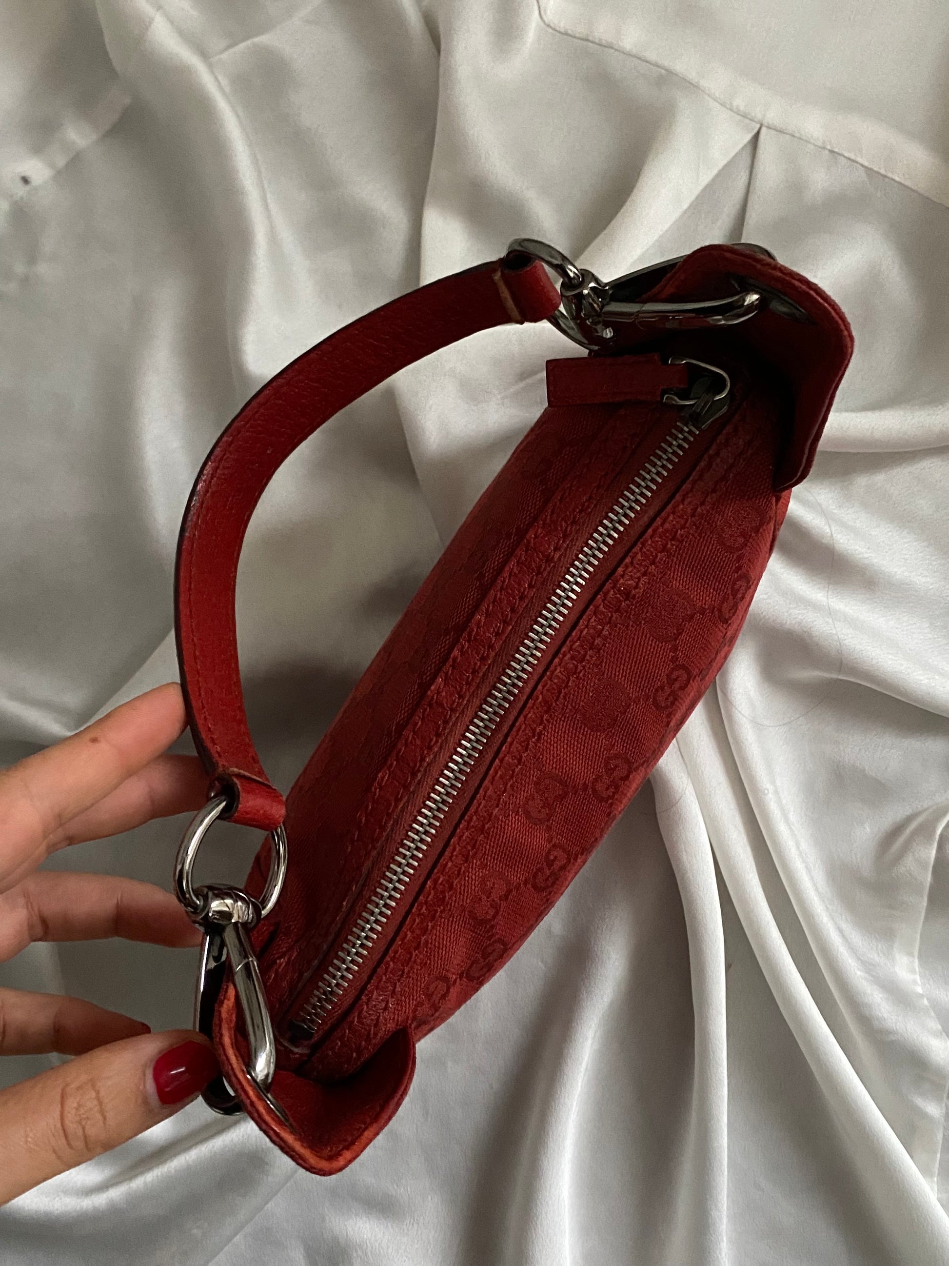 Gucci small hobo cherry red 🍒 in tela monogram e profili in pelle.