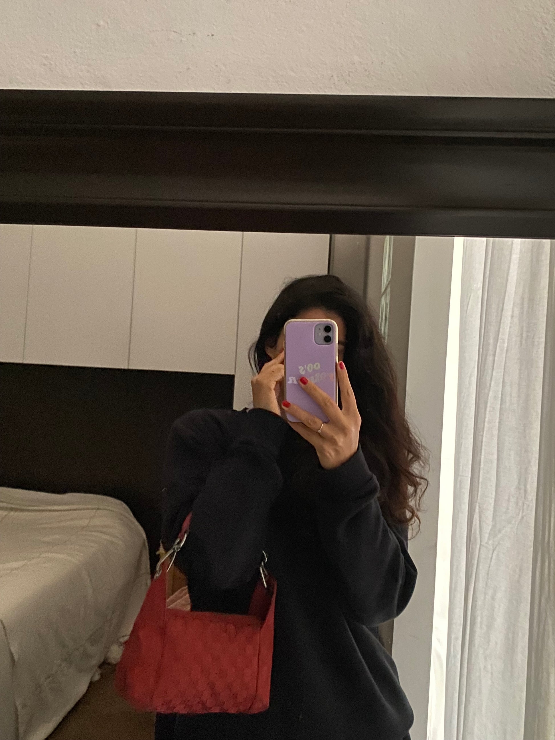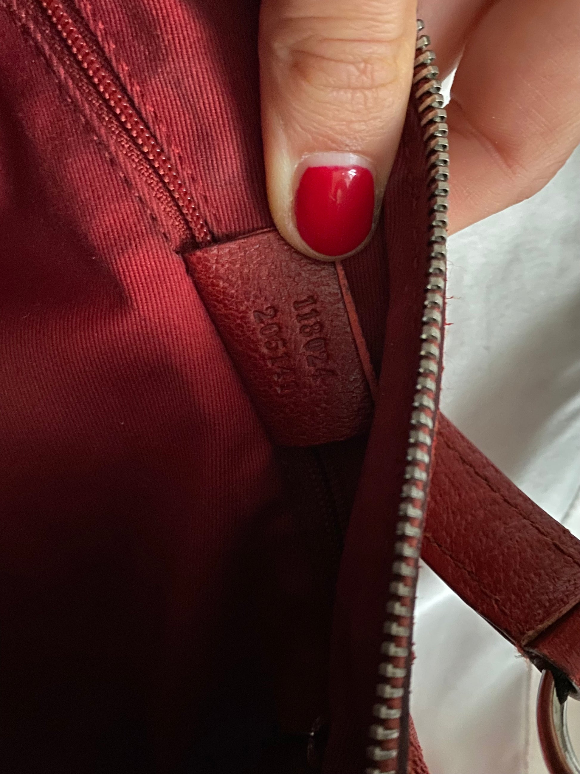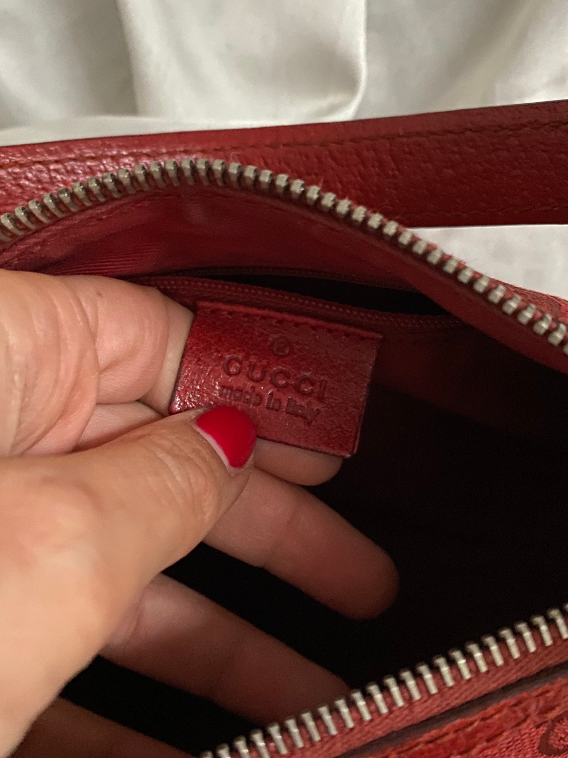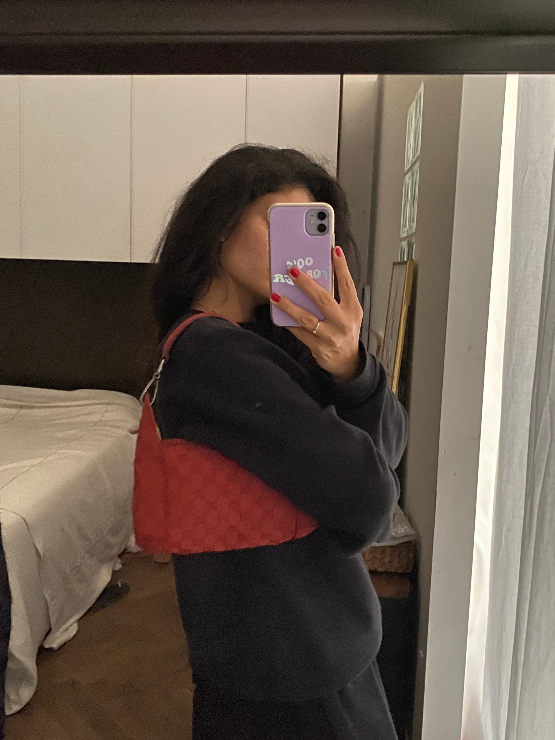 Gucci small hobo cherry red 🍒 in tela monogram e profili in pelle.