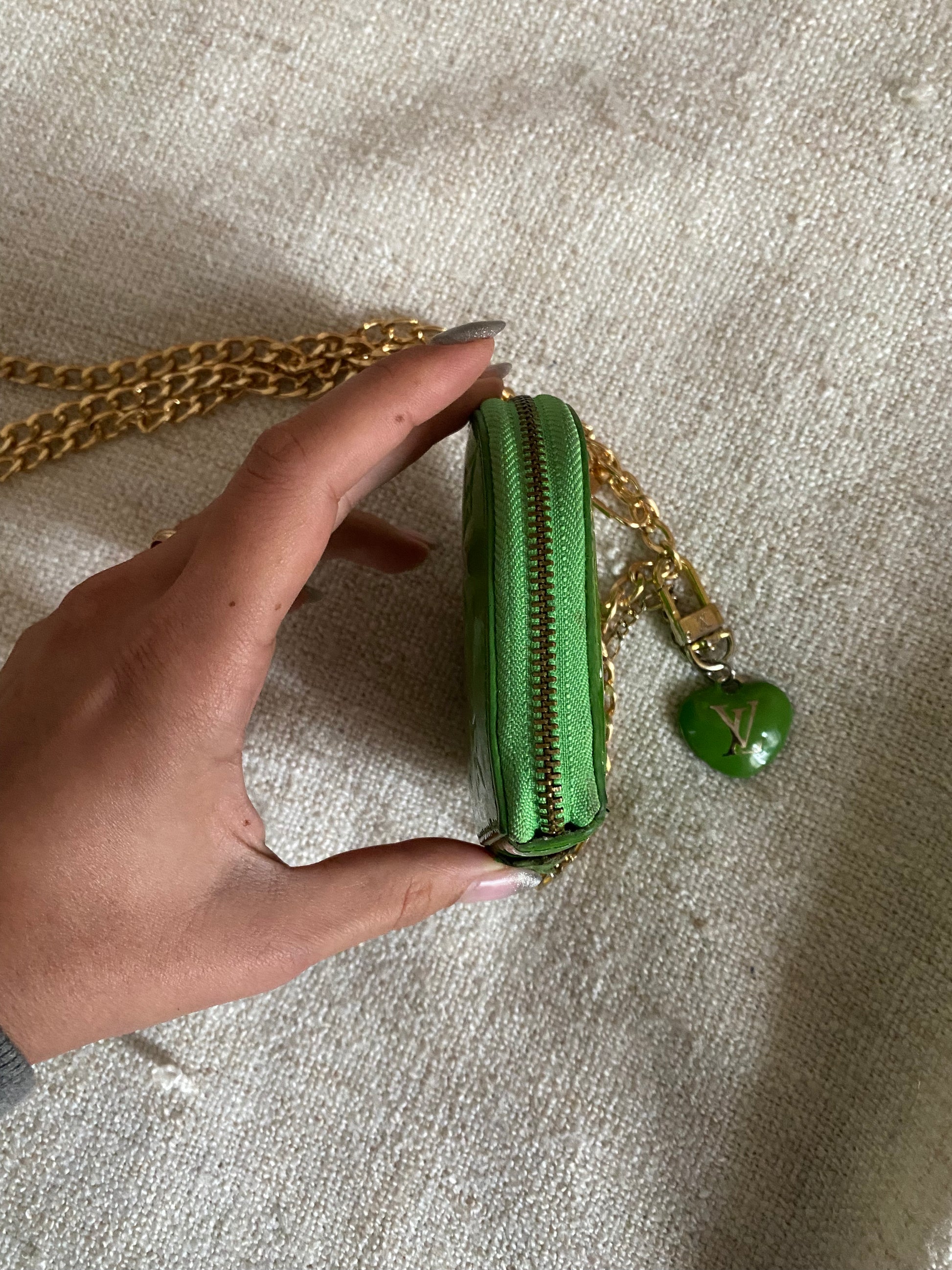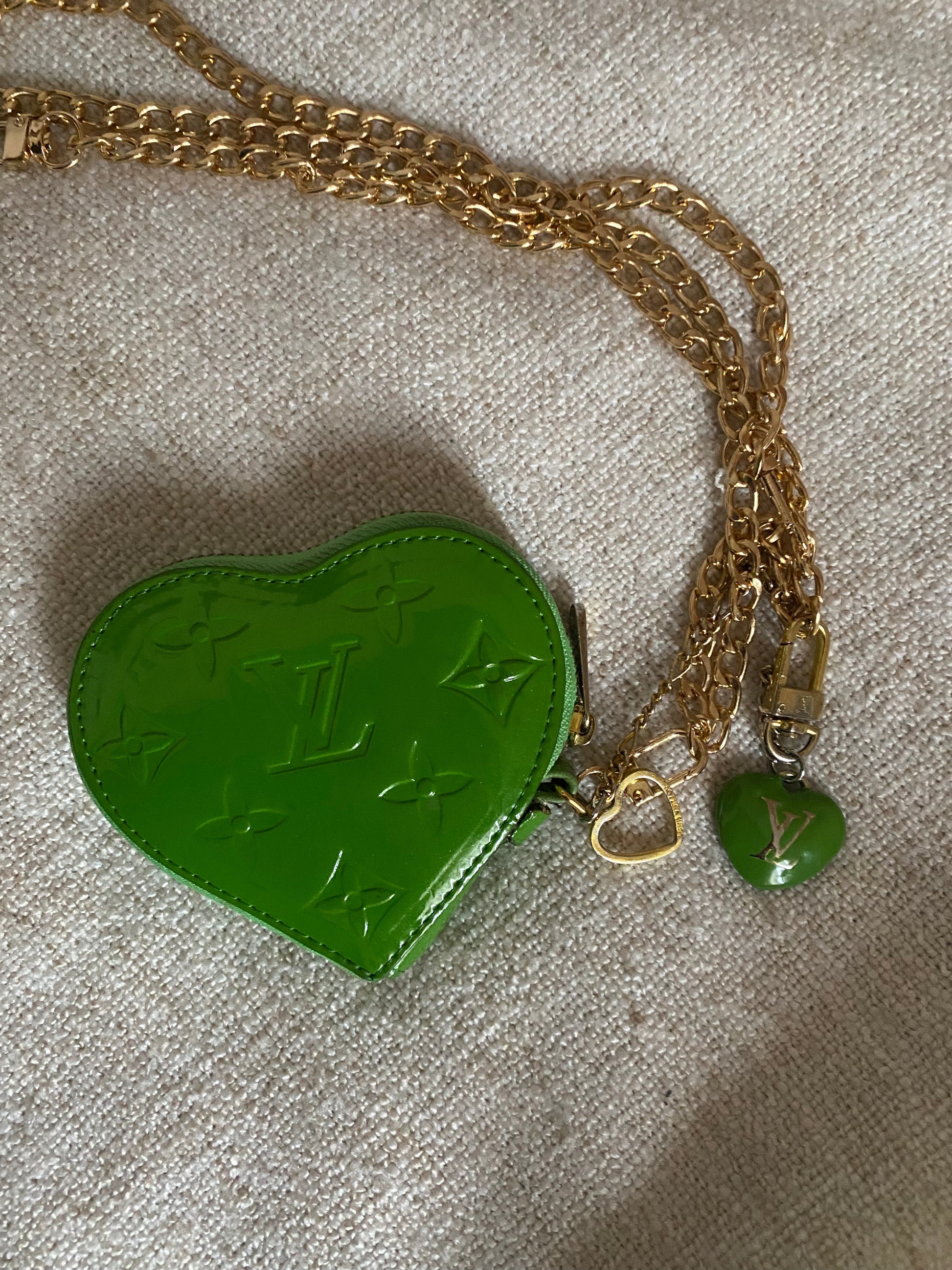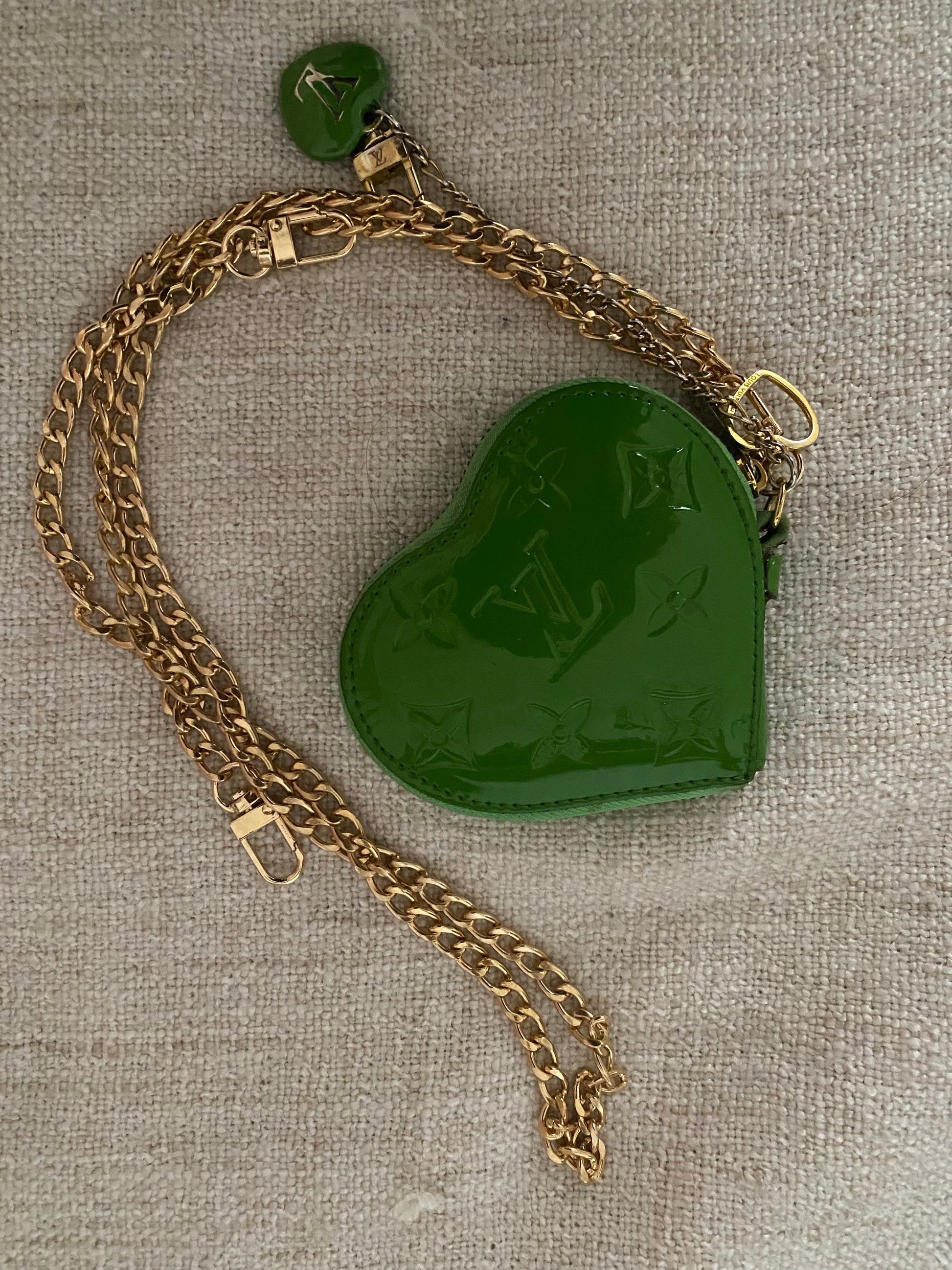 Meravigliosa cintura Louis Vuitton ricavata dall'iconico portamonete a cuore in pelle verniciata.
