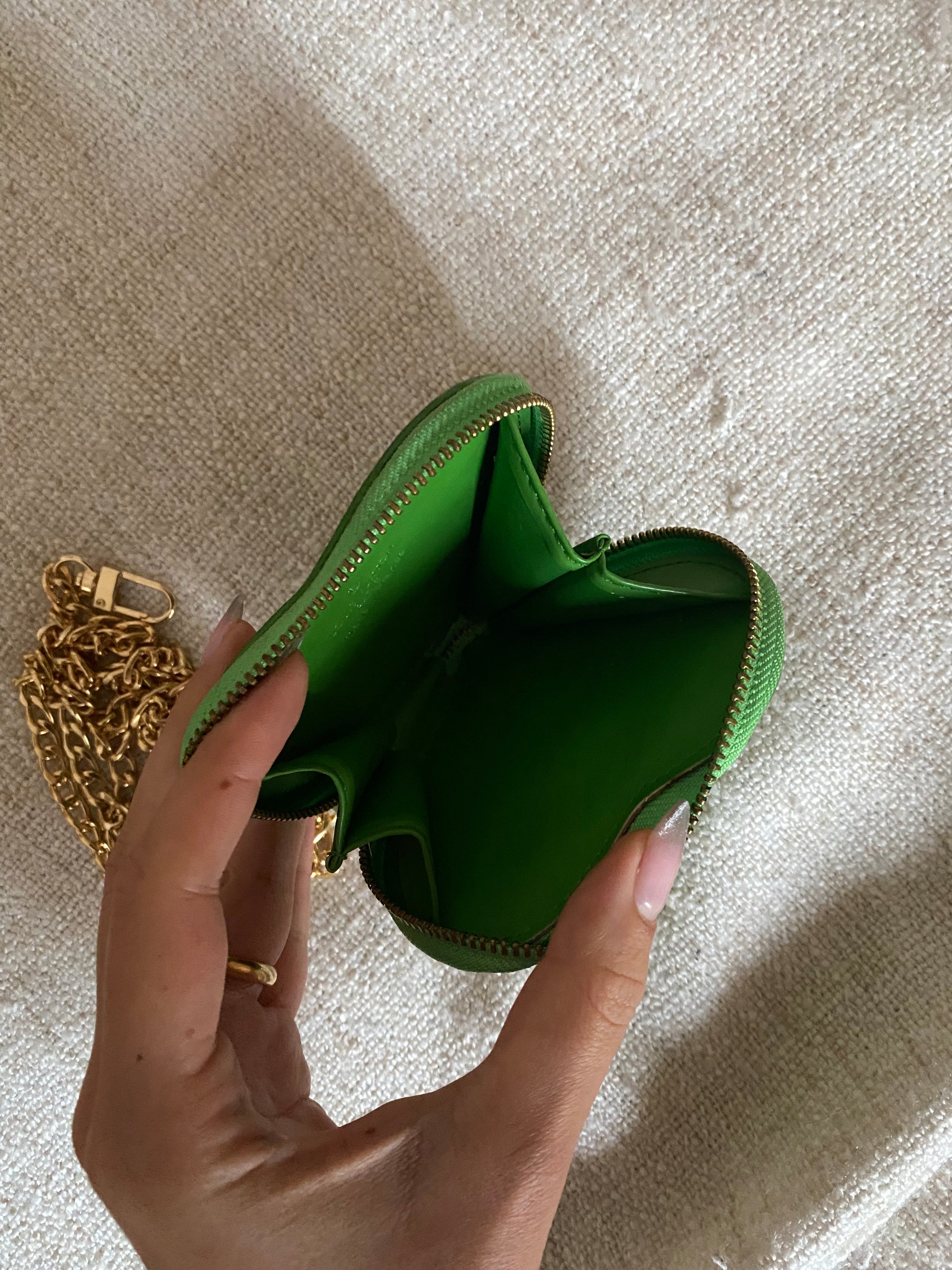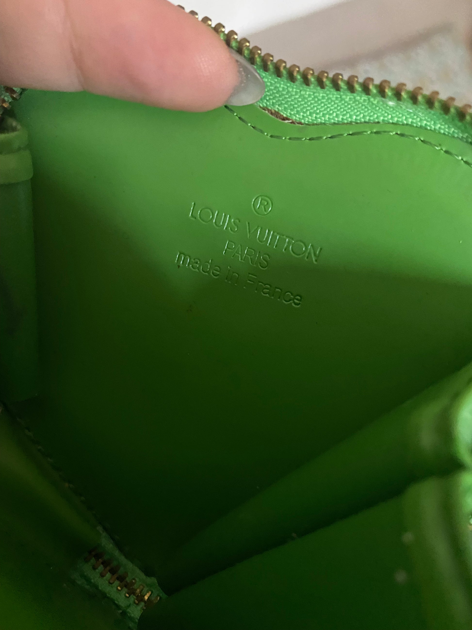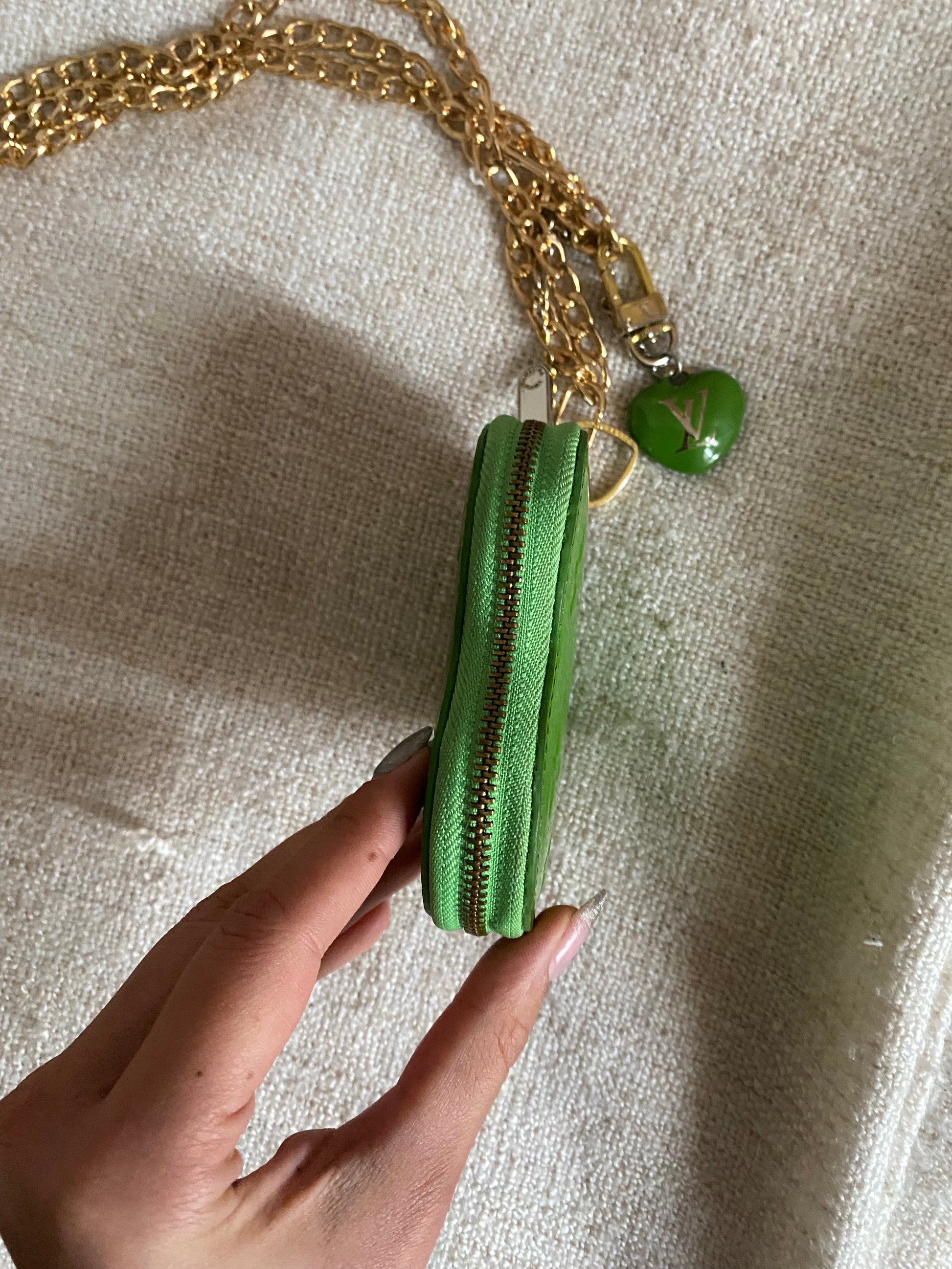 Meravigliosa cintura Louis Vuitton ricavata dall'iconico portamonete a cuore in pelle verniciata.