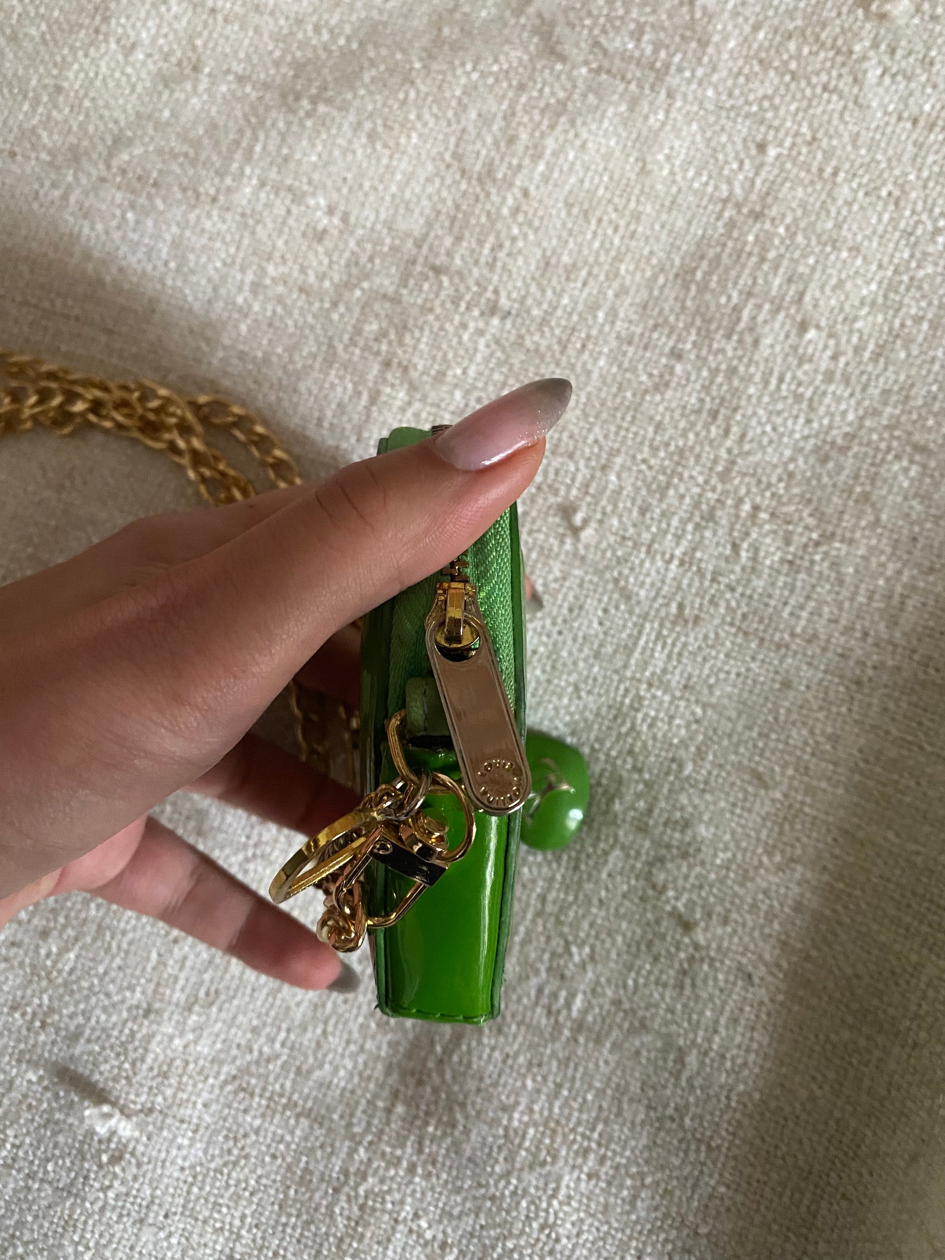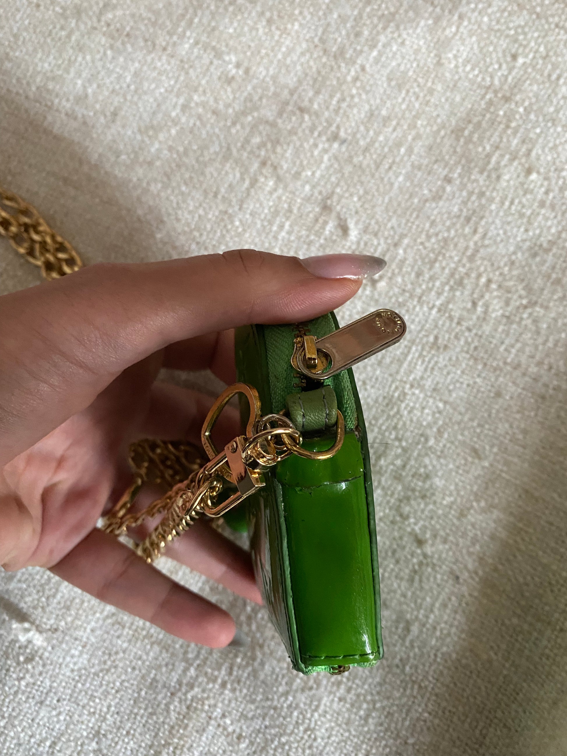 Leggerissimi segni di usura che si notano poco: l'hardware oro è un po' sbiadito sulla zip e l'asola laterale è stata riparata professionalmente. Buonissime condizioni generali: oggetto davvero unico!