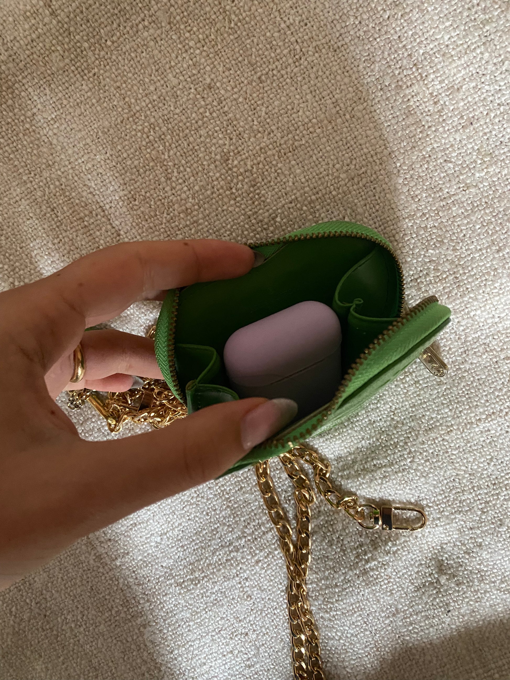 E' possibile utilizzare il prodotto come mini-bag a tracolla (entrano le AirPods, contanti e monete) oppure come cintura.