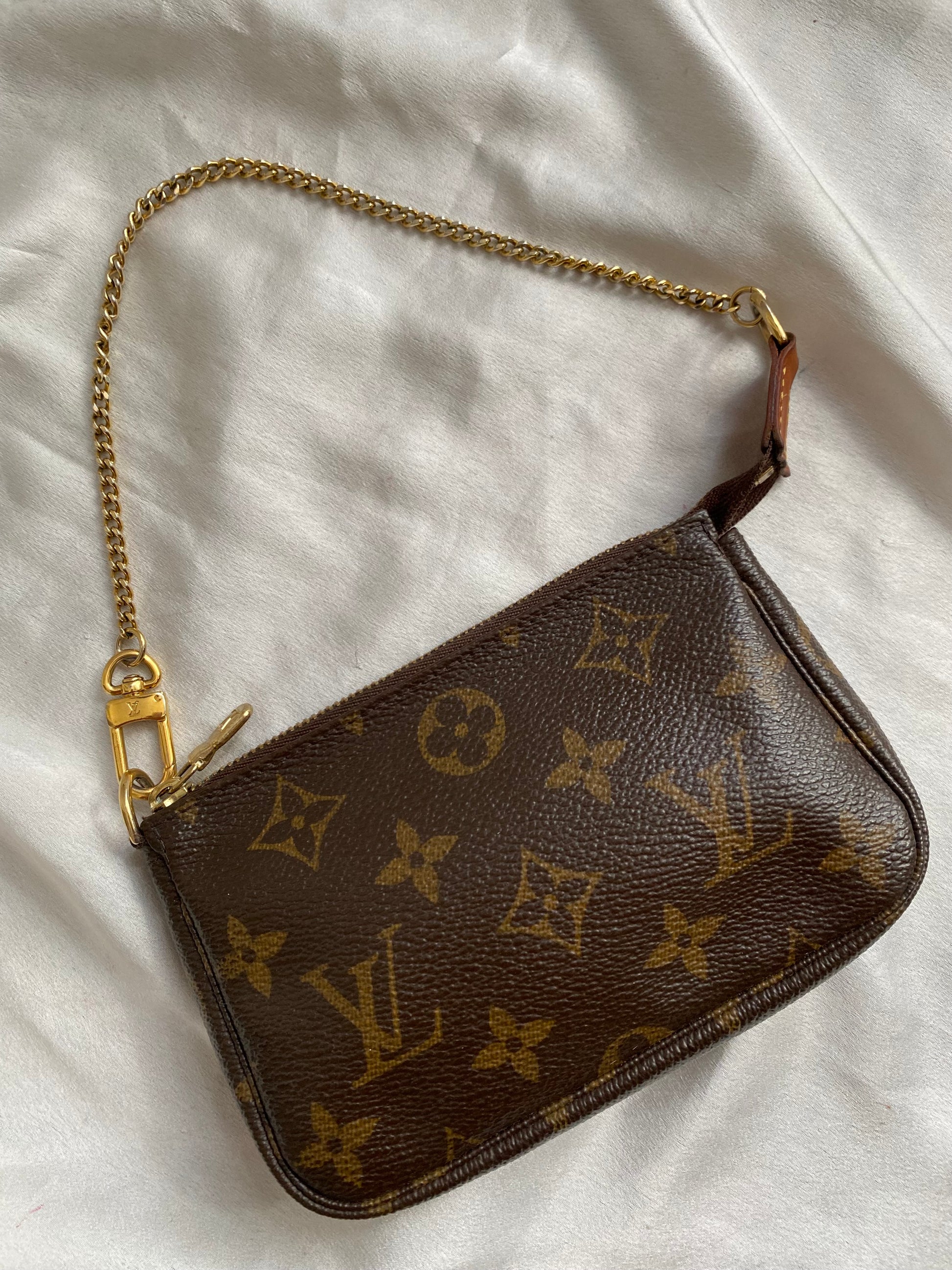 Louis Vuitton Mini pochette Accessoire iconica, qualche segno sull’hardware, pelle color miele, buonissime condizioni.