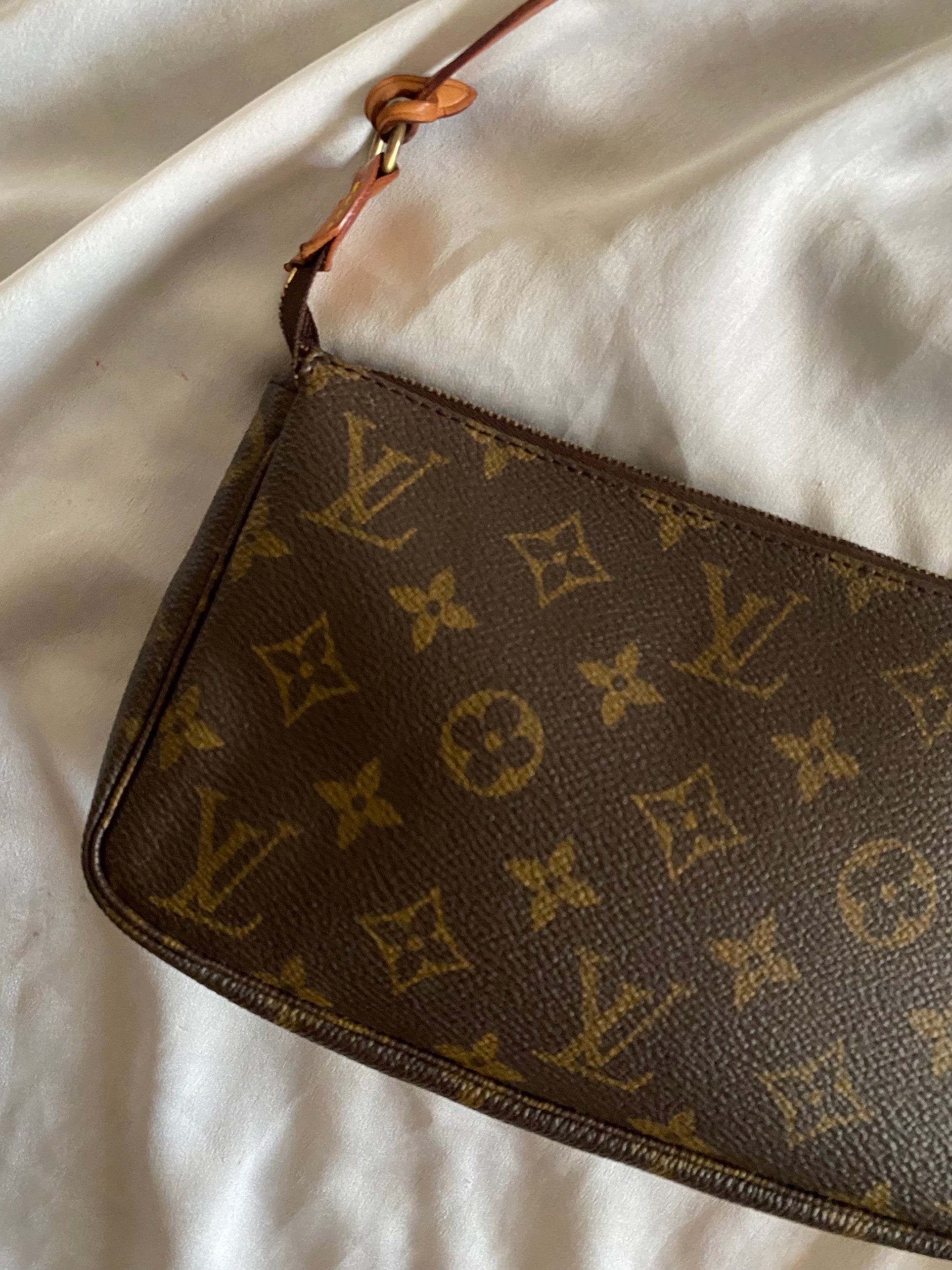 Stupenda e iconica pochette accessoire di Louis Vuitton. Pelle di un bellissimo color miele, angoli e tela stupendi. Qualche segno sull’hardware, ma ottime condizioni generali!