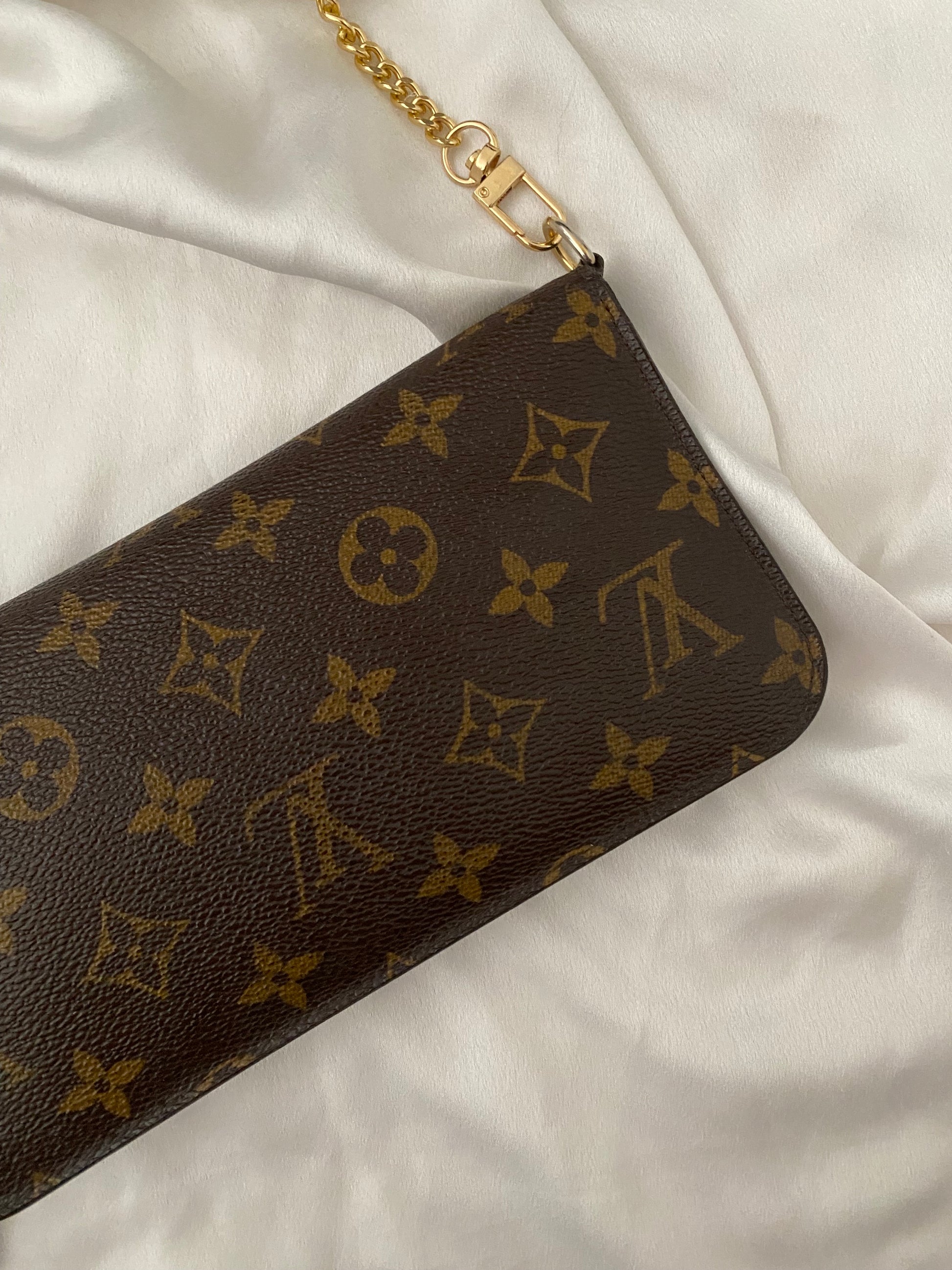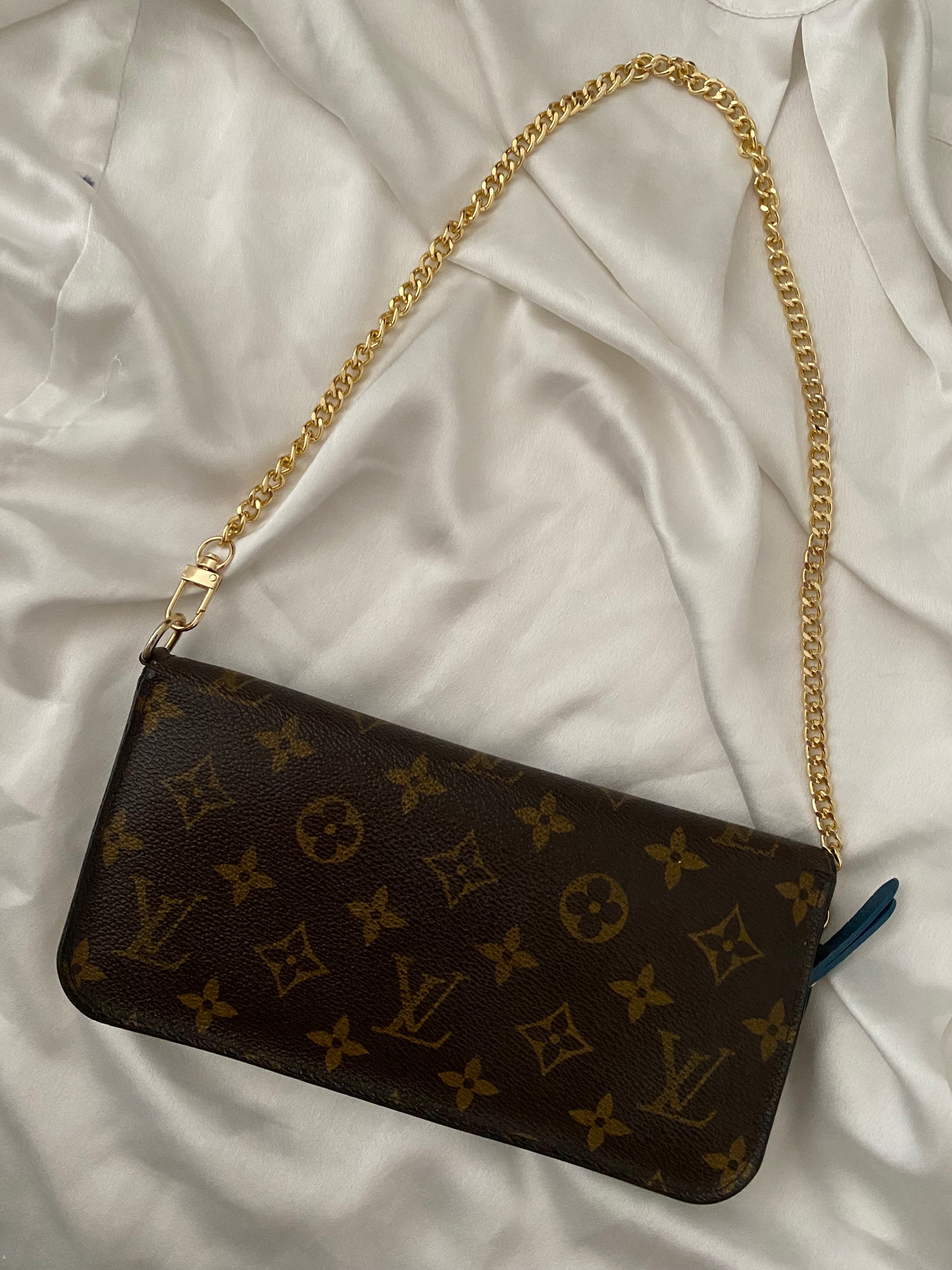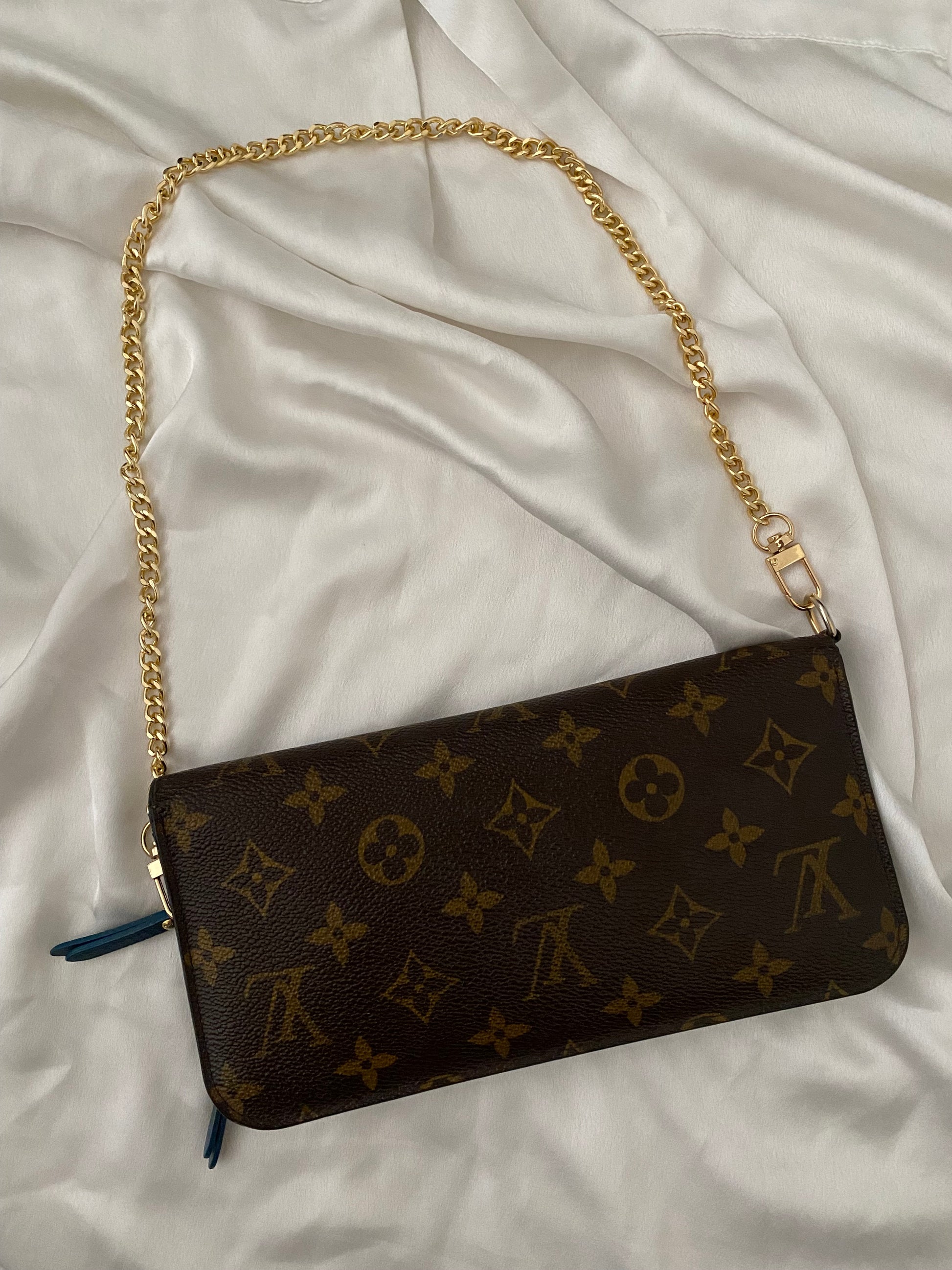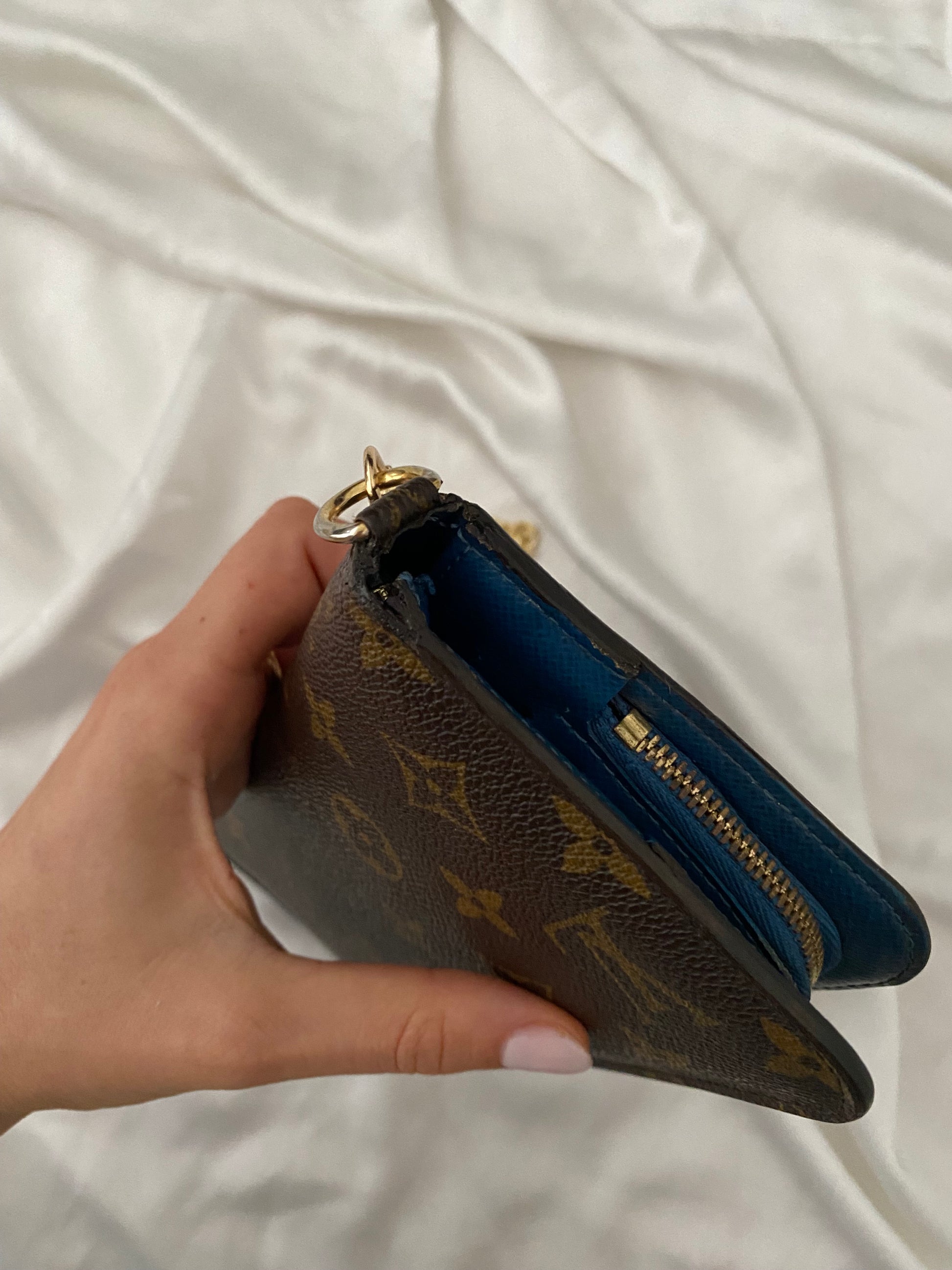 Pochette Louis Vuitton insolite. Catena aggiunta. Alcuni segni sui bordi. Buonissime condizioni generali. Interno in pelle blu pazzesco.
