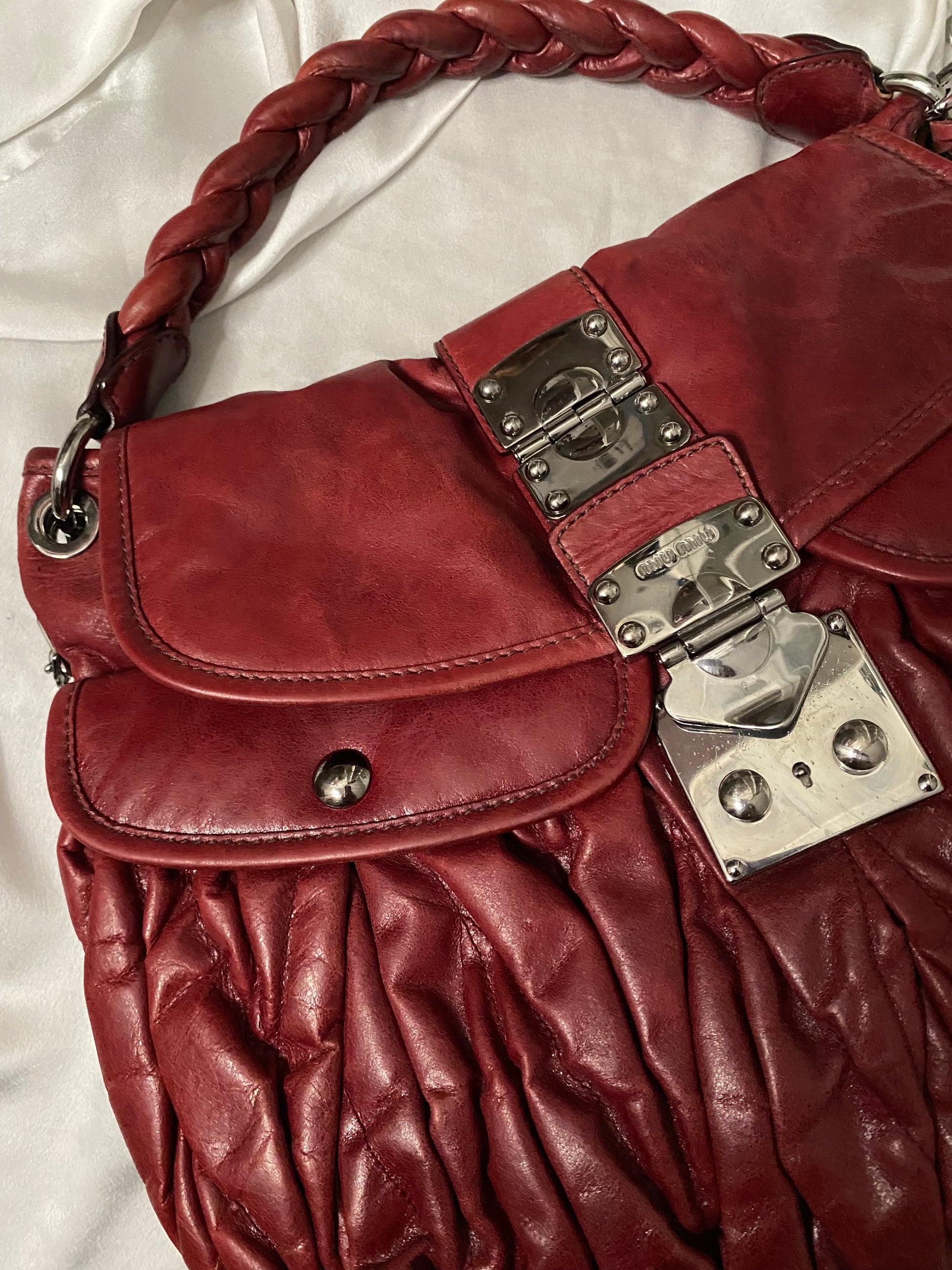 Miu miu coffer in pelle matelasse morbidissima colore amarena. Misura grande. Interno in raso viola.