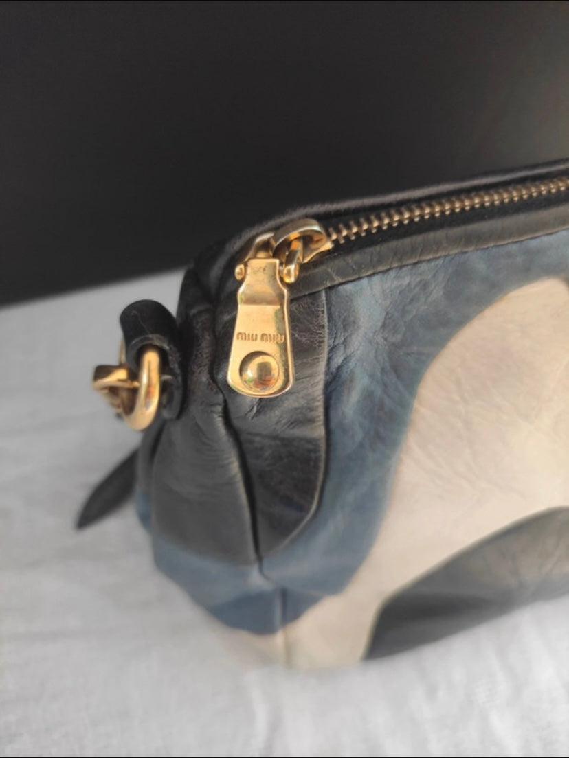 Stupenda e piena di carattere Miu Miu patchwork wave pochette completamente in pelle. PAZZESCA. mi ricorda moltissimo la flamenco di Loewe!