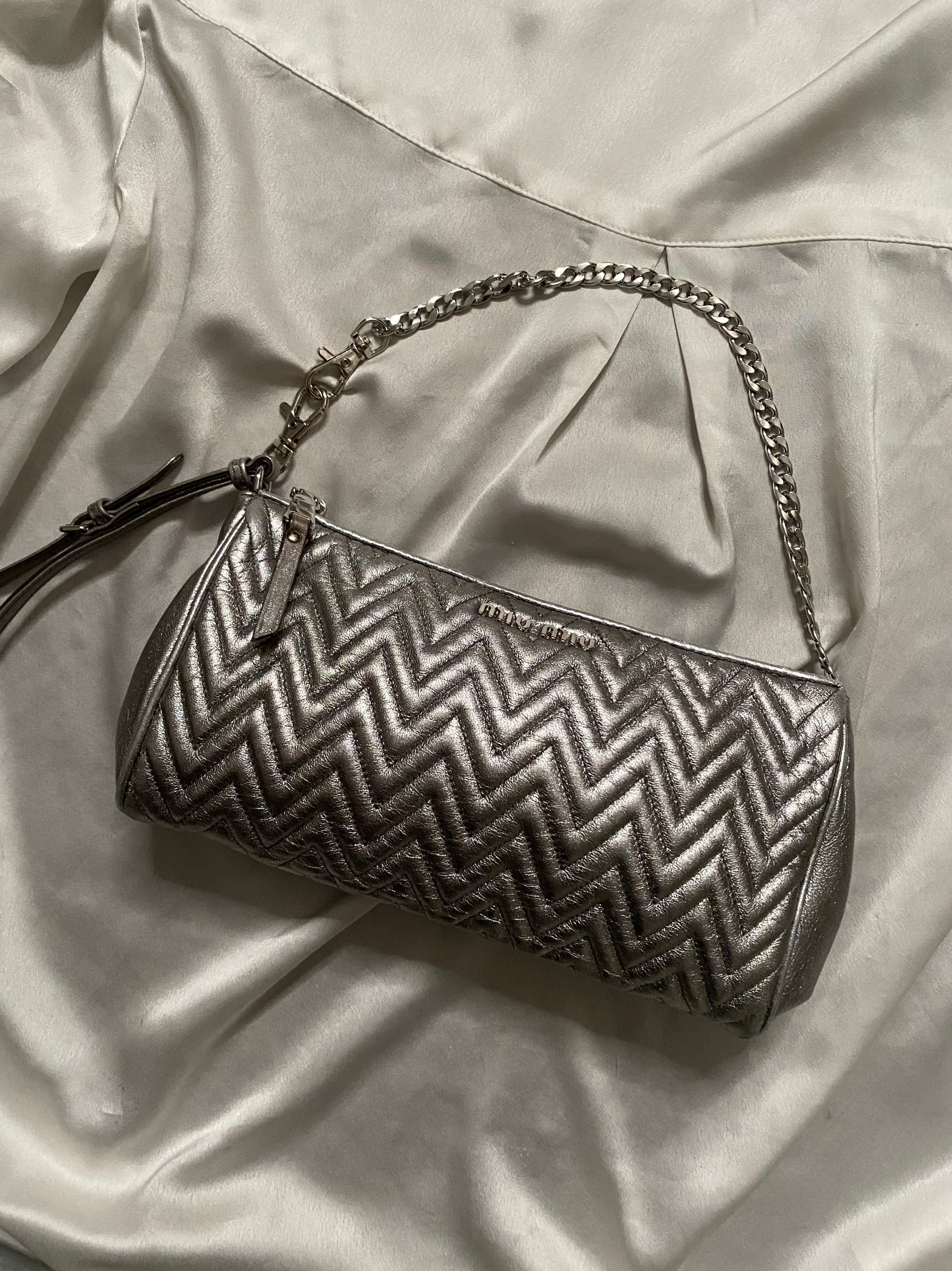 Miu Miu pochette argento metallizzato
