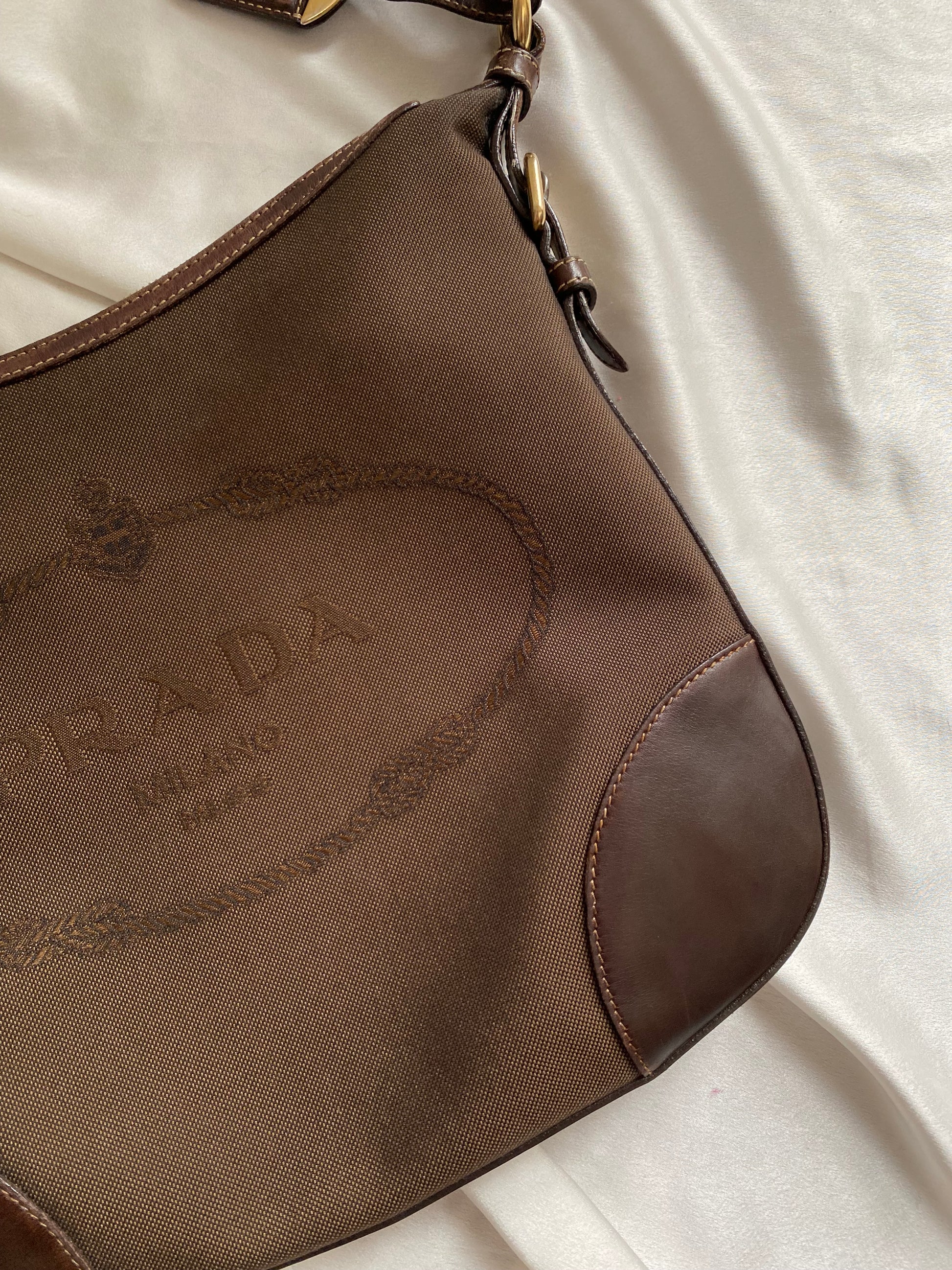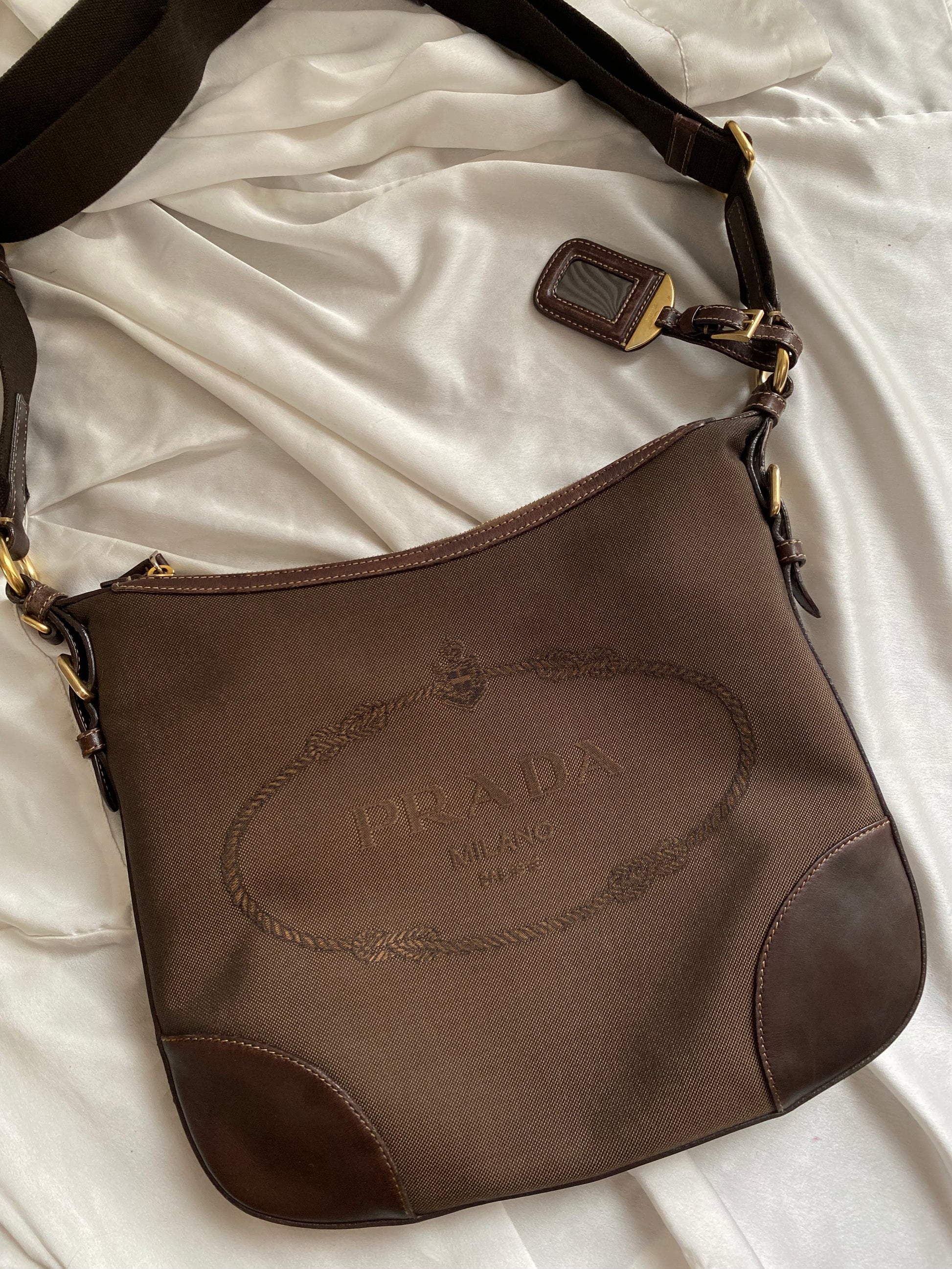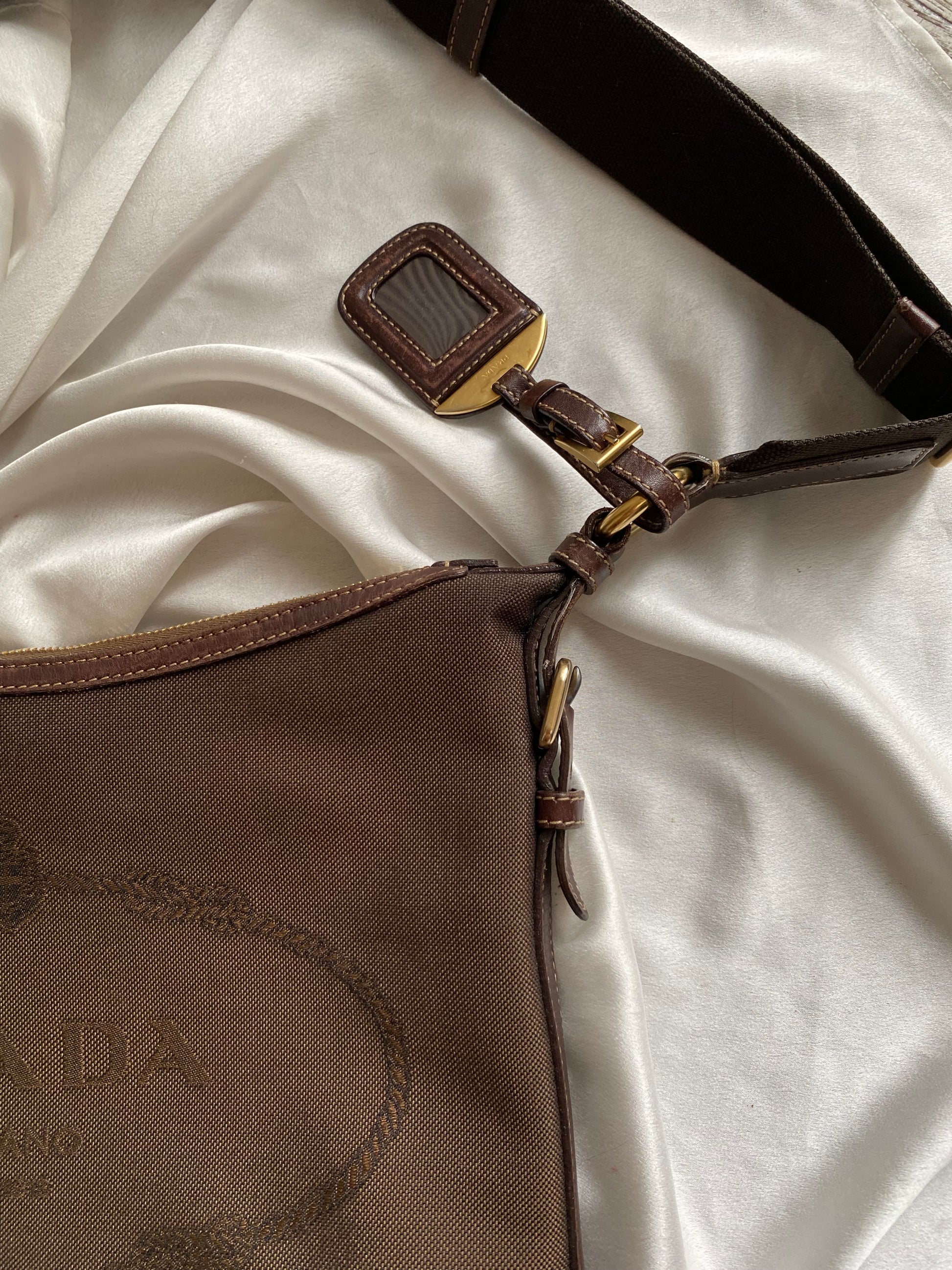 Bellissima prada hobo in dark brown portabile a tracolla o a spalla.