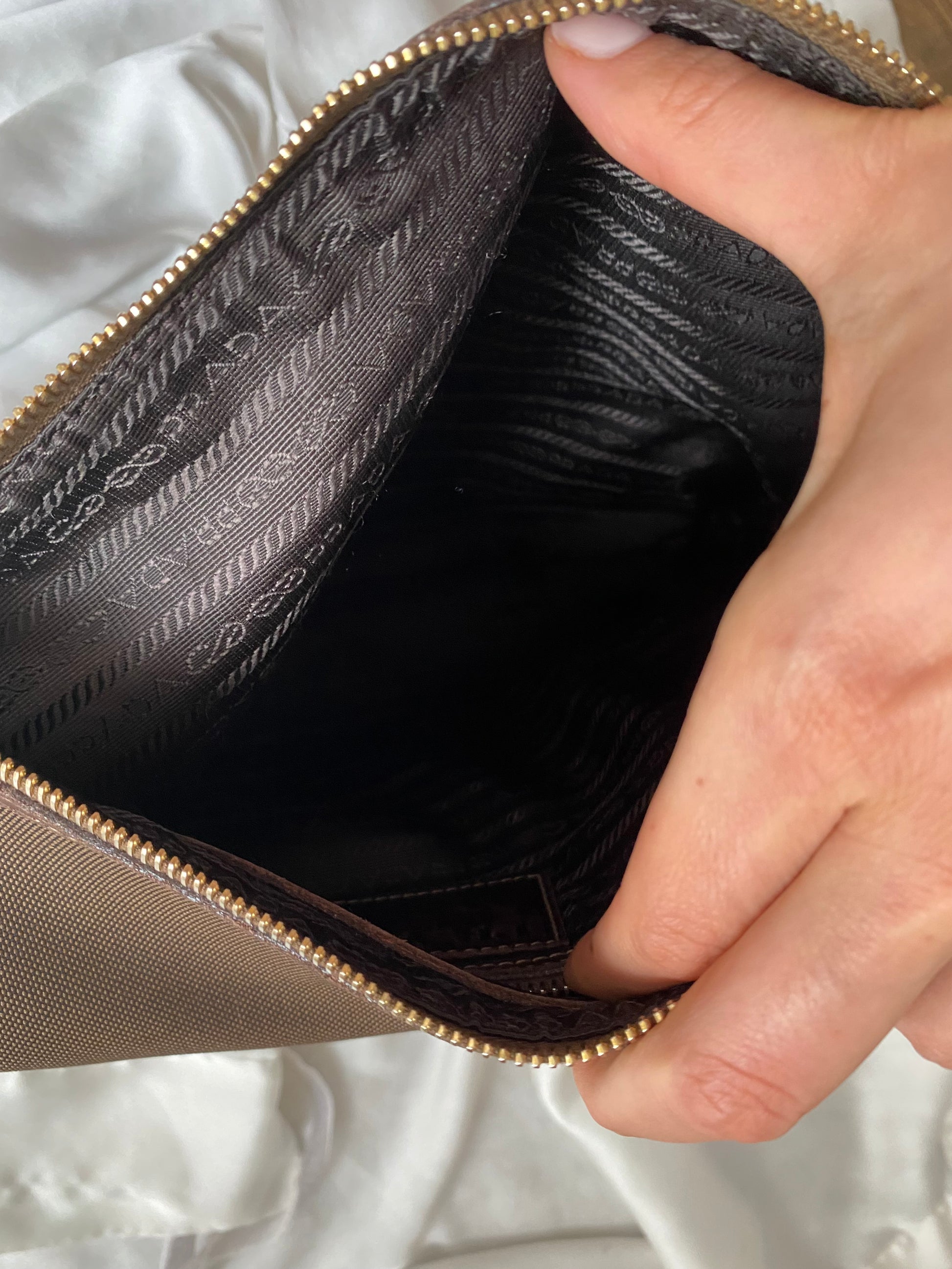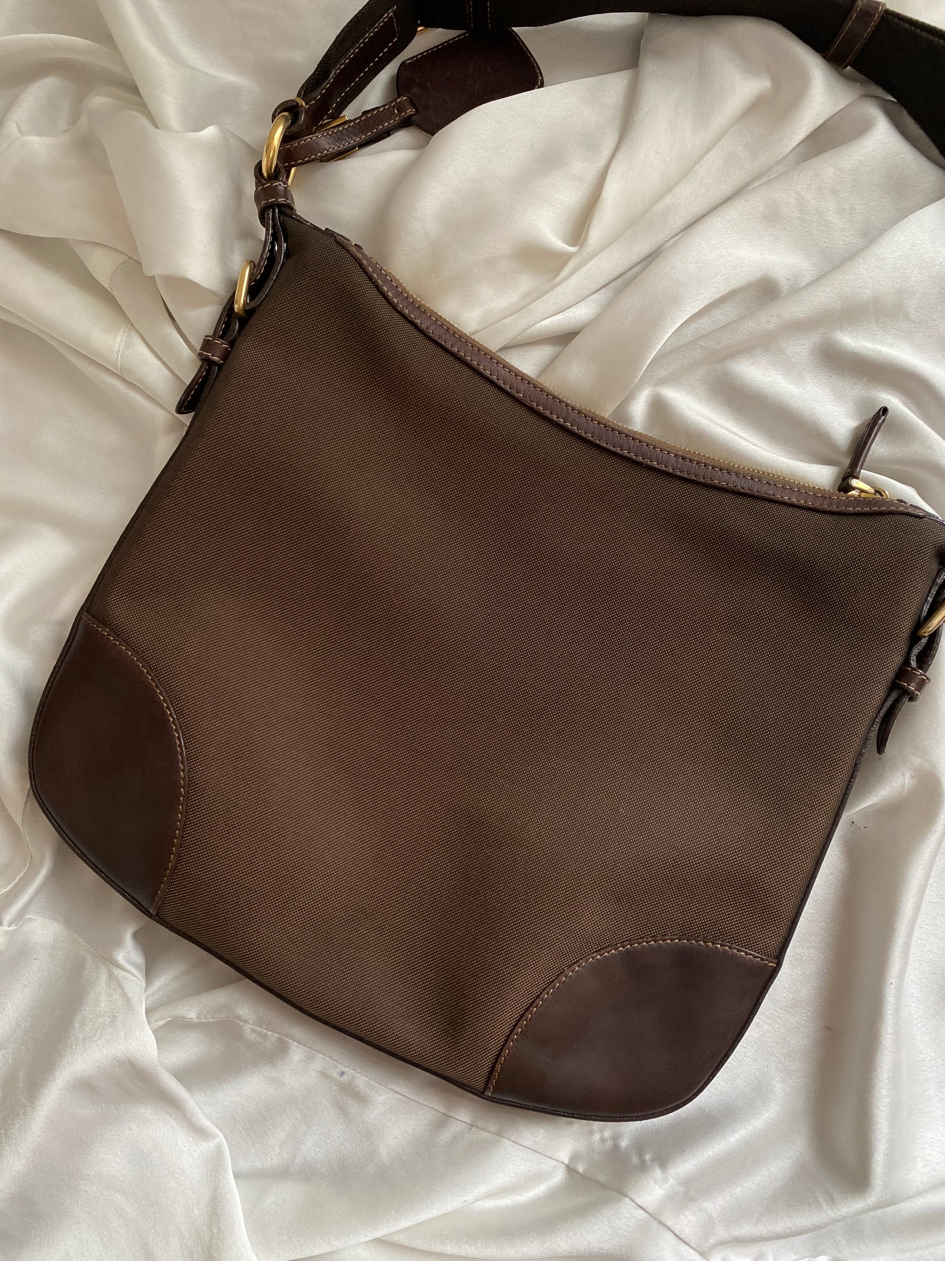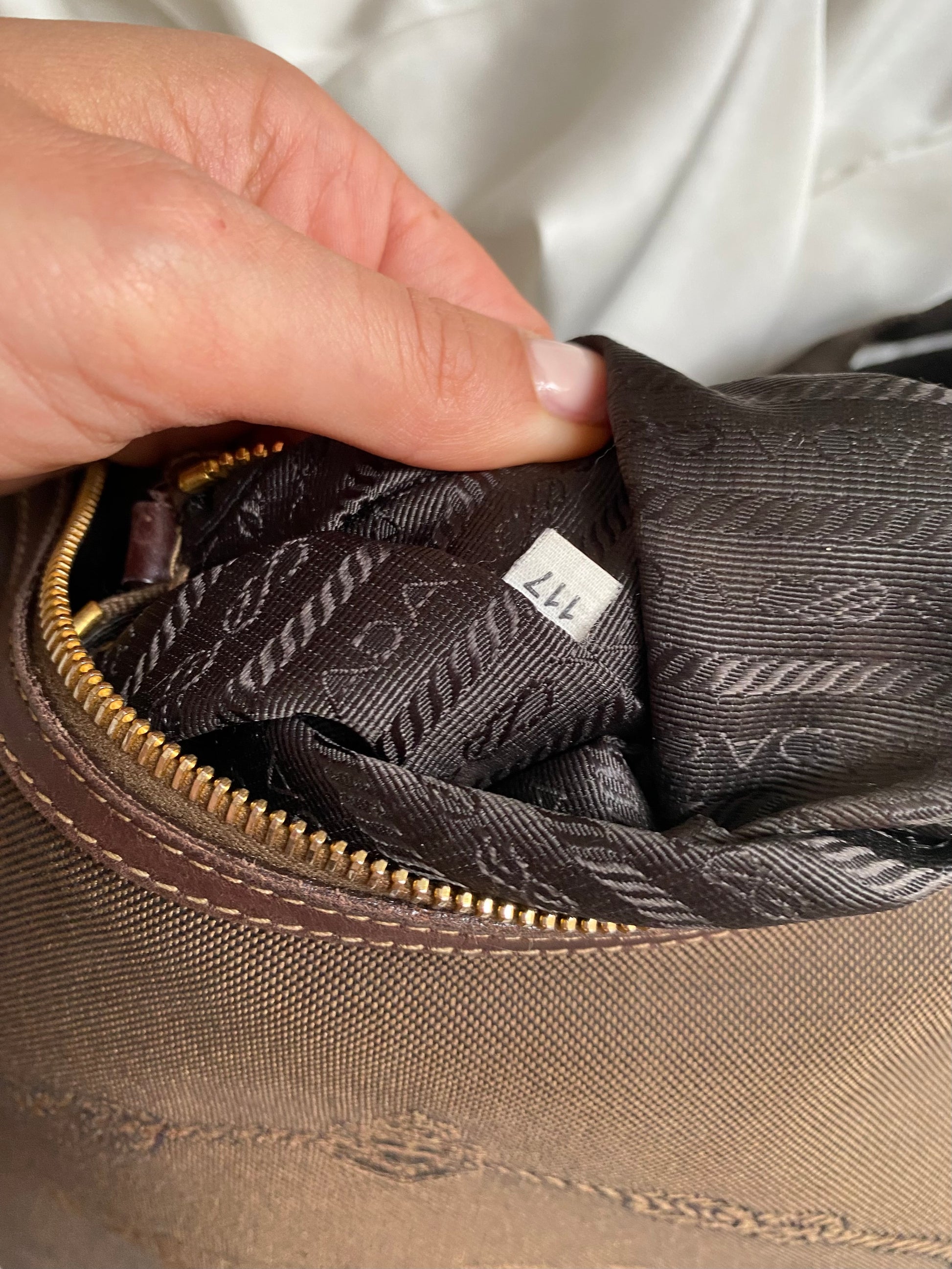 Bellissima prada hobo in dark brown portabile a tracolla o a spalla.