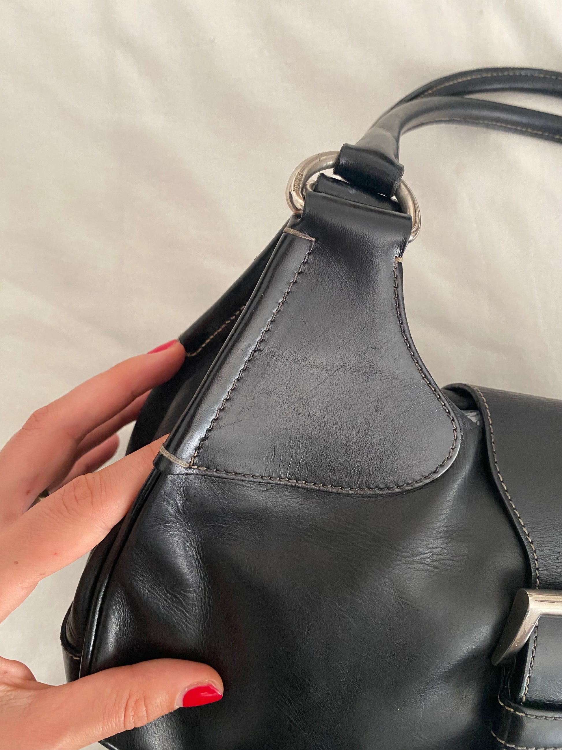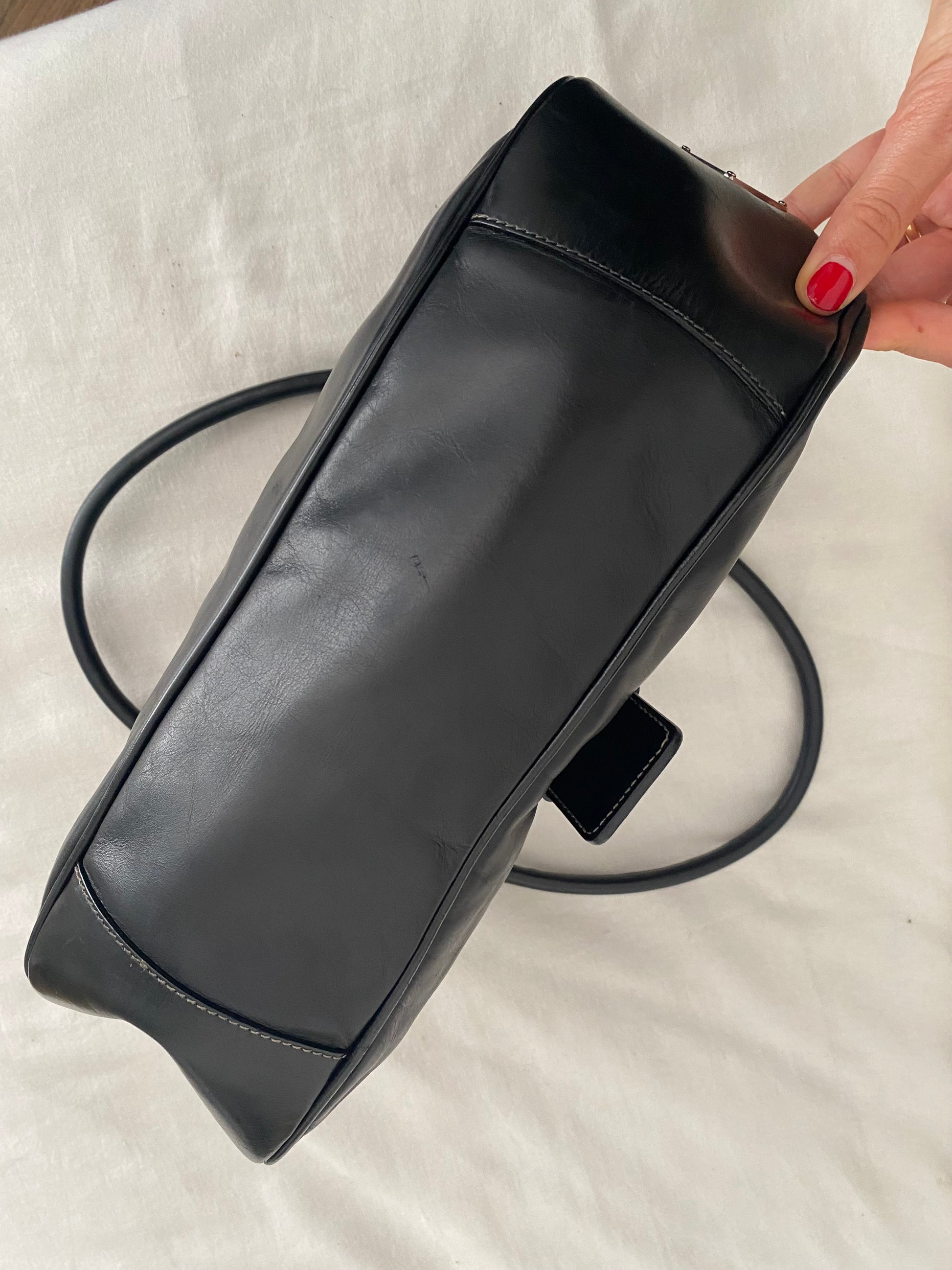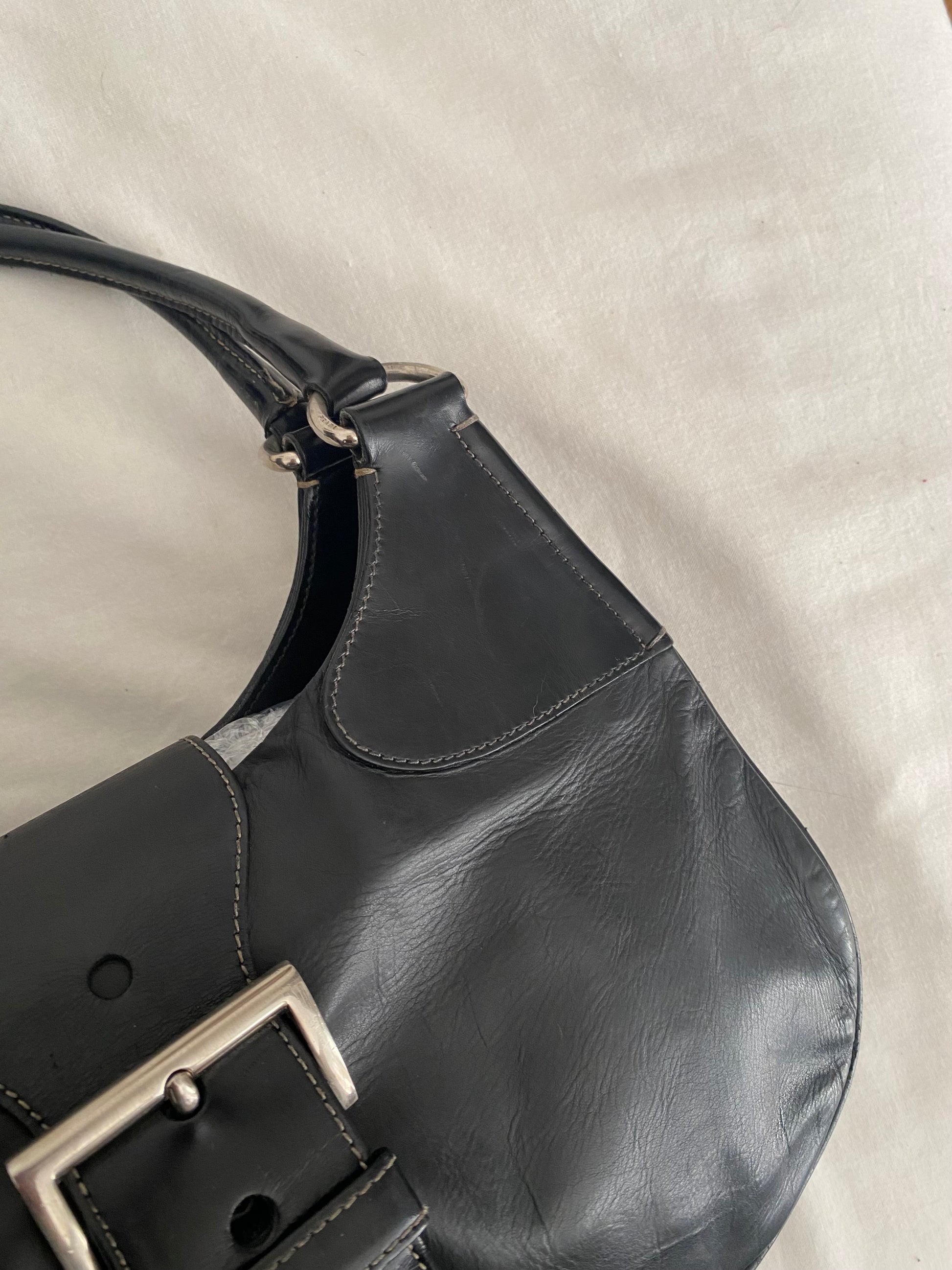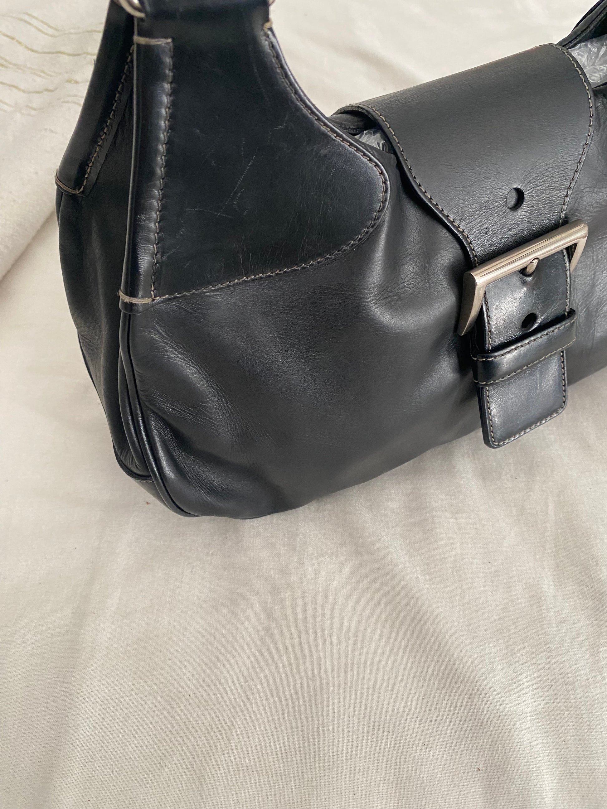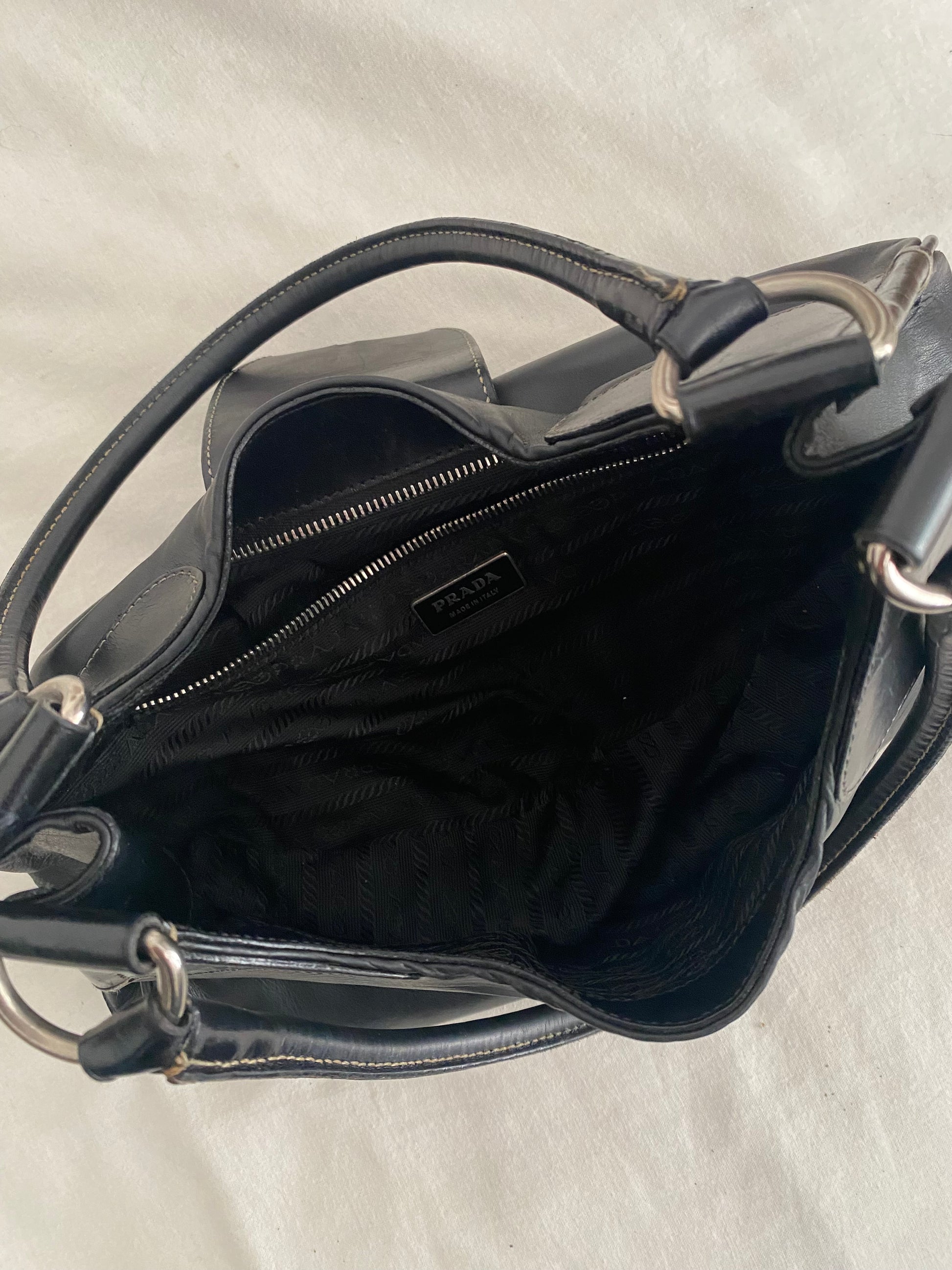 Iconica prada moon, misura stupenda. segni sulla pelle (graffietti sugli angoli in alto - foto). Angoli inferiori perfetti. Buone condizioni. Ottima come borsa da tutti i giorni. Molto comoda perché a differenza di altri modelli di prada moon questa ha il bottone magnetico che è molto più comodo da aprire e chiudere.