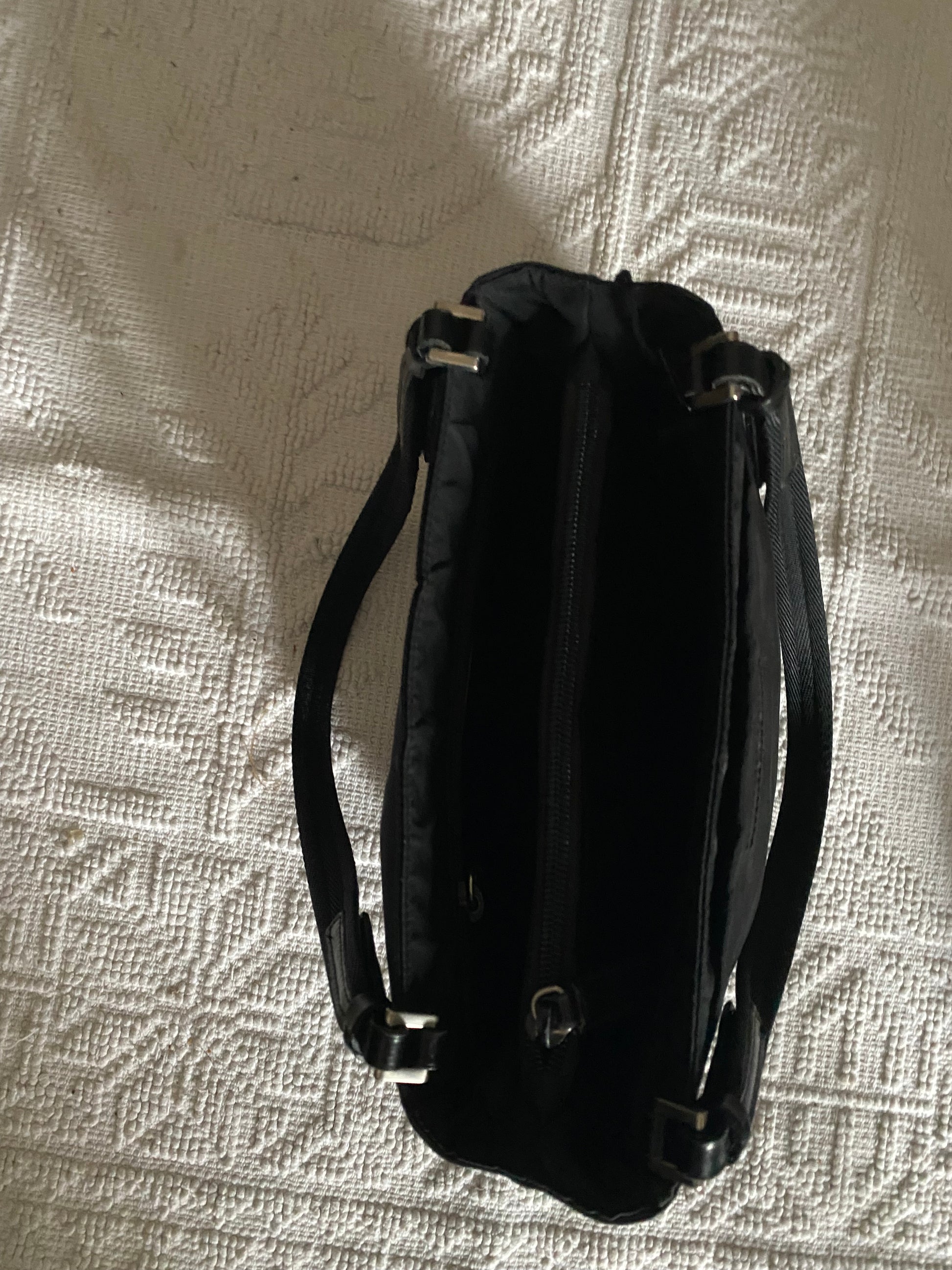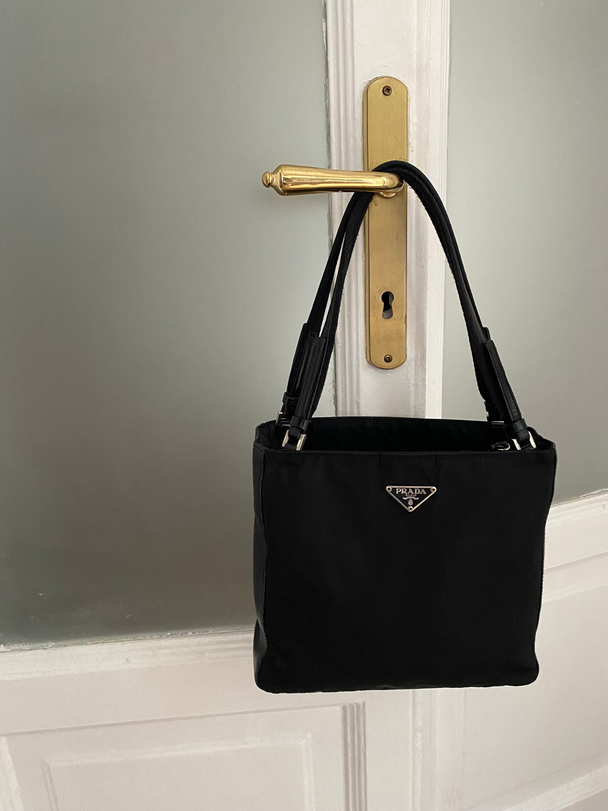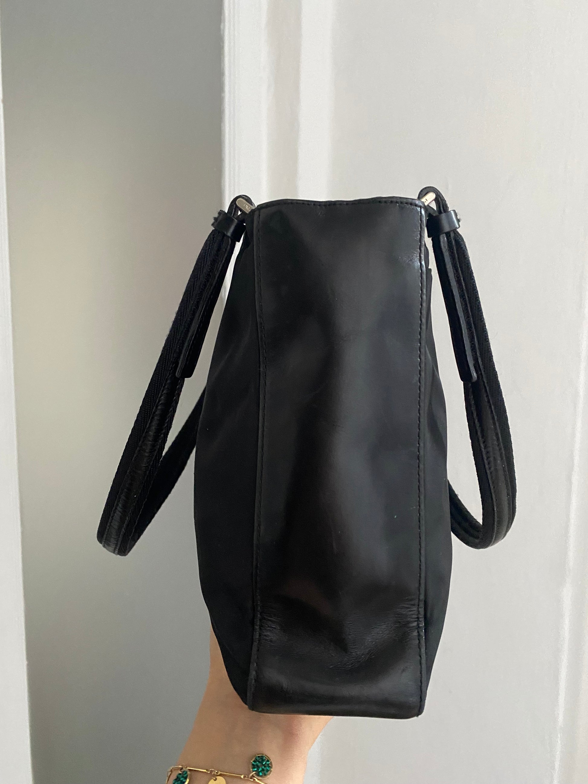 Bellissima tote di Prada in nylon e profili in pelle. Alcuni segni sulla pelle poco visibili e qualche piega laterale (foto). Buonissime condizioni generali. Tela immacolata. 3 tasche interne e una tasca esterna. Perfetta da personalizzare con charms e pendenti 😍