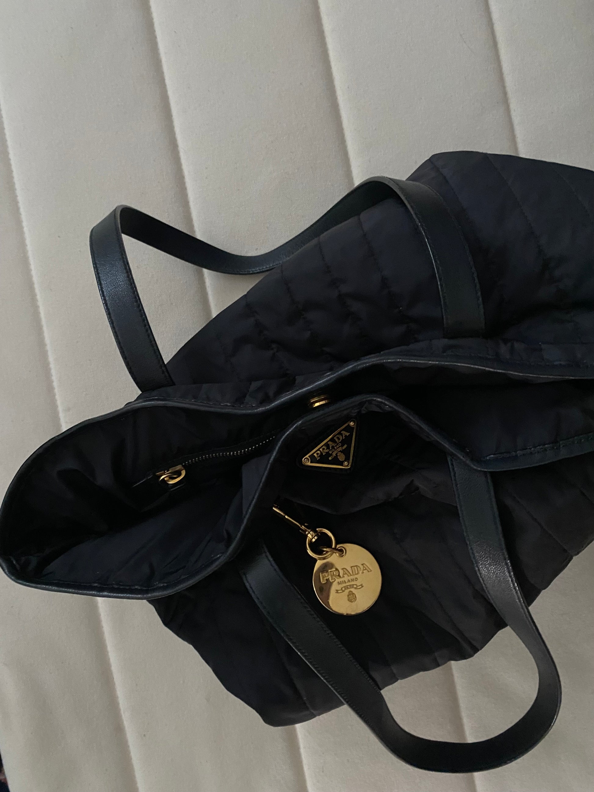 Fantastica prada tote in nylon matelassé super particolare con charm ✨ ottime condizioni. Entra anche un MacBook 13 pollici 💻 perfetta come borsa per università e lavoro.